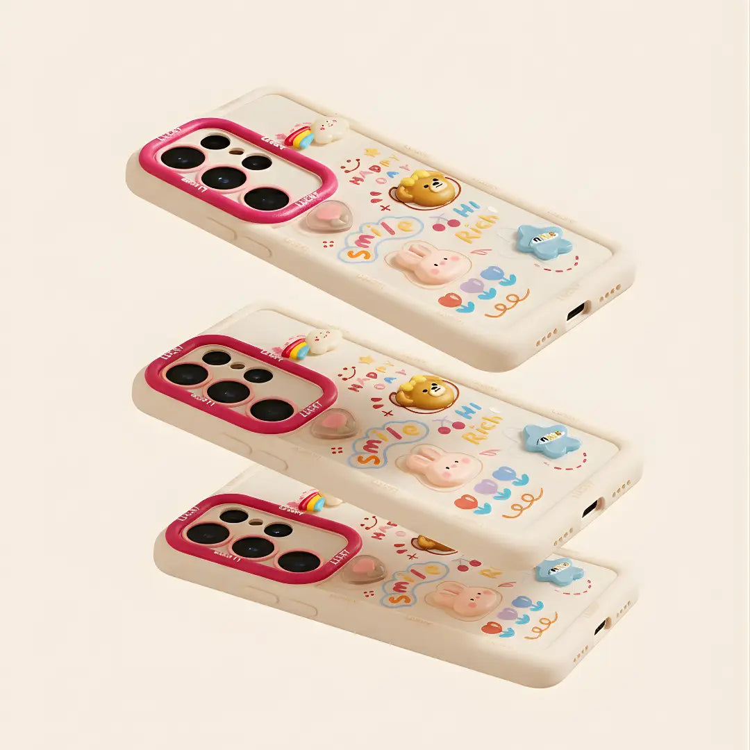 Bring a smile to your day with the Smiley Bunny & Bear Case - the perfect blend of cute, colorful, and cheerful vibes! This adorable phone case features playful 3D charms of a smiling bunny and a happy bear, surrounded by colorful doodles, hearts, and rainbows. Every detail — from the soft pastel tones to the “Smile” and “Happy Day” messages - adds a touch of positivity and fun to your phone.