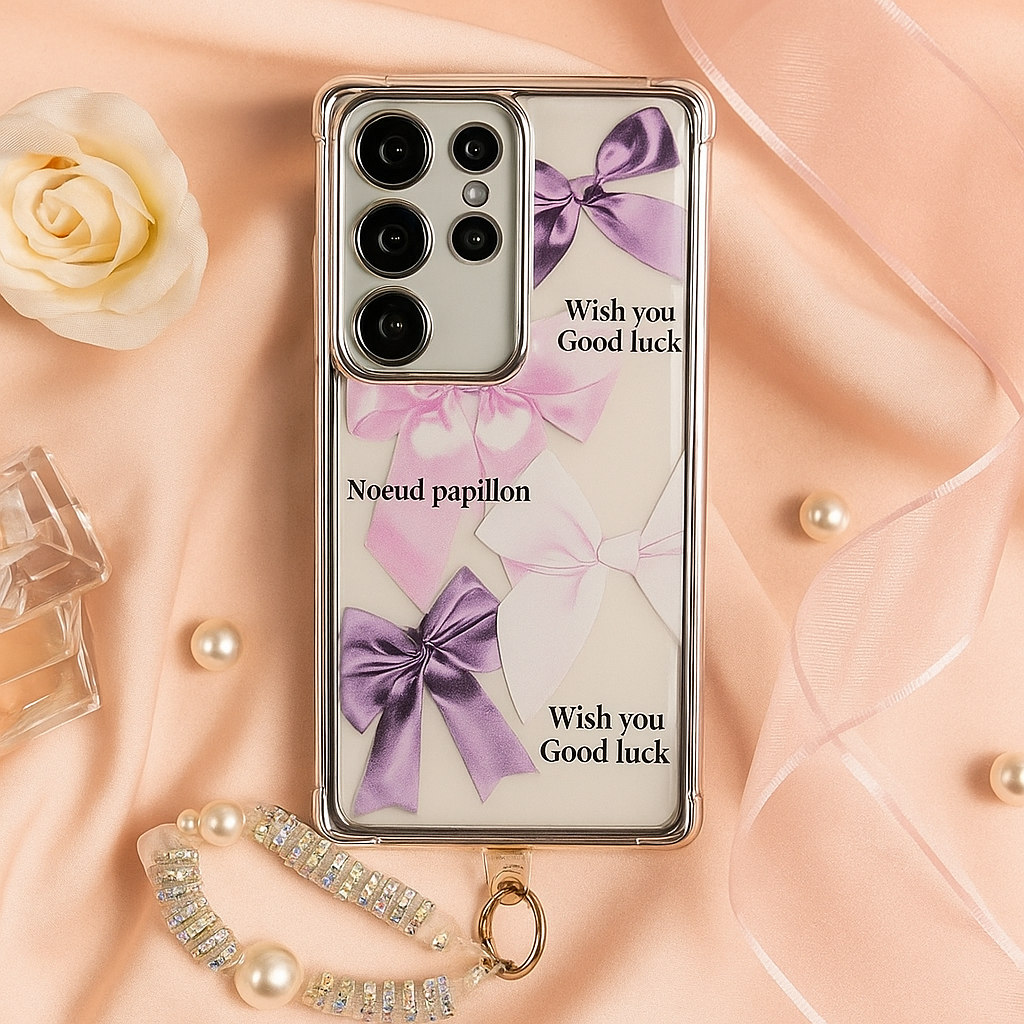 Carry positivity and elegance with Wish You Good Luck, a transparent case adorned with delicate pastel bows and uplifting words. Its playful yet graceful design makes it the perfect accessory for anyone who loves adding a touch of charm and encouragement to their everyday style. Lightweight yet protective, this case blends beauty with function effortlessly.