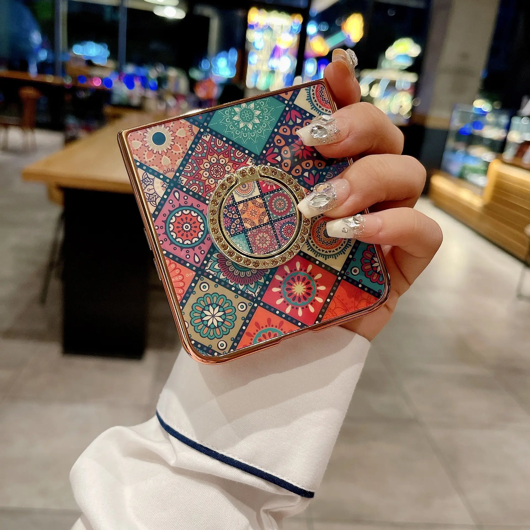 Vibrant, artistic, and beautifully functional, the Boho Mosaic Ring Holder Case is inspired by colorful tile patterns and free-spirited bohemian design. Featuring an intricate mosaic print framed with elegant metallic edges, this case turns your phone into a statement accessory.