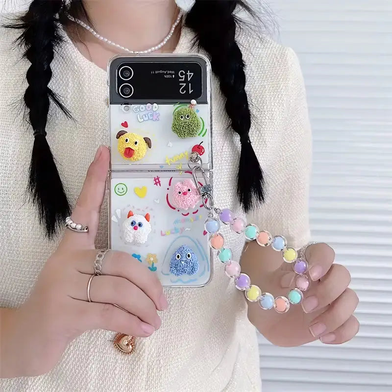 Bring joy, color, and charm to your Galaxy Z Flip with the Good Luck Puffy Friends Case! Designed with adorable 3D puffy characters, vibrant doodles, and a pastel aesthetic, this case instantly brightens your mood every time you open your phone.