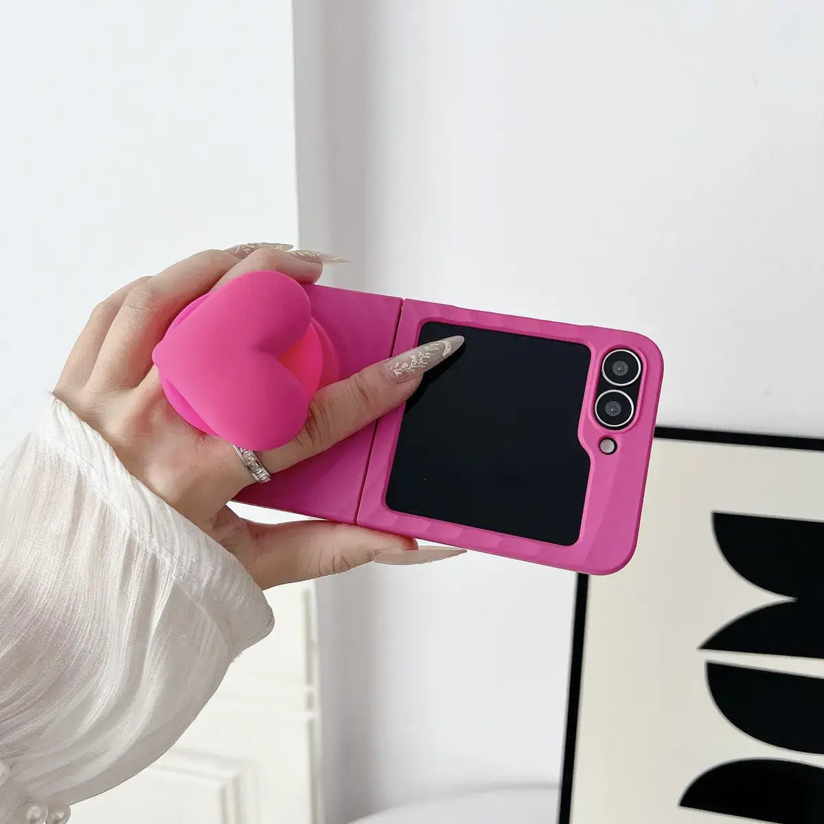 Unleash bold personality with the Pulse Burst 3D Heart Shock Case, designed for those who love statement style with protective power. This vibrant flip case combines a striking hot-pink finish with a soft, puffy 3D heart centerpiece that adds both charm and grip.