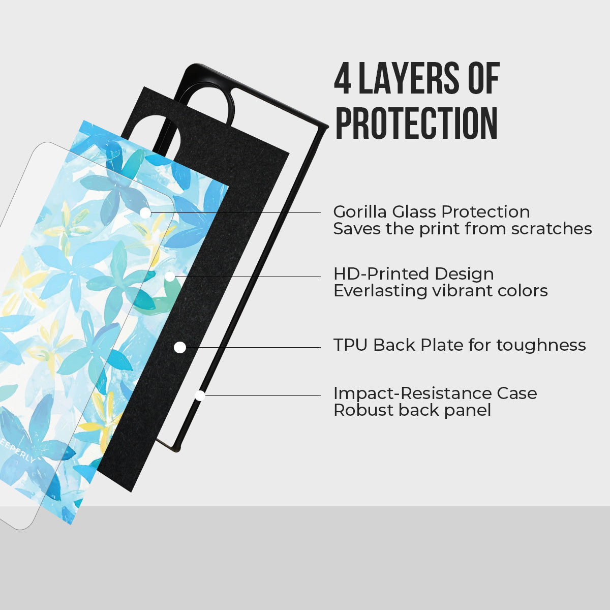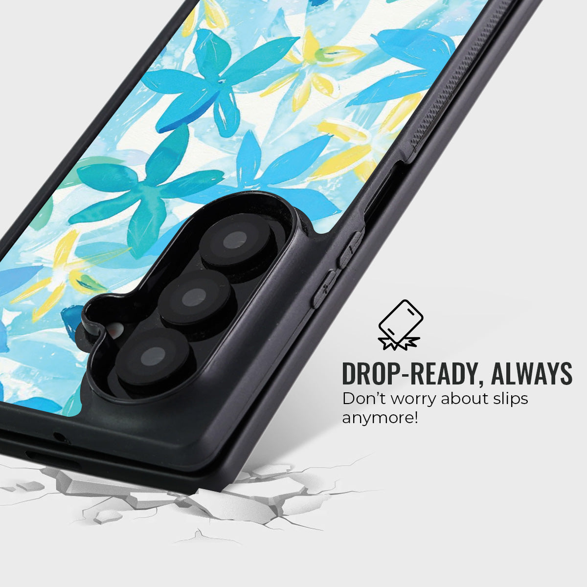 Dive into a sea of color with Azure Petals, where bold tropical florals meet cool ocean hues. This case features an artistic blend of vivid blues, teals, and soft yellows, layered in a dreamy watercolor style that evokes the essence of a breezy island escape.