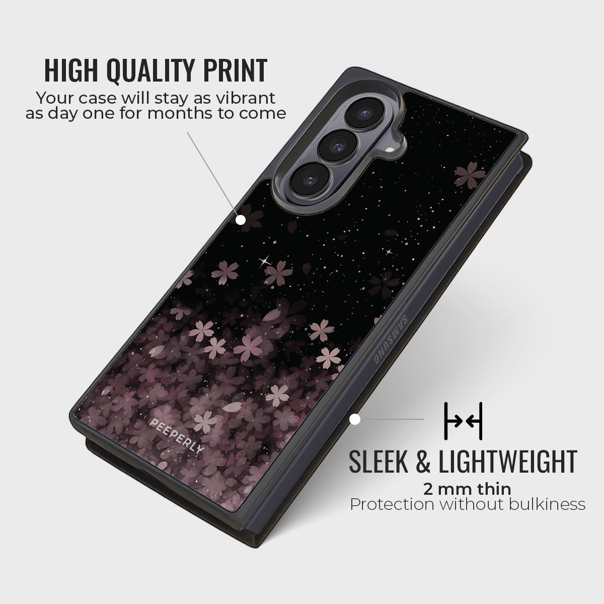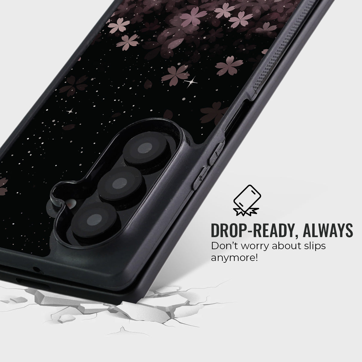 Wrap your phone in the serene beauty of a starlit evening with Dreamy Nightfall. This enchanting case features a graceful cascade of soft plum and mauve flowers gently fading into a deep night sky, sprinkled with twinkling stars.