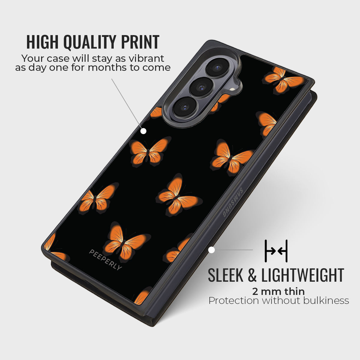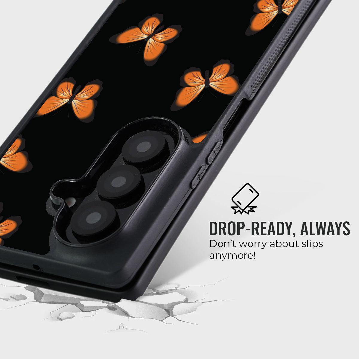 Where darkness meets grace, Ebonflight Elegance captures the quiet beauty of fluttering butterflies against a deep black backdrop. The vibrant orange wings pop with striking contrast, giving your phone a bold yet sophisticated aesthetic.