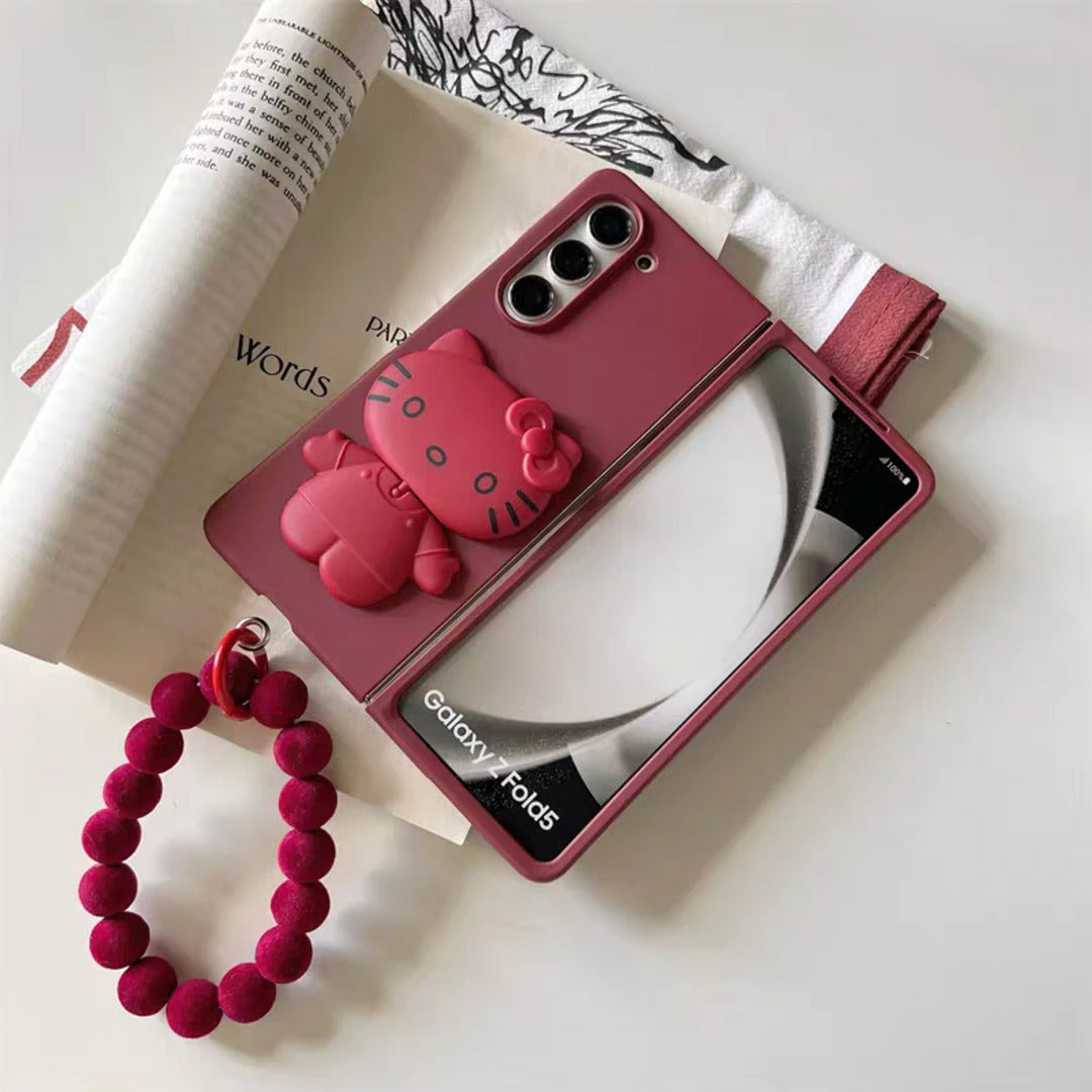 Add a dose of playful charm to your Galaxy Z Fold with Kitty Fold, the ultimate blend of adorable style and smart functionality. Designed in a rich berry pink hue, this case features a 3D kitty character grip that’s both cute and convenient, making your phone easier to hold and flaunt.
