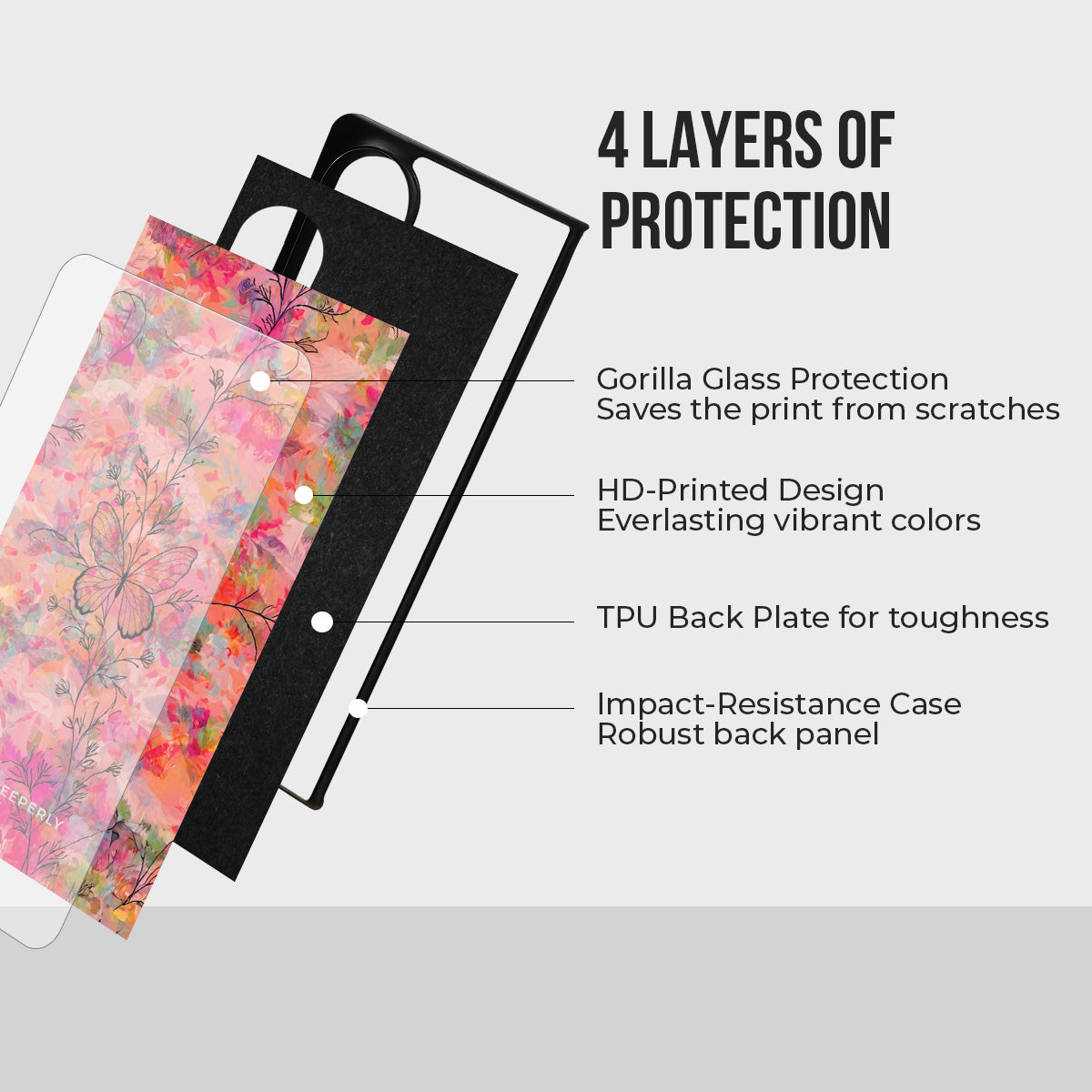 Radiant Soar captures the beauty of transformation with its delicate butterfly design set against a vivid, artistic backdrop. The blend of striking colors and graceful details creates a case that feels lively, inspiring, and full of uplifting energy.