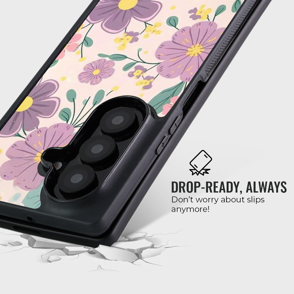 Delicate, playful, and full of charm—Spring Whimsy captures the lighthearted joy of a blooming spring day. With soft lilac and yellow flowers dancing across a blush background, this case adds a fresh pop of pastel to your everyday style.