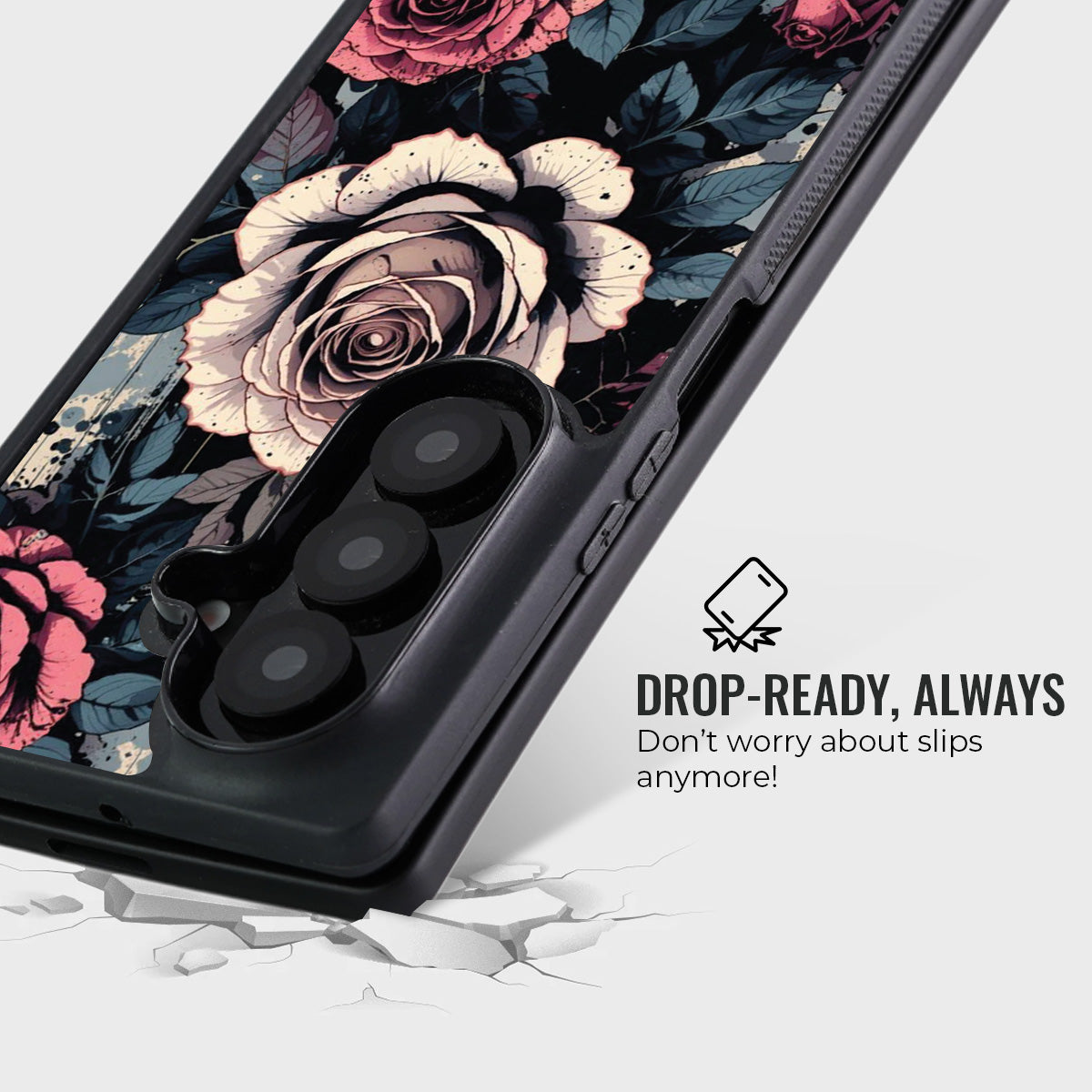 Whispering Roses wraps your phone in a timeless, romantic charm. Layers of delicately illustrated blooms flow across a deep backdrop, evoking a sense of mystery and elegance. Perfect for those who adore vintage florals with a modern edge.