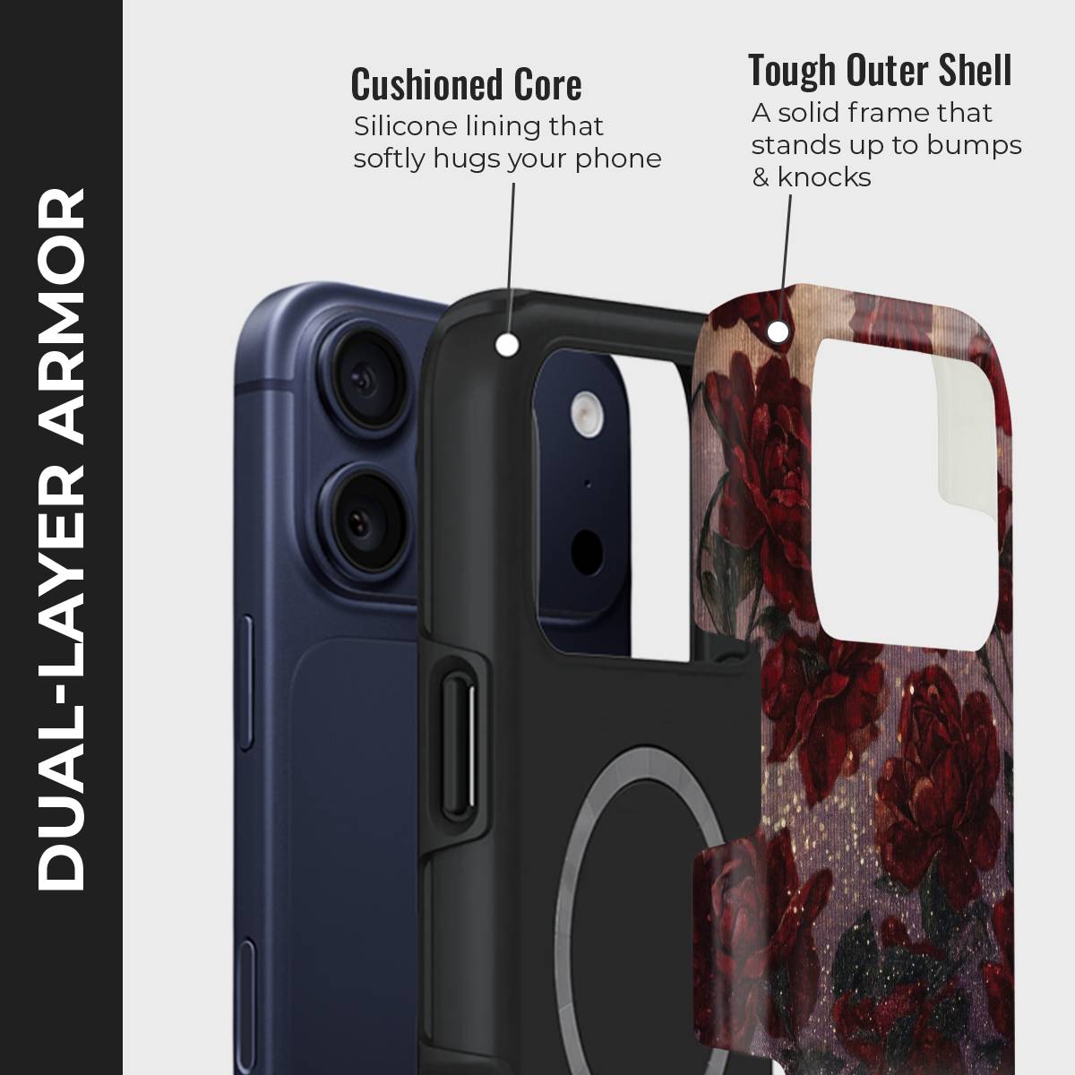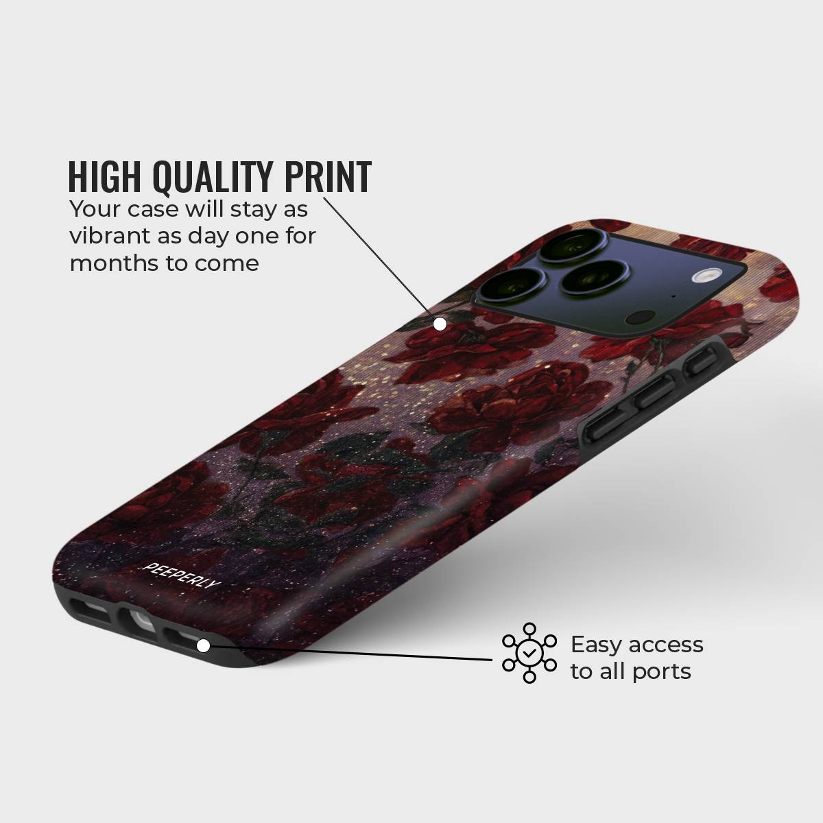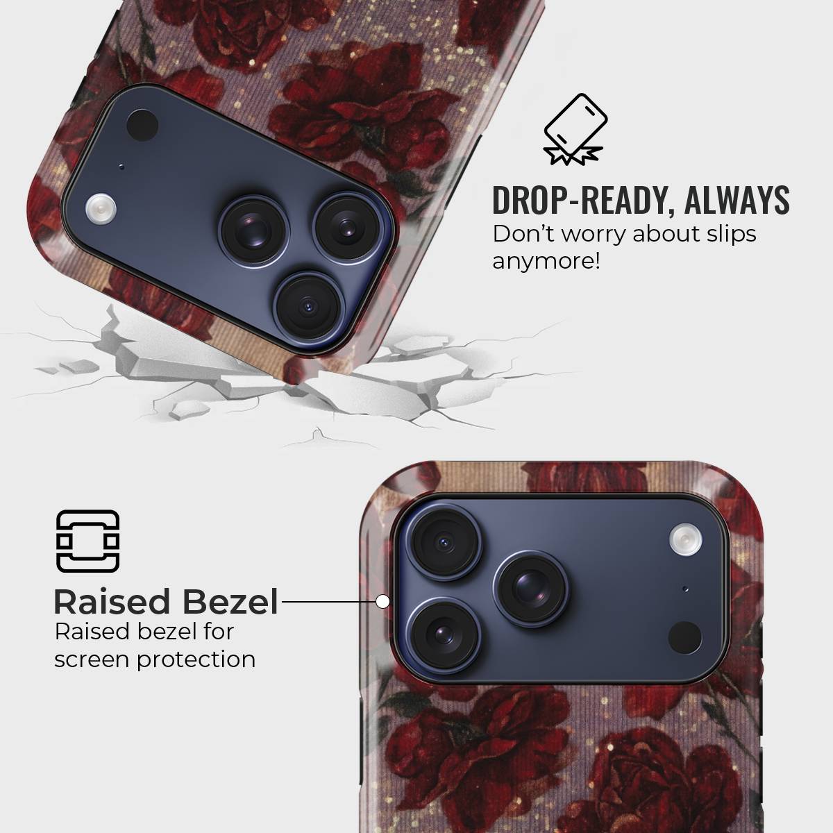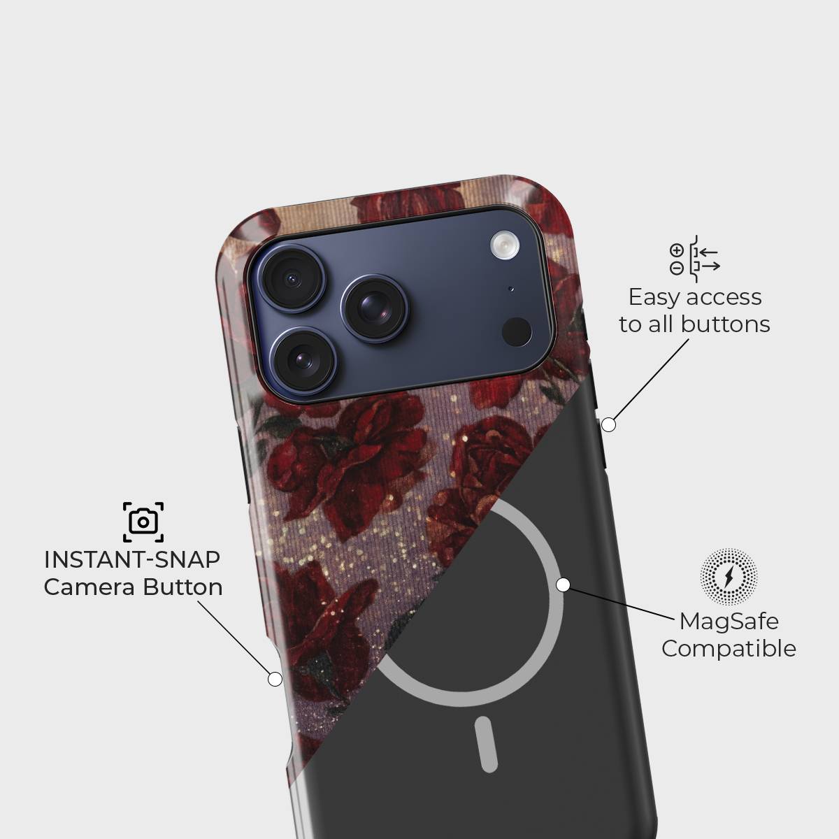 Gilded Roses wraps your phone in timeless elegance with deep floral blooms kissed by golden accents. This enchanting design blends romance and luxury, making your device a statement piece that shines with sophistication.