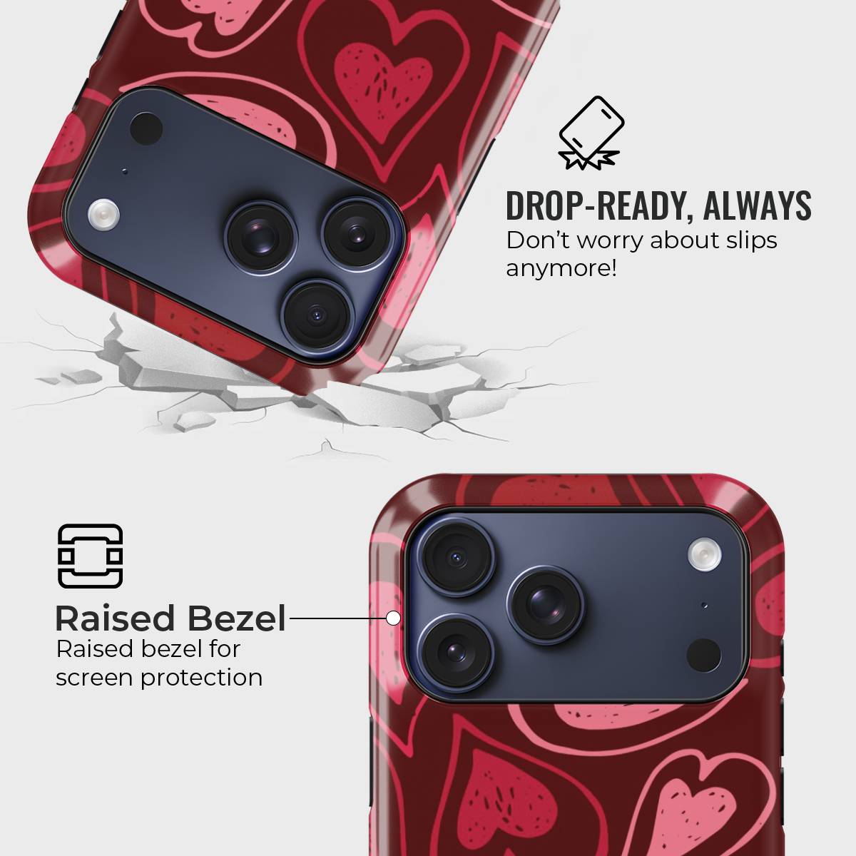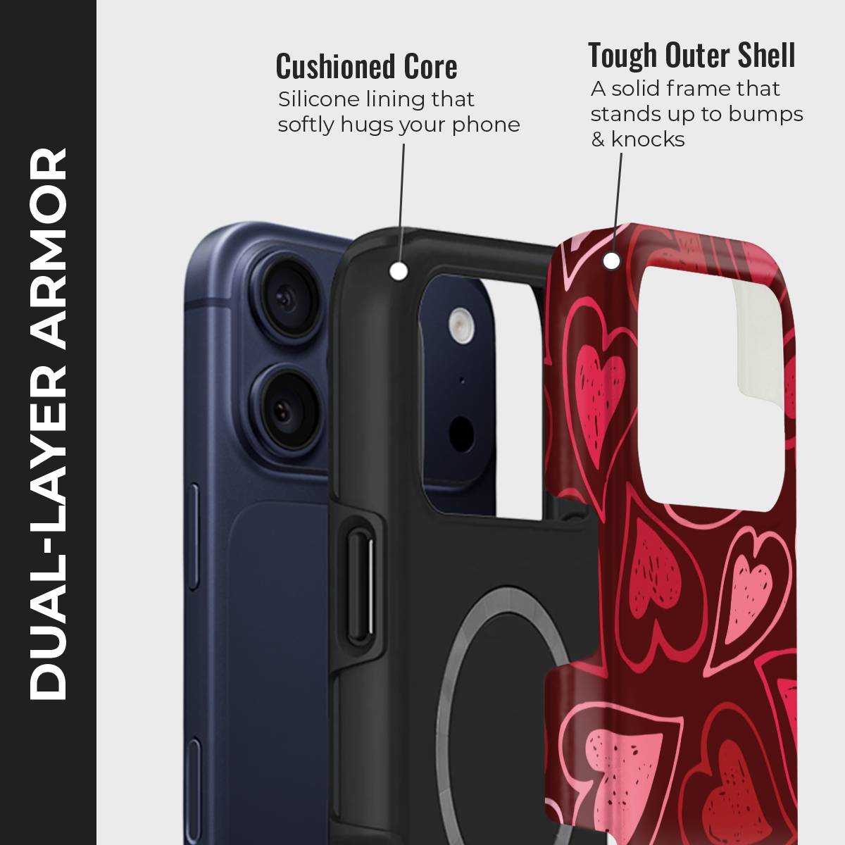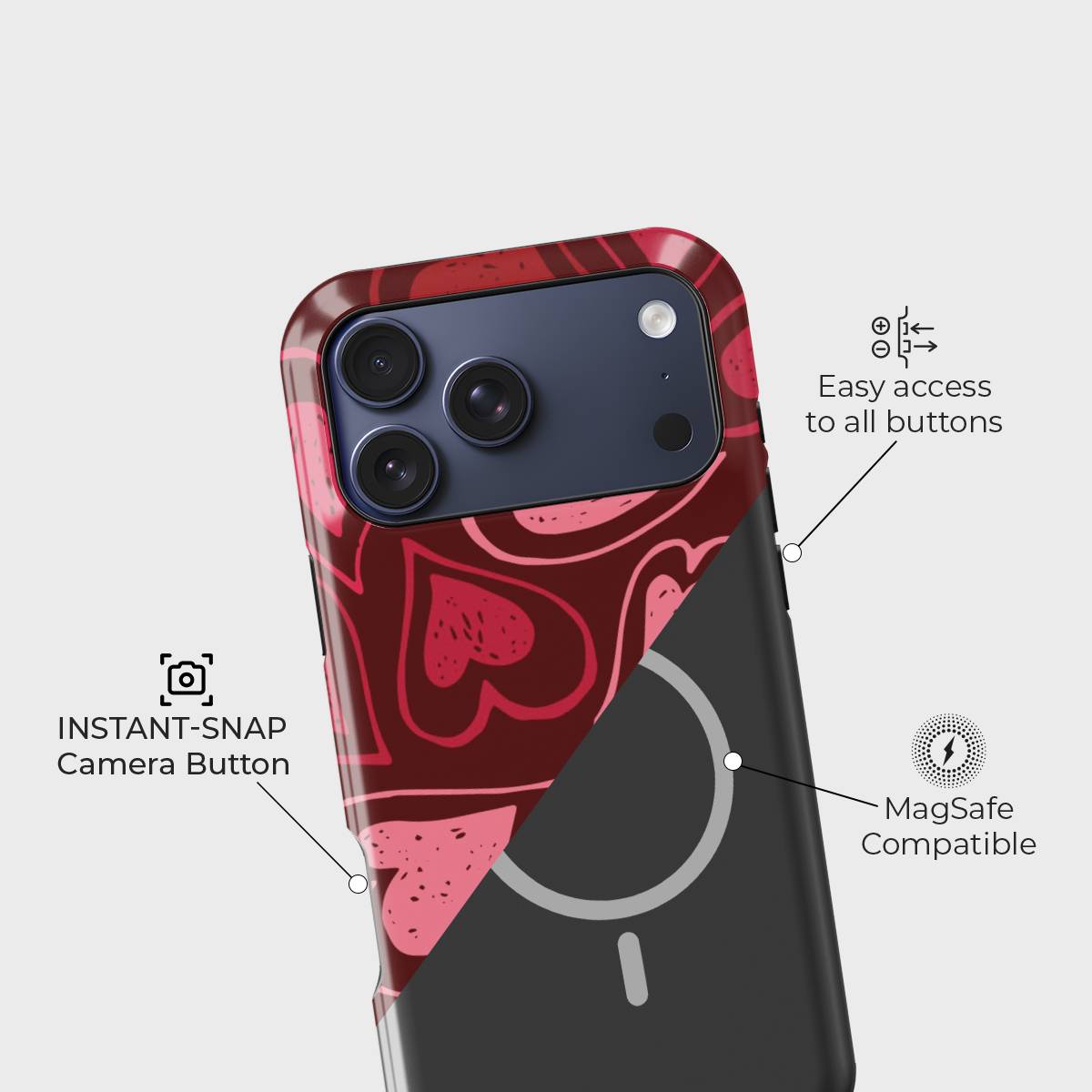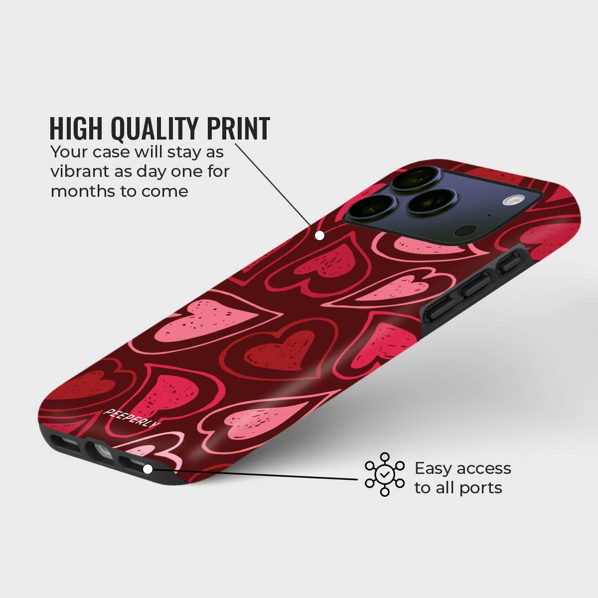 Blissful Hearts is a phone case made to spread warmth and happiness through its lively heart-filled design. Each detail brings a cheerful and playful vibe, making it the perfect match for those who love expressing positivity and charm in their everyday style.