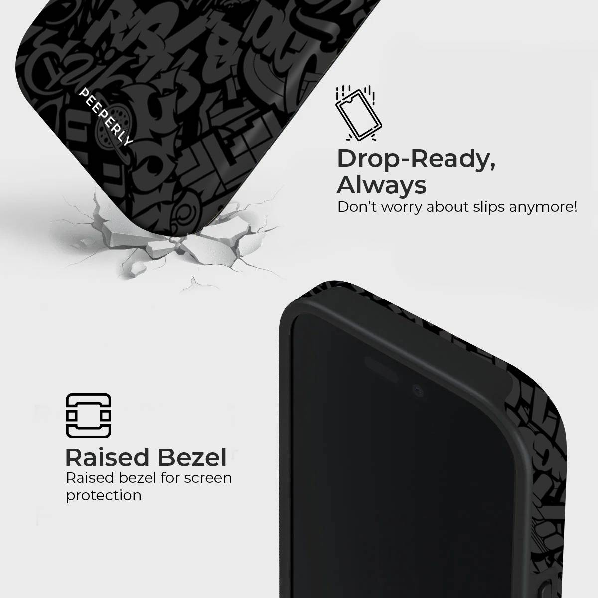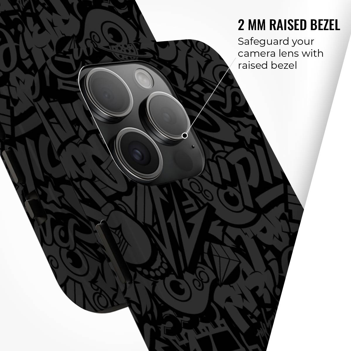 Turn up the volume on your style with the Blackout Hype phone case. Drenched in a sleek black-on-black graffiti pattern, this case captures the raw energy of the streets with a bold, underground edge.