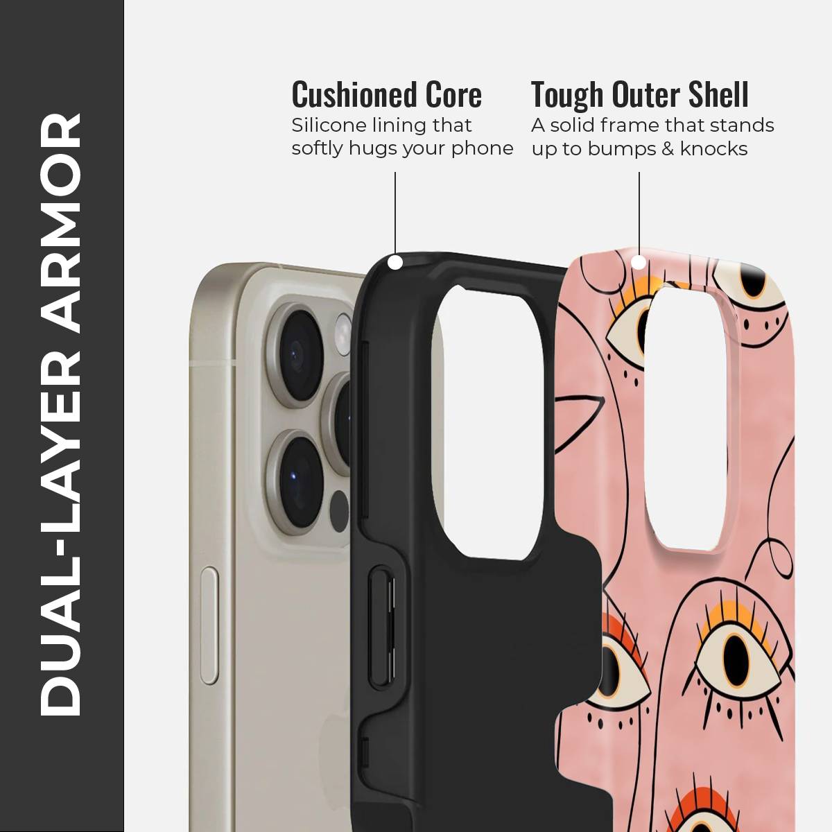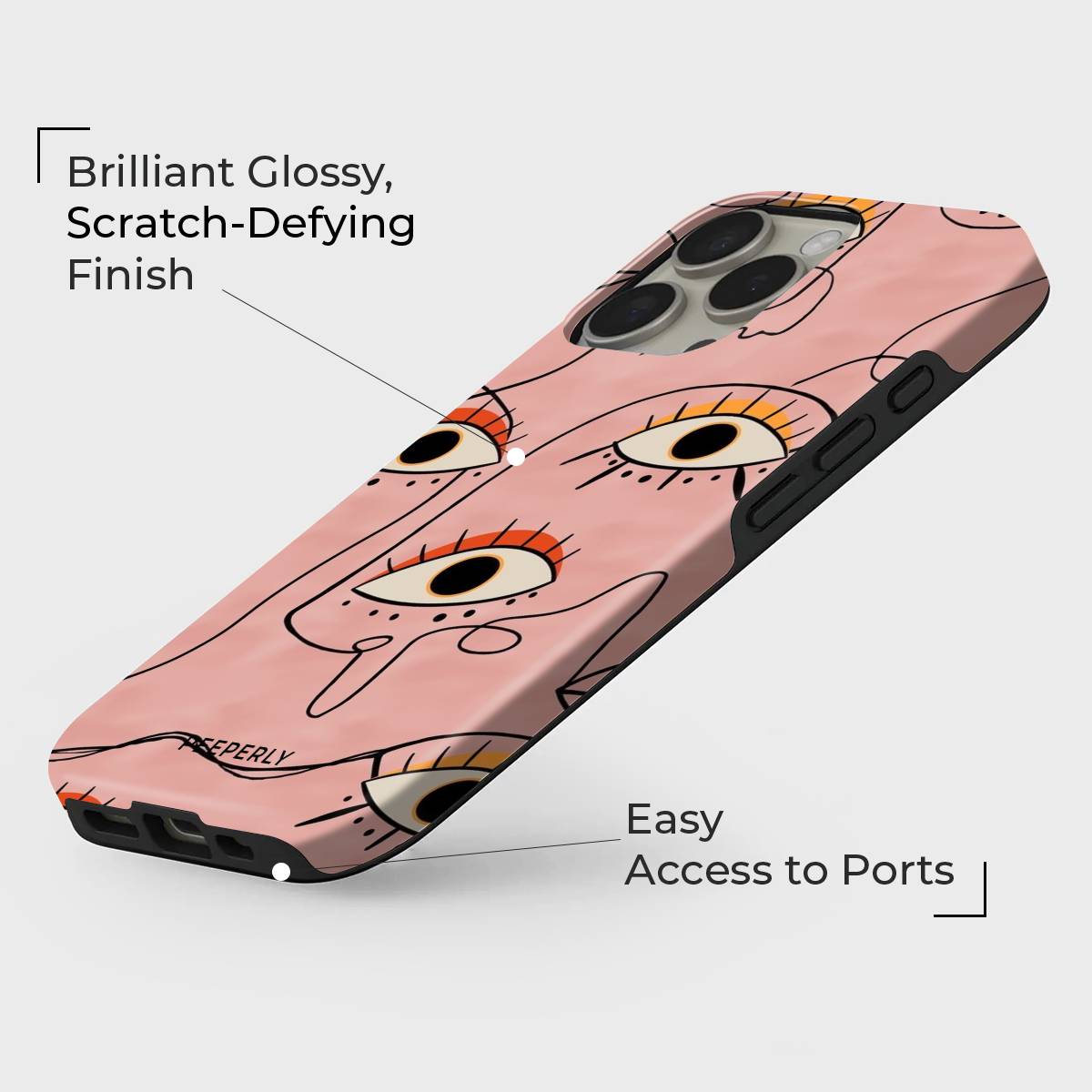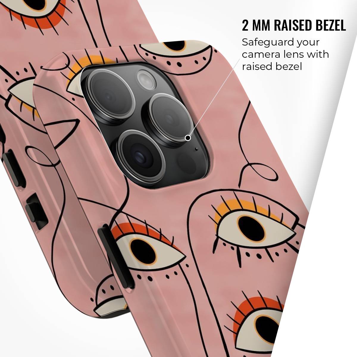 Bold, playful, and unapologetically artistic — Line & Lash is where abstract minimalism meets expressive design. This phone case features continuous line art faces and striking eyes with vivid lashes, all set against a soft blush backdrop.