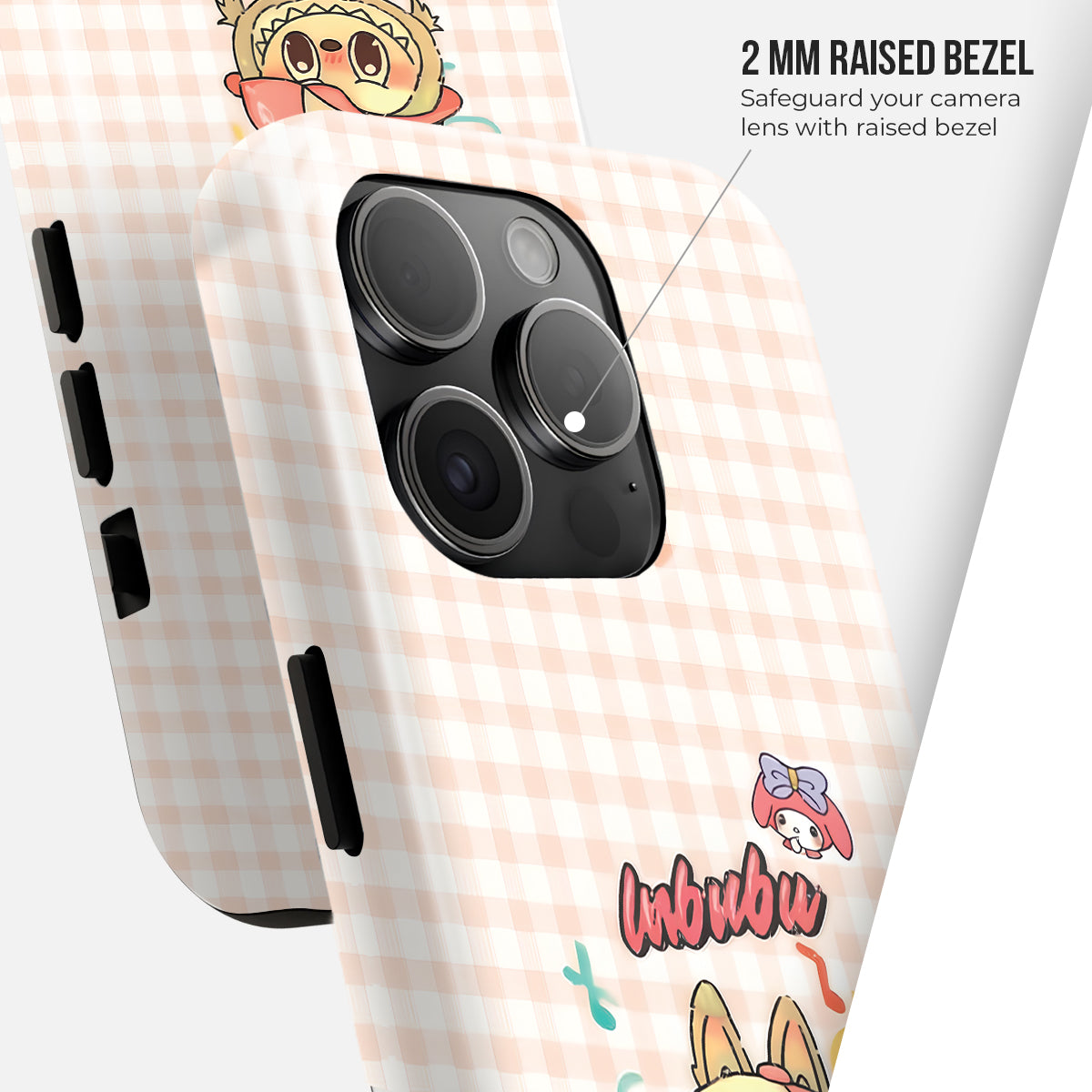 Get into full Bubu Mode with this ultra-adorable phone case featuring your favorite snack-loving, hoodie-wearing character — Bubu! Set against a soft pastel gingham background, this design brings together Japanese streetwear vibes, candy-colored fun, and a whole lot of personality. From bubble letters to lollipops and mini plushies, it’s a whole aesthetic packed into one case.