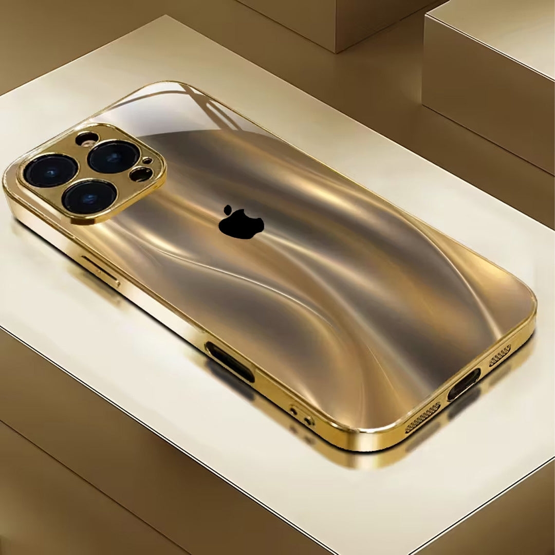 Where elegance meets motion — the Gilded Motion Case is a statement of pure sophistication. Designed with a fluid gold wave pattern that catches the light beautifully, this case radiates warmth, luxury, and confidence. The sleek reflective finish creates a sense of movement and depth, turning your phone into a piece of modern art.