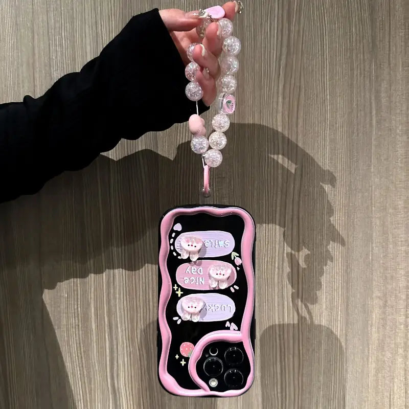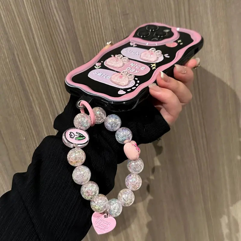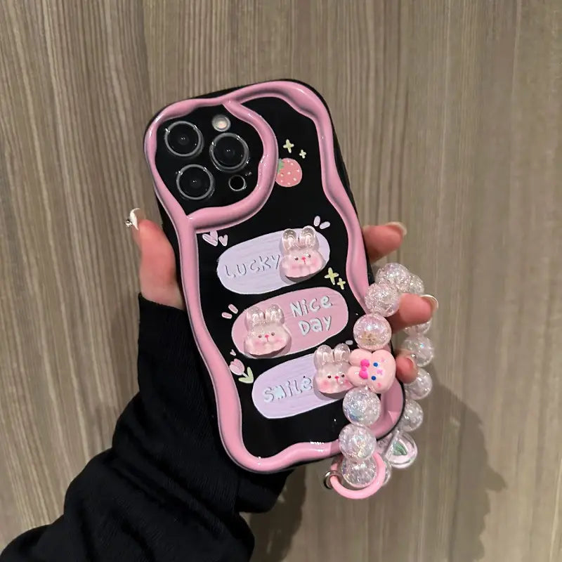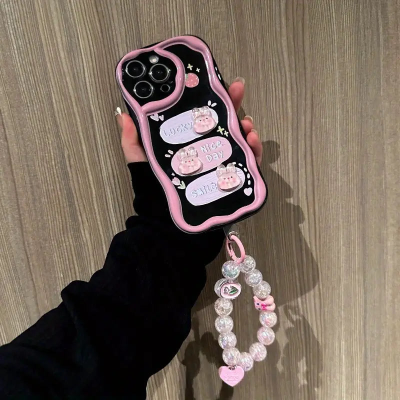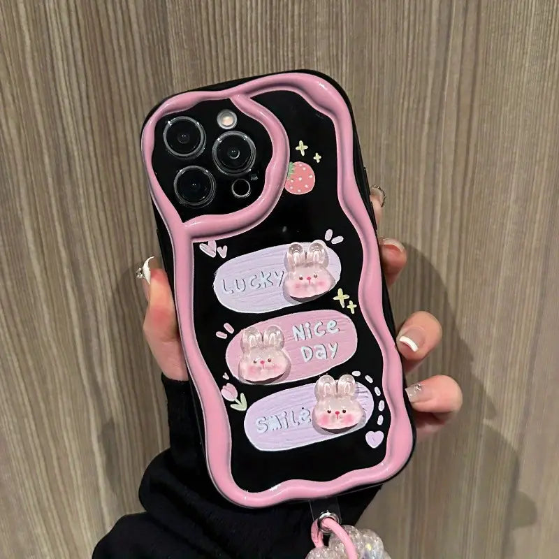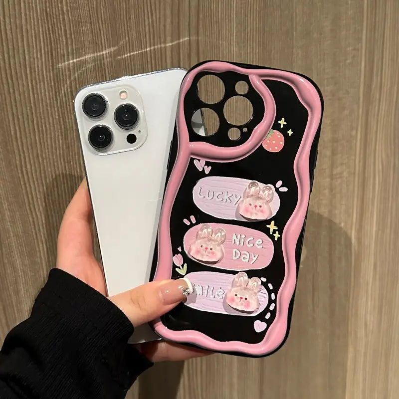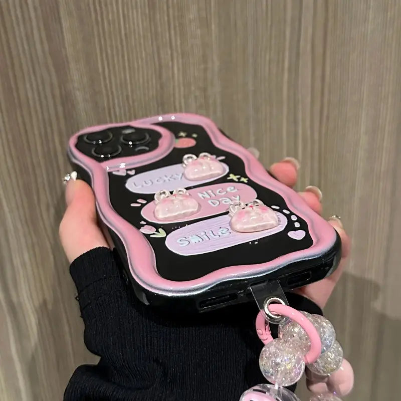 Brighten your day every time you pick up your phone with the Sweet Smile Case. Adorned with playful bunny motifs and cheerful words like Lucky, Nice Day, and Smile, this case is all about spreading positivity. Its stylish black-and-pink design blends cuteness with everyday protection, making it perfect for anyone who loves a touch of kawaii charm while keeping their phone safe.