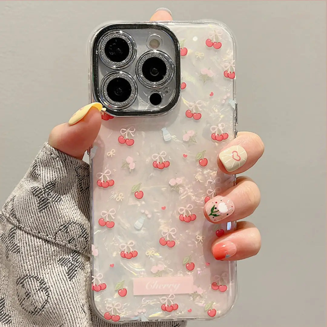 Turn up the charm with the Berrycrush Phone Case, a delightful blend of juicy cherry motifs and dreamy crushed pearl texture. This case doesn’t just protect it steals the spotlight. Its translucent base layered with soft iridescent sparkles gives your phone a unique, sugar-sweet aesthetic that feels both playful and luxe.