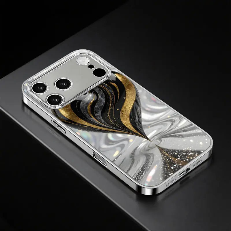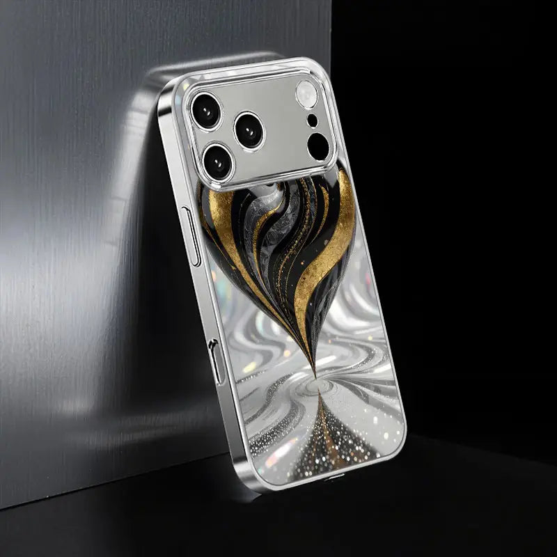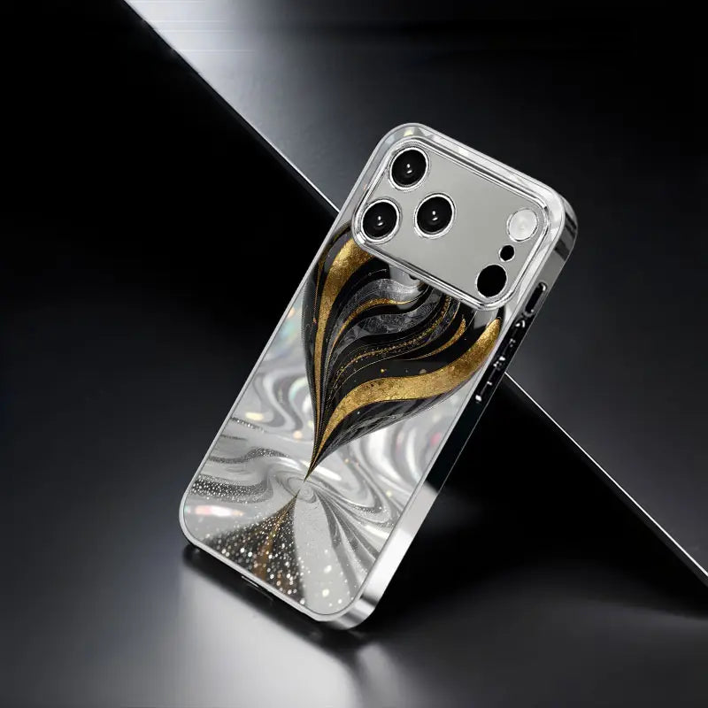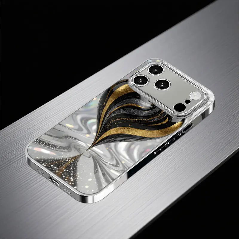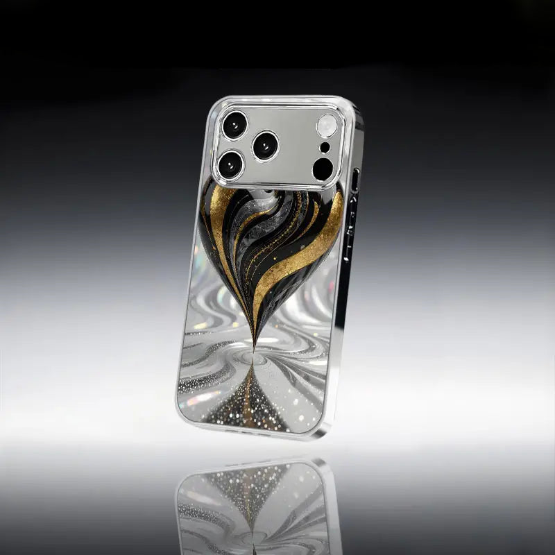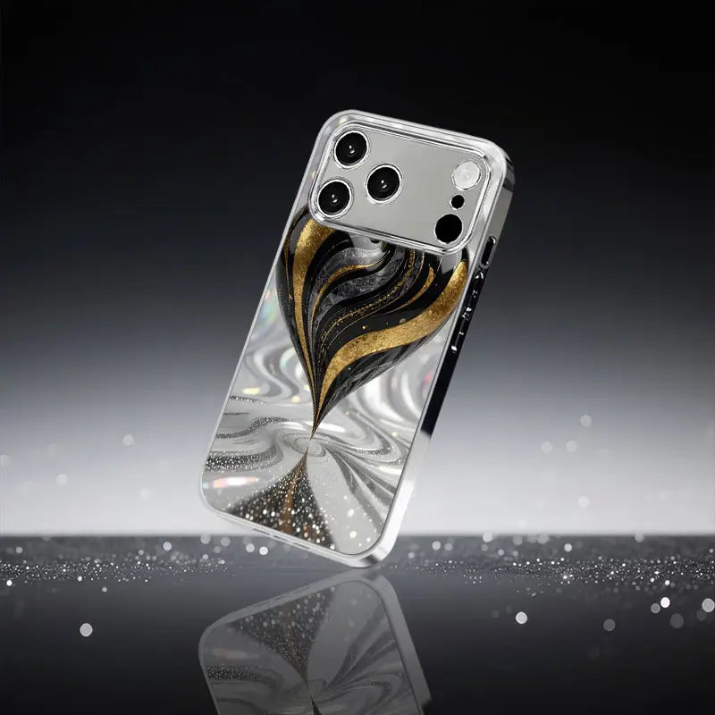 Unveil sophistication with the Gilded Spiral Case — a masterpiece of art and protection. Designed with a mesmerizing swirl of black, silver, and gold, this case captures the essence of motion and luxury.