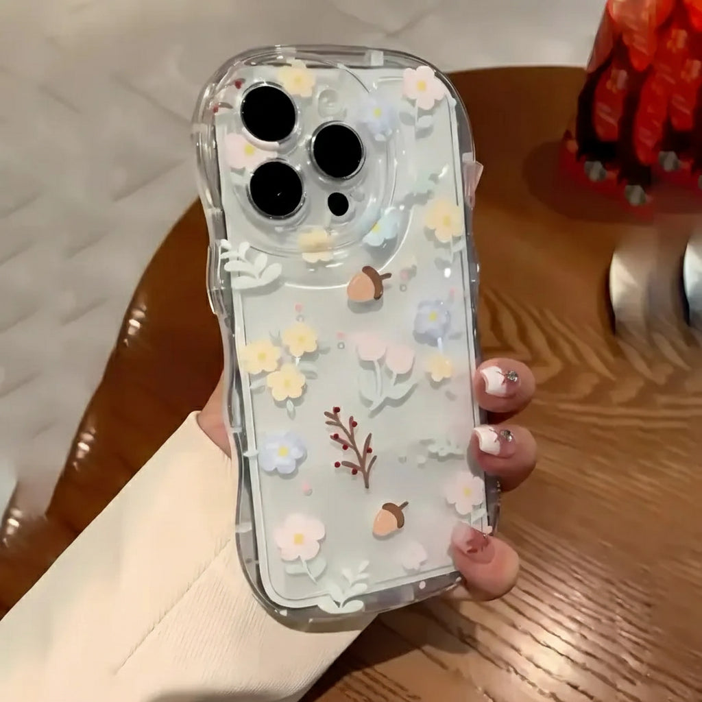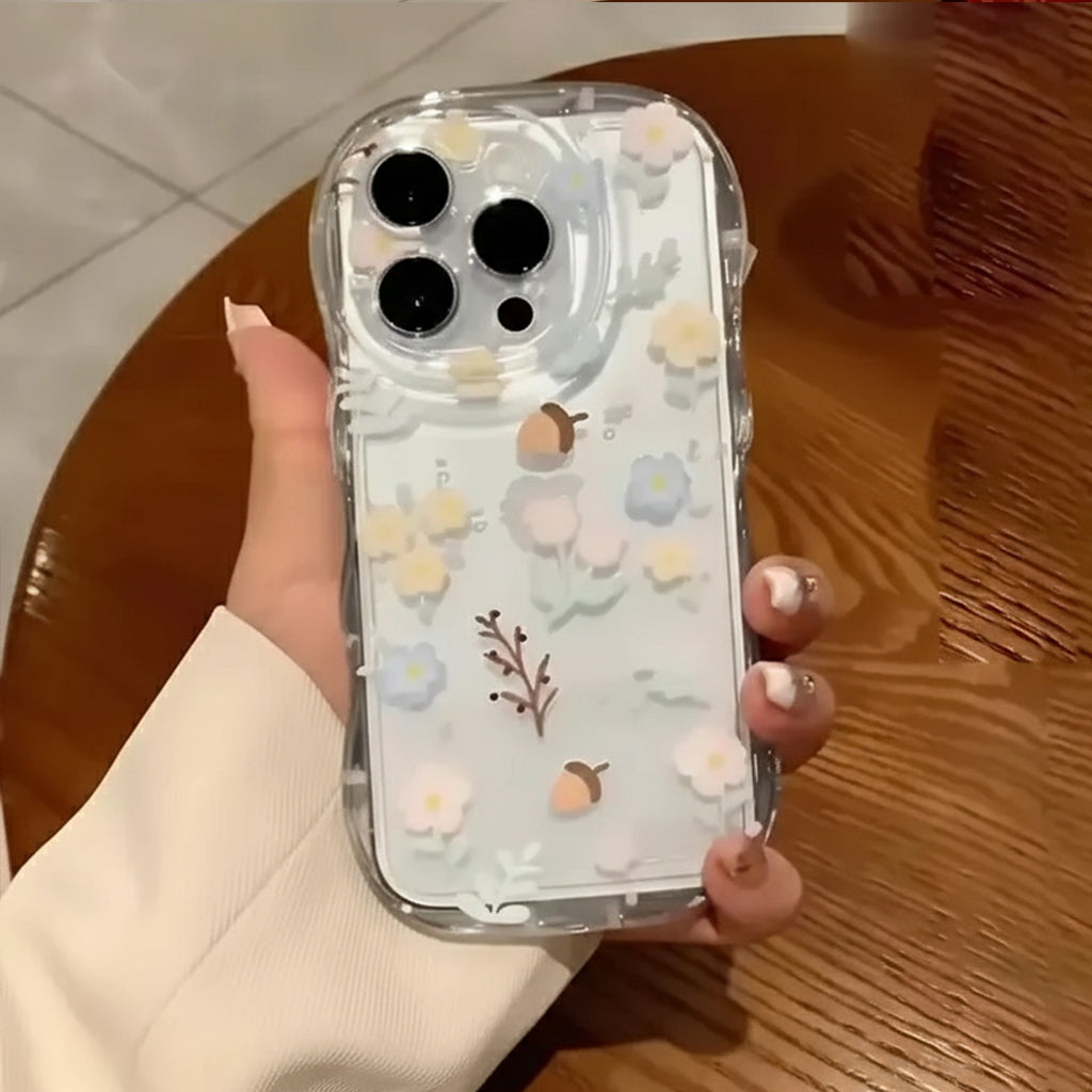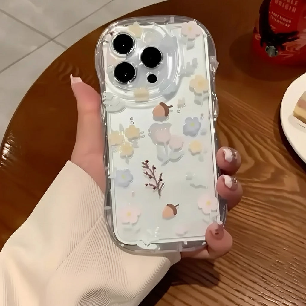 Step into a whimsical world with Tiny Treasures, a phone case that captures the charm of nature in every detail. Delicate pastel flowers, soft acorns, and leafy accents come together on a clear background, giving your phone a light and airy aesthetic.