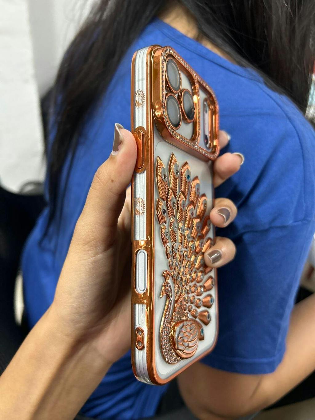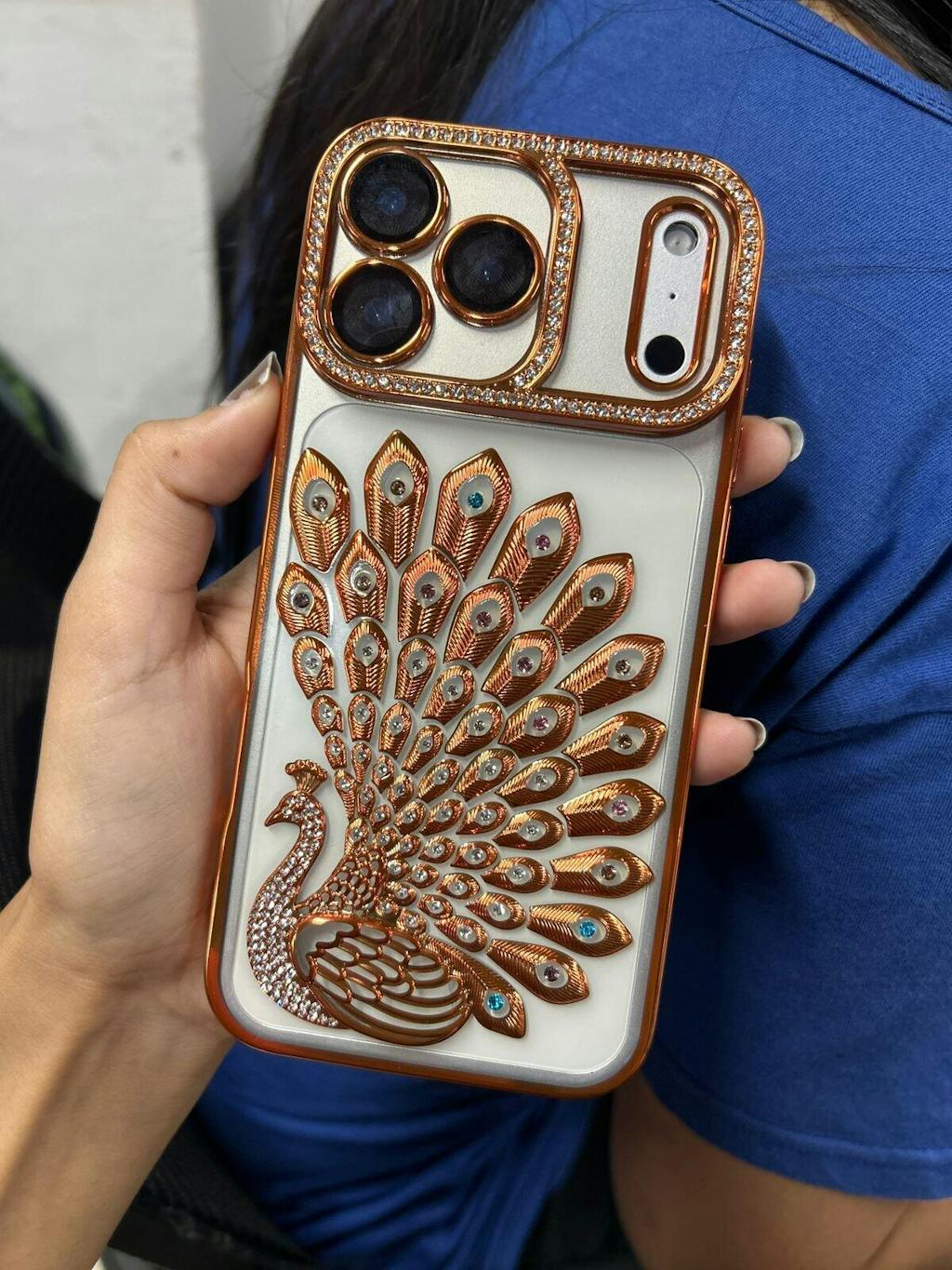 Unleash bold elegance with the Peacock Radiance Bling Case, a dazzling fusion of luxury and artistic craftsmanship. Designed with a stunning metallic peacock motif, this case showcases an intricate arrangement of feathers adorned with shimmering rhinestones that sparkle beautifully from every angle.