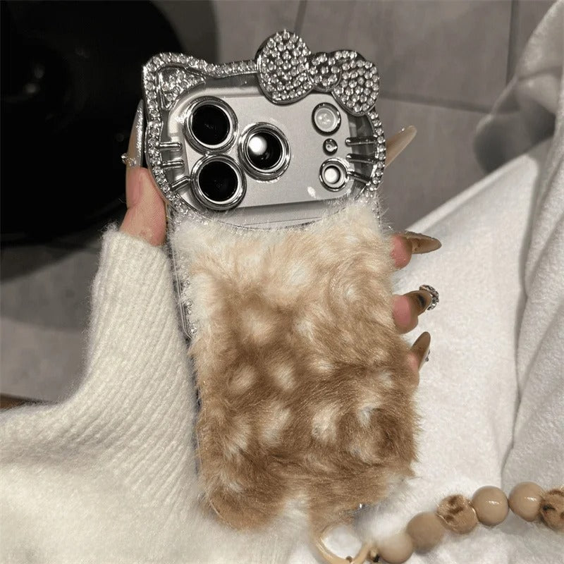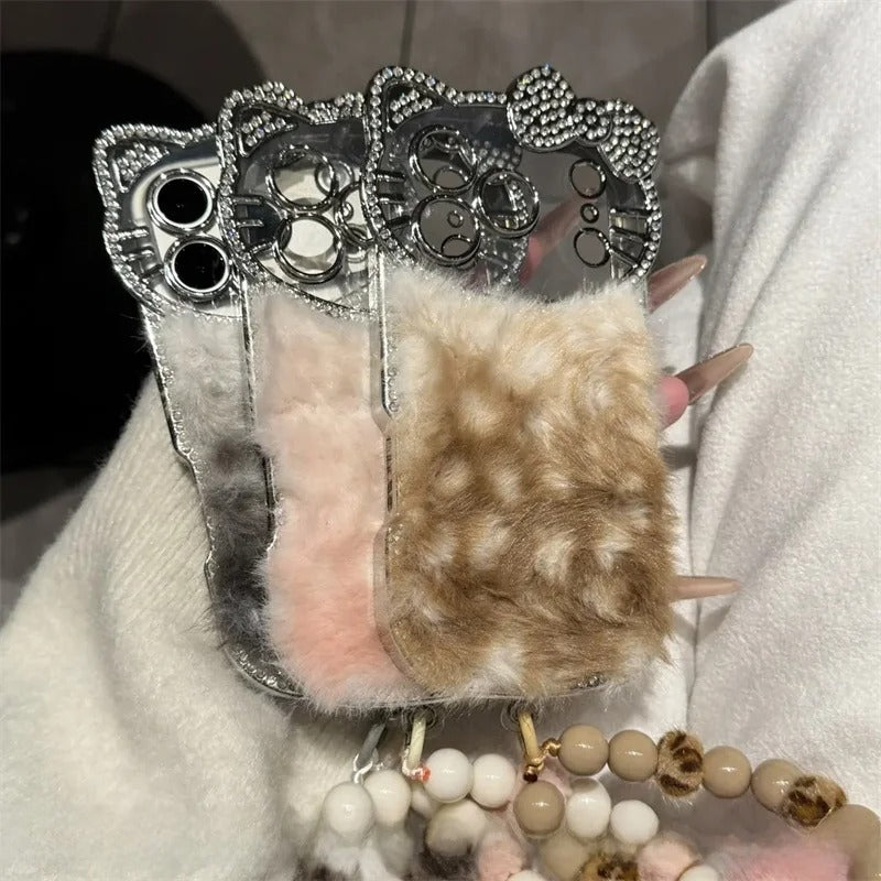 Indulge in pure glam with the Couture Kitty Fur Edition Case—a statement accessory designed for those who love luxury with a playful edge. Featuring a crystal-studded kitty frame, ultra-soft faux fur back, and an elegant beaded pom-pom charm, this case blends cozy texture with high-fashion sparkle.