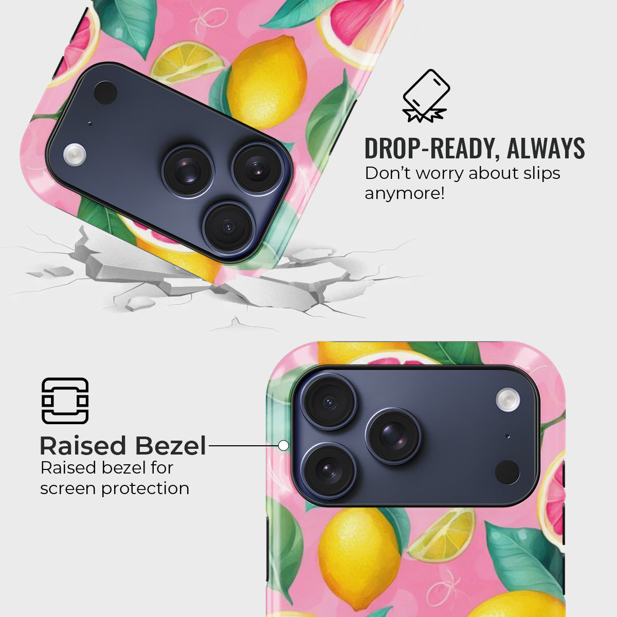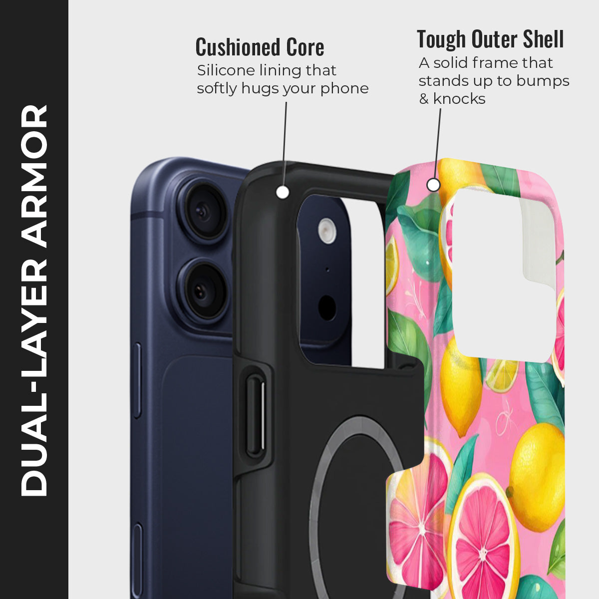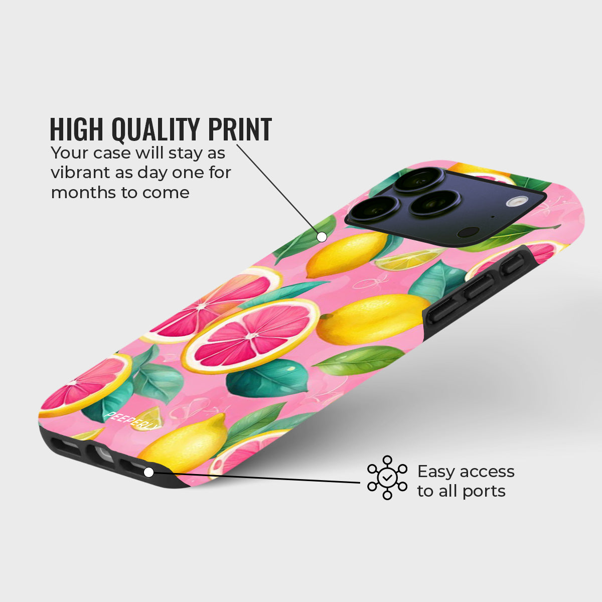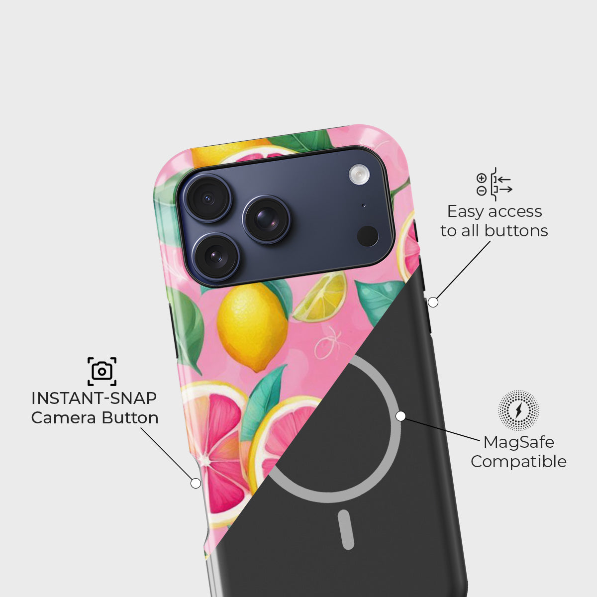 Bring a burst of sunshine to your everyday with the Tropical Twist Case. Featuring a lively mix of zesty lemons, vibrant grapefruits, and lush green leaves against a playful pink backdrop, this case captures the essence of tropical fun. Its refreshing design adds a splash of color and personality to your phone while keeping it stylish and unique.