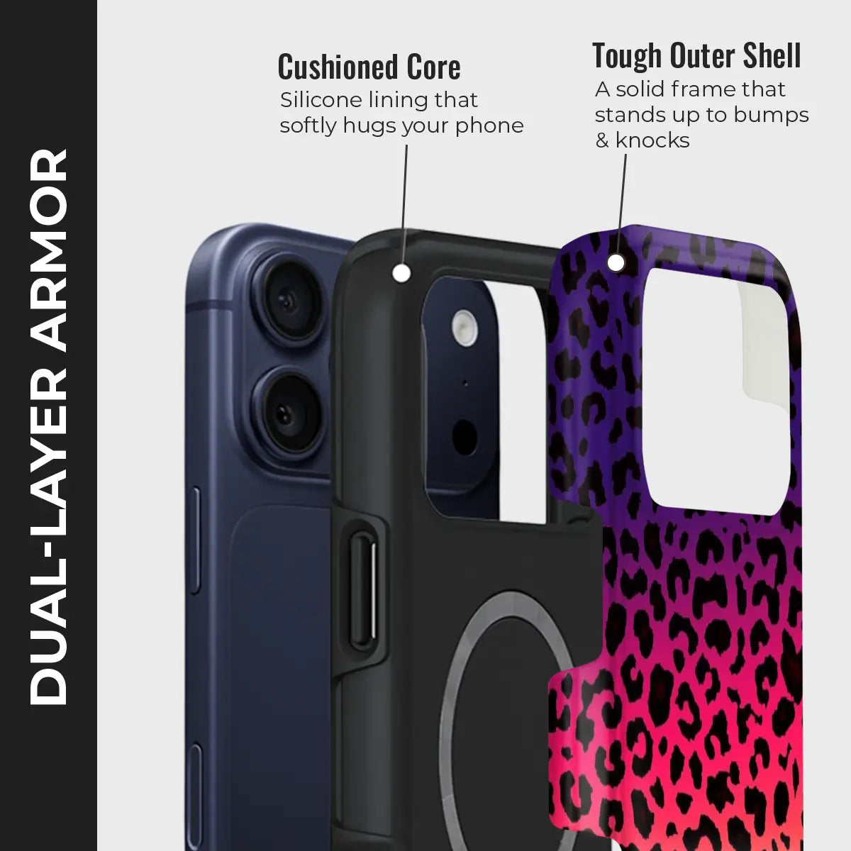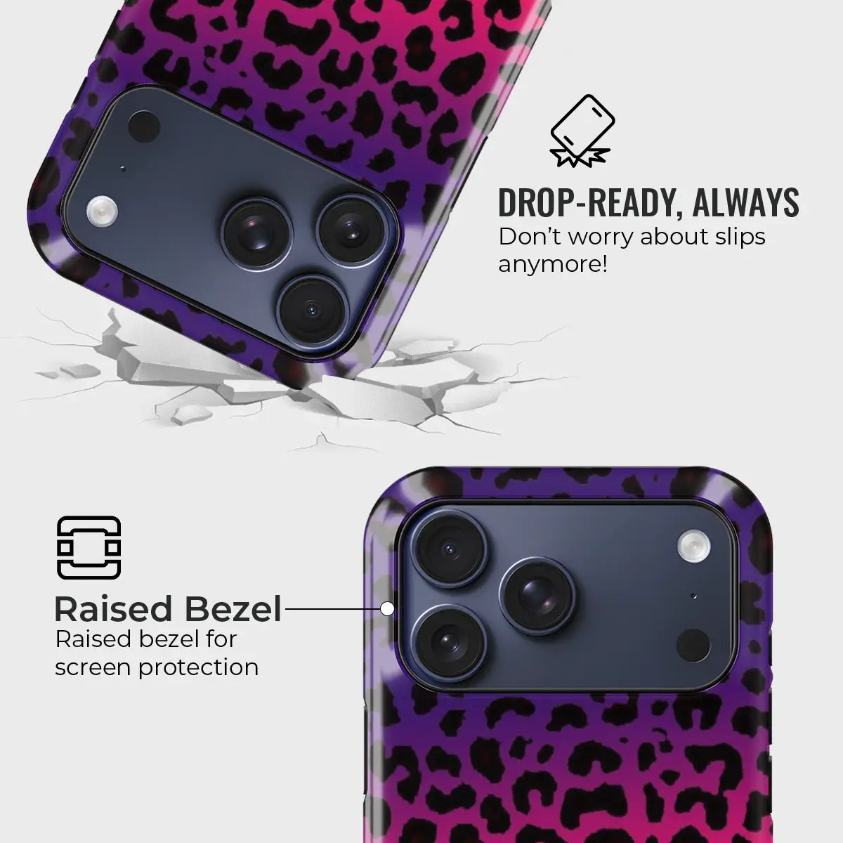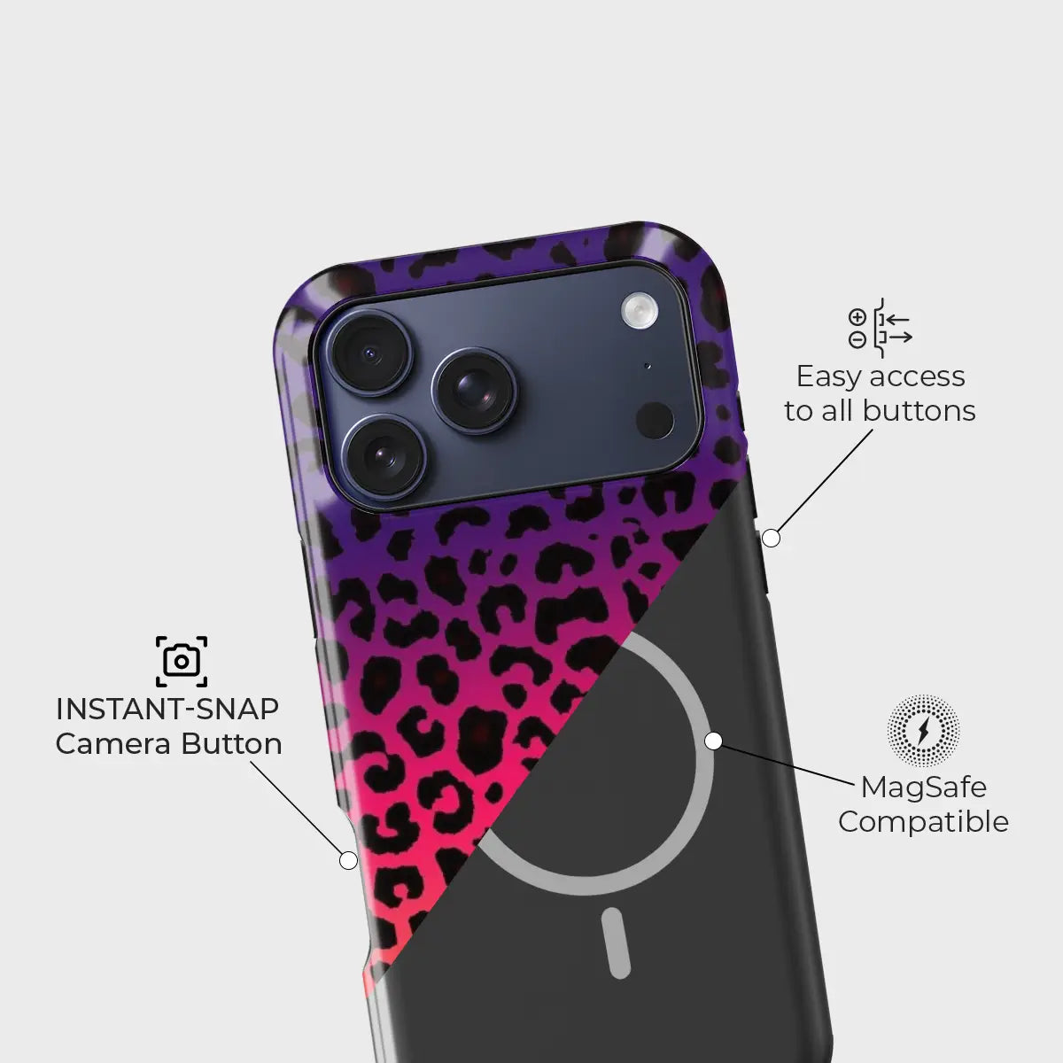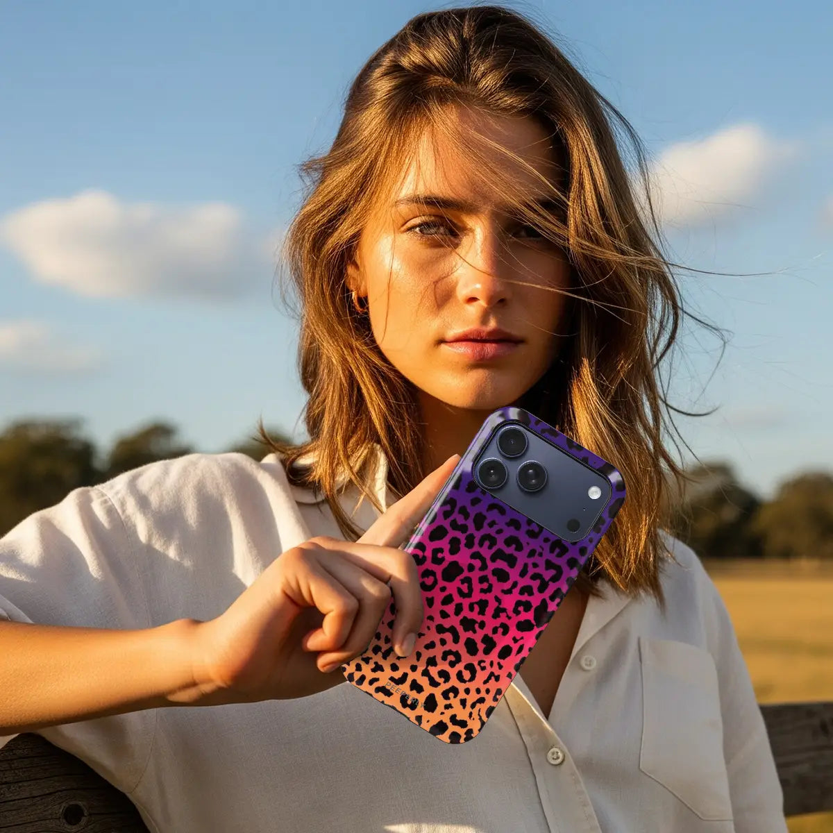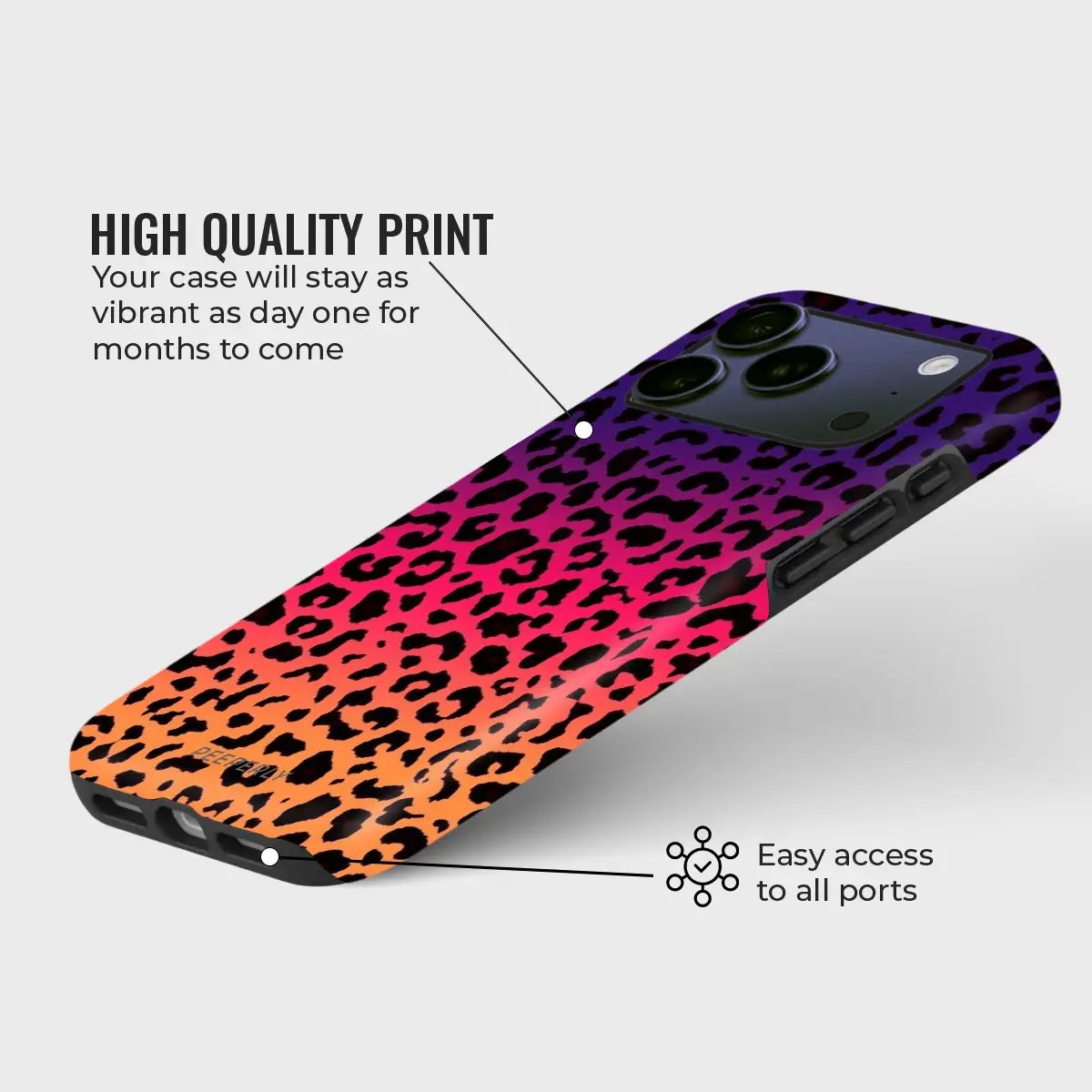Unleash your wild side with the Electric Panther Case. Designed with a striking leopard print in a radiant ombré fade of sunset orange, fiery pink, and deep purple, this case is pure energy and style. The bold animal print paired with vibrant neon tones makes it the perfect accessory for those who dare to stand out. Crafted for durability, it combines fearless fashion with reliable protection for your device.