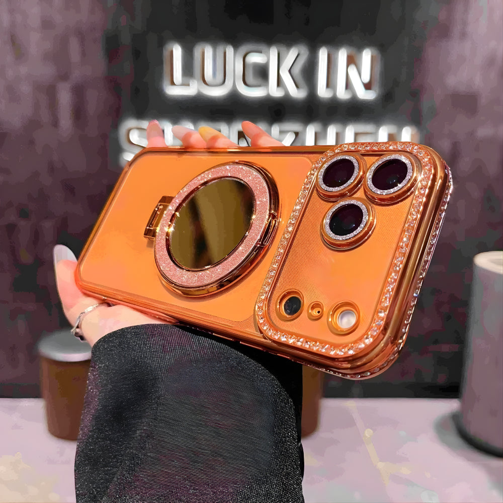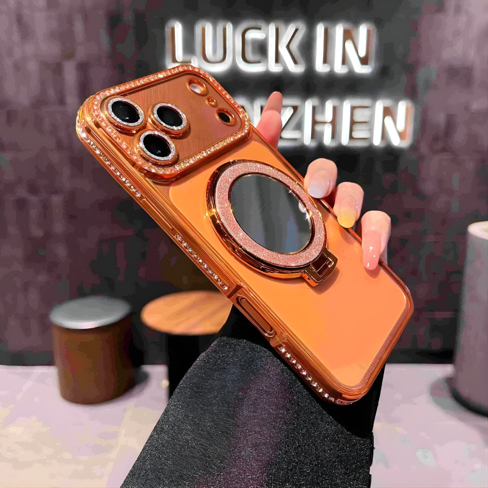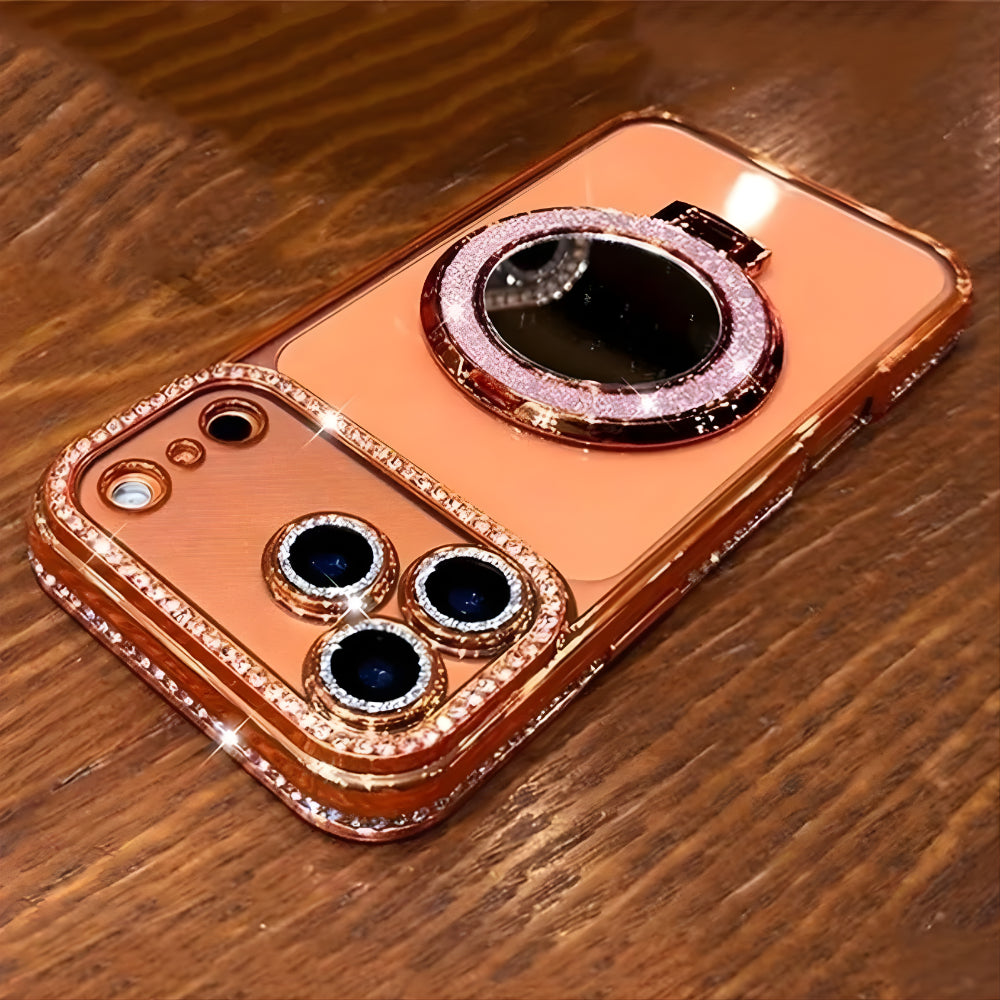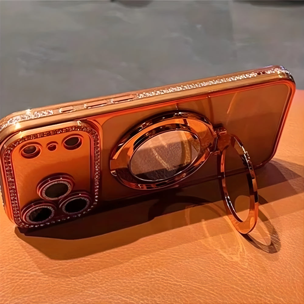 Experience glamour and functionality in one stunning design with the Elegant Shine Ring Protector Case. Crafted in a radiant rose-gold finish, this case delivers a high-end look that instantly elevates your phone. The shimmering crystal accents around the camera and ring add a dazzling sparkle, while the built-in rotating ring provides a secure grip and doubles as a convenient stand for hands-free viewing.