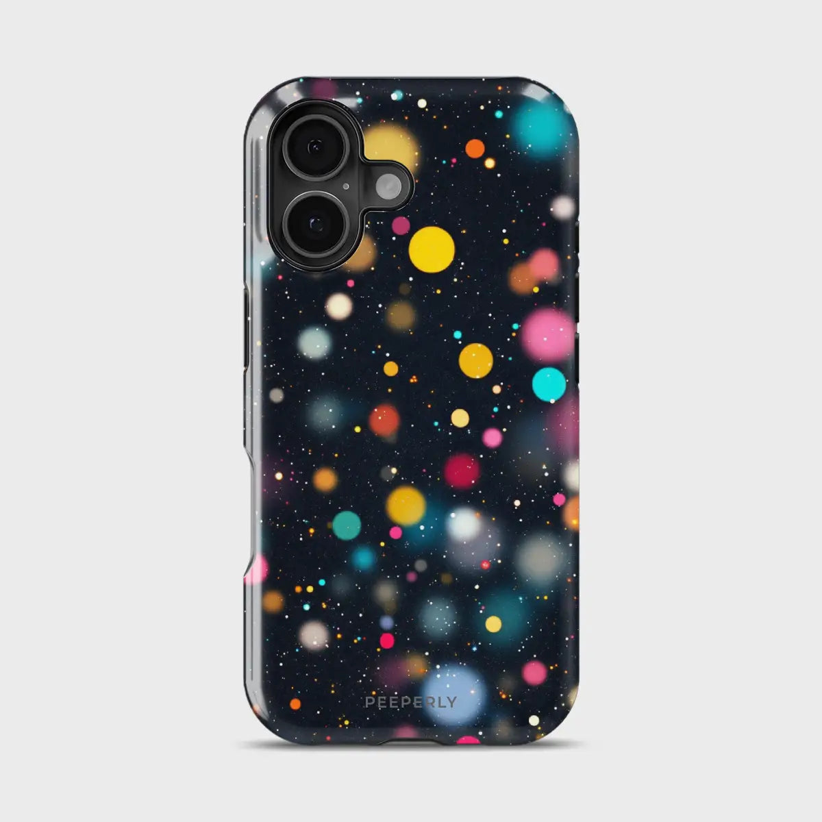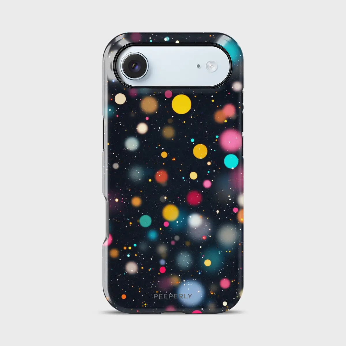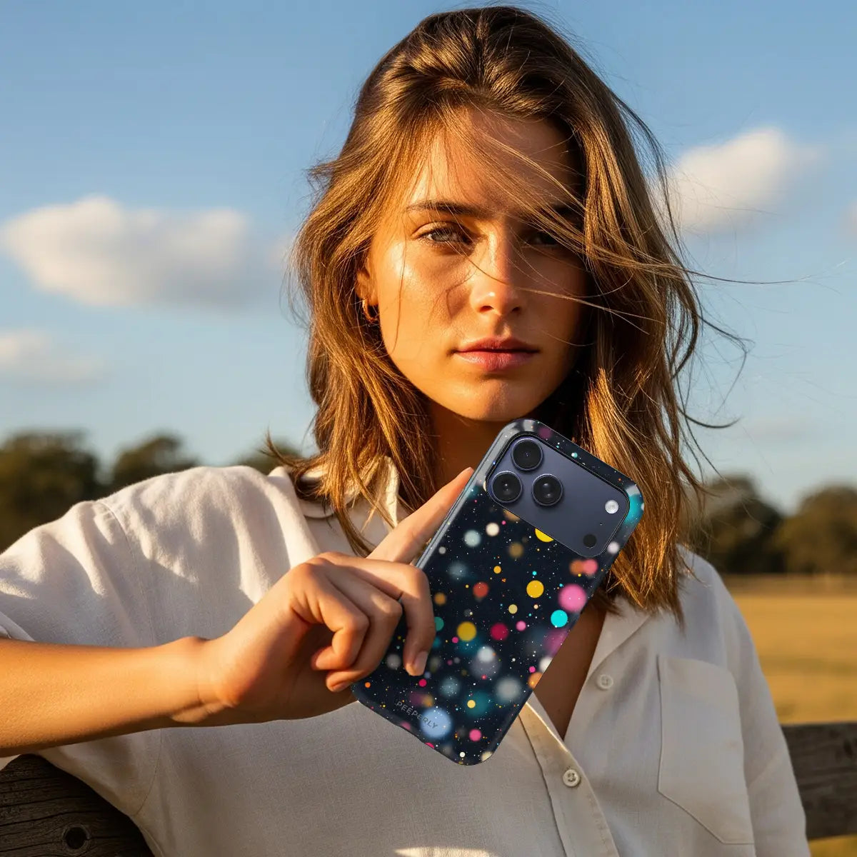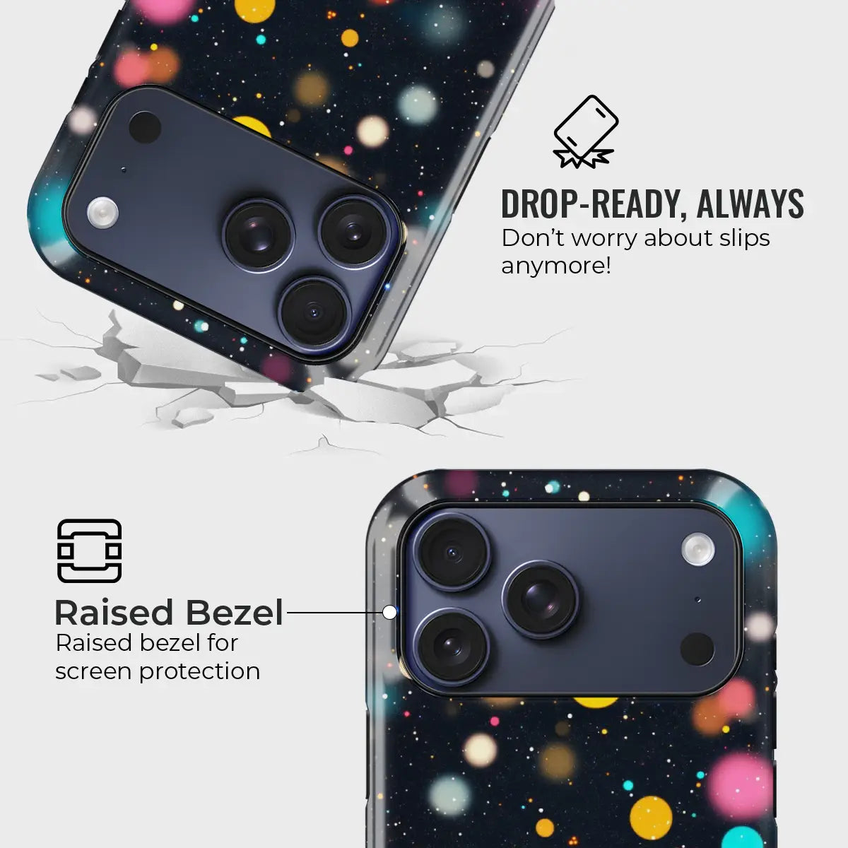 Bring the night sky to your lock screen. Galactic Confetti scatters glowing orbs of teal, gold, pink, and coral across a deep-space backdrop—like city lights seen from orbit. It’s playful, modern, and an instant mood lift every time you pick up your phone.