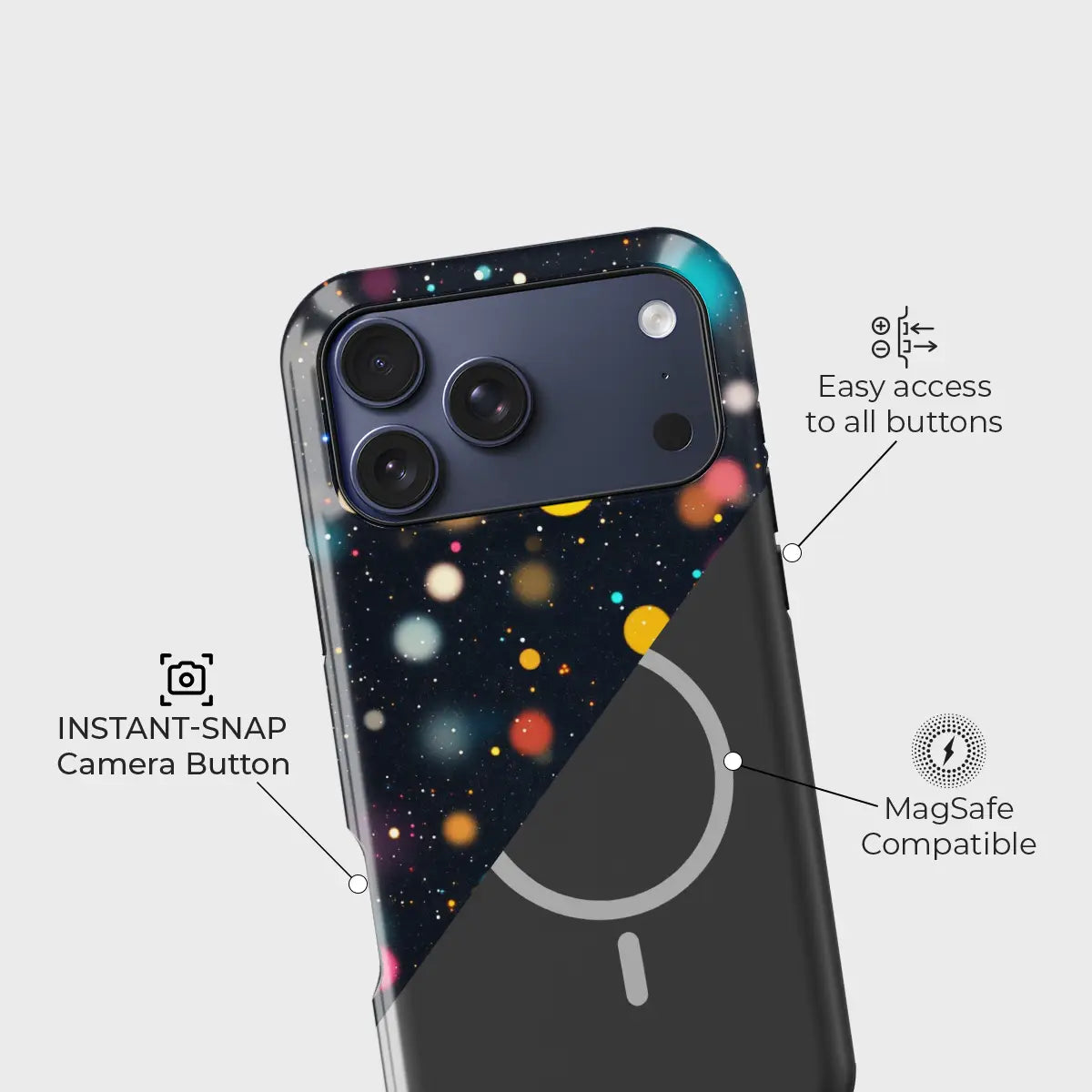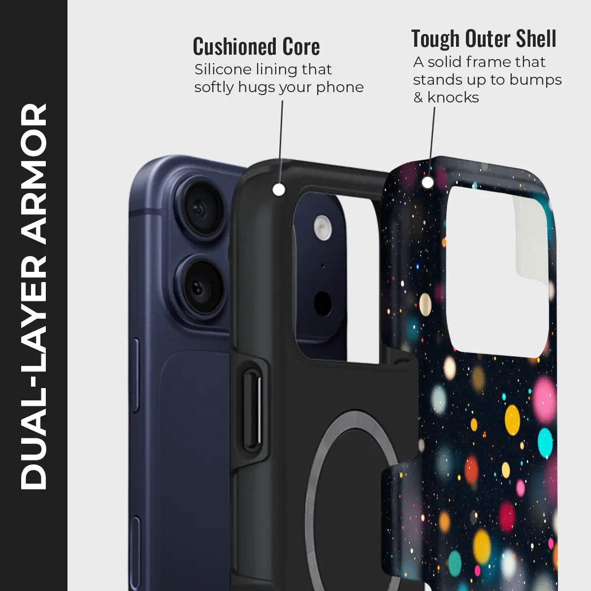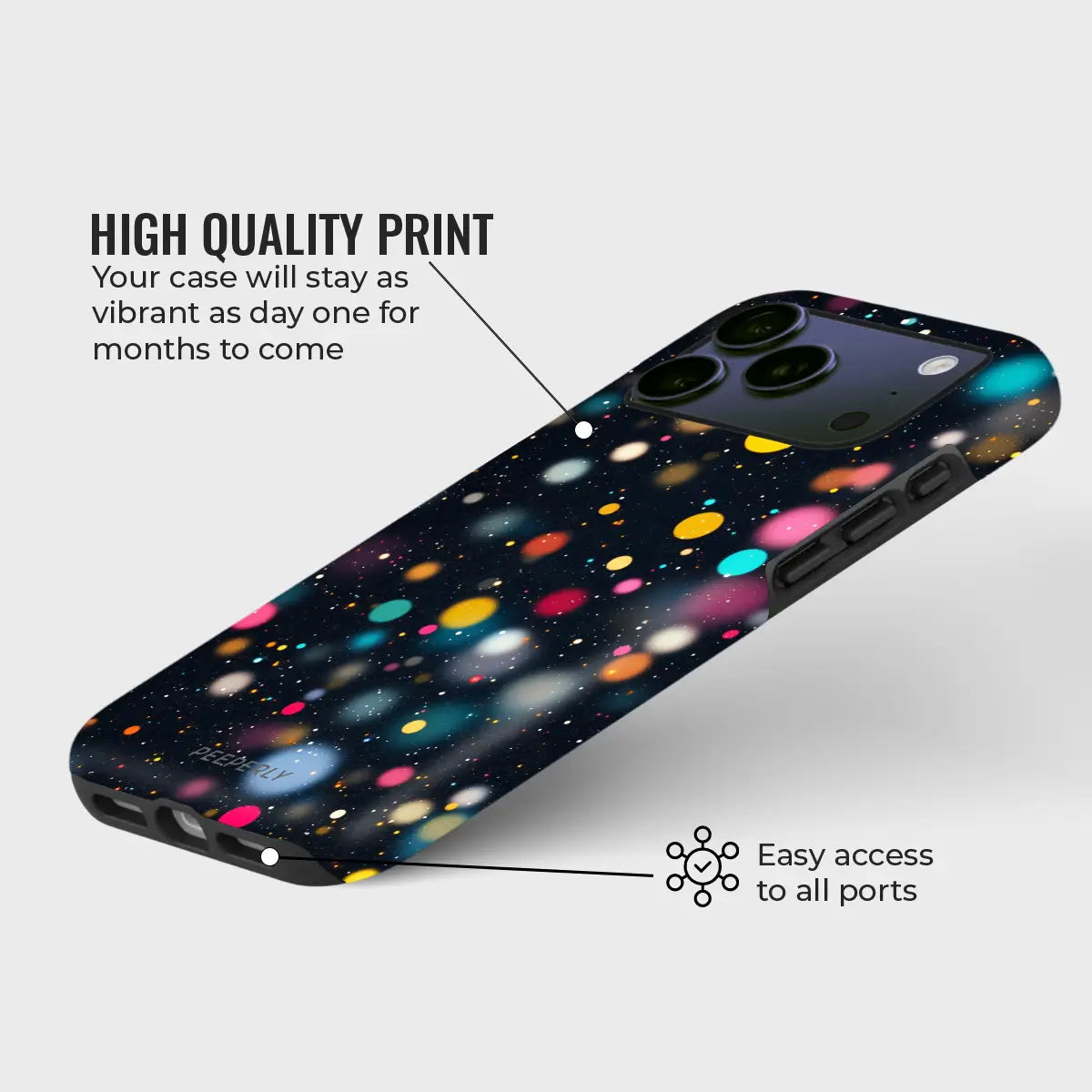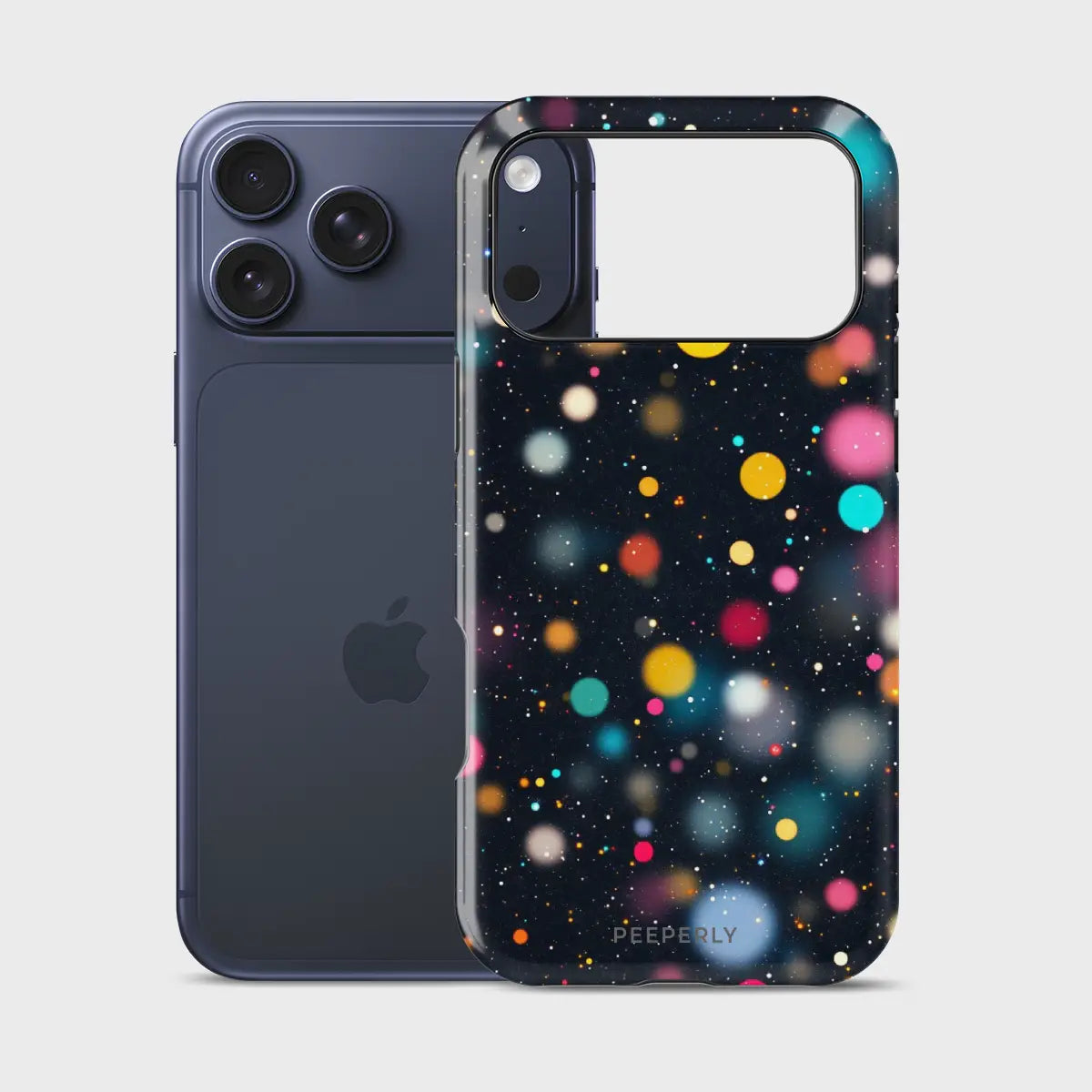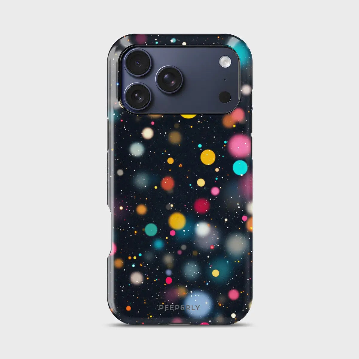 Bring the night sky to your lock screen. Galactic Confetti scatters glowing orbs of teal, gold, pink, and coral across a deep-space backdrop—like city lights seen from orbit. It’s playful, modern, and an instant mood lift every time you pick up your phone.