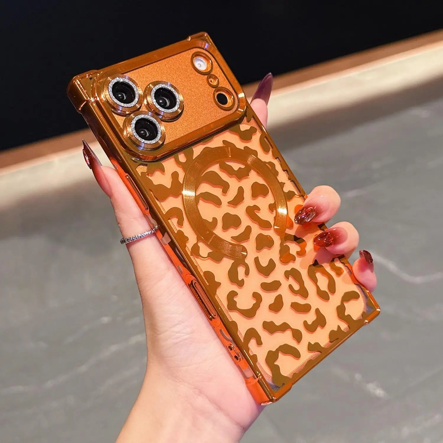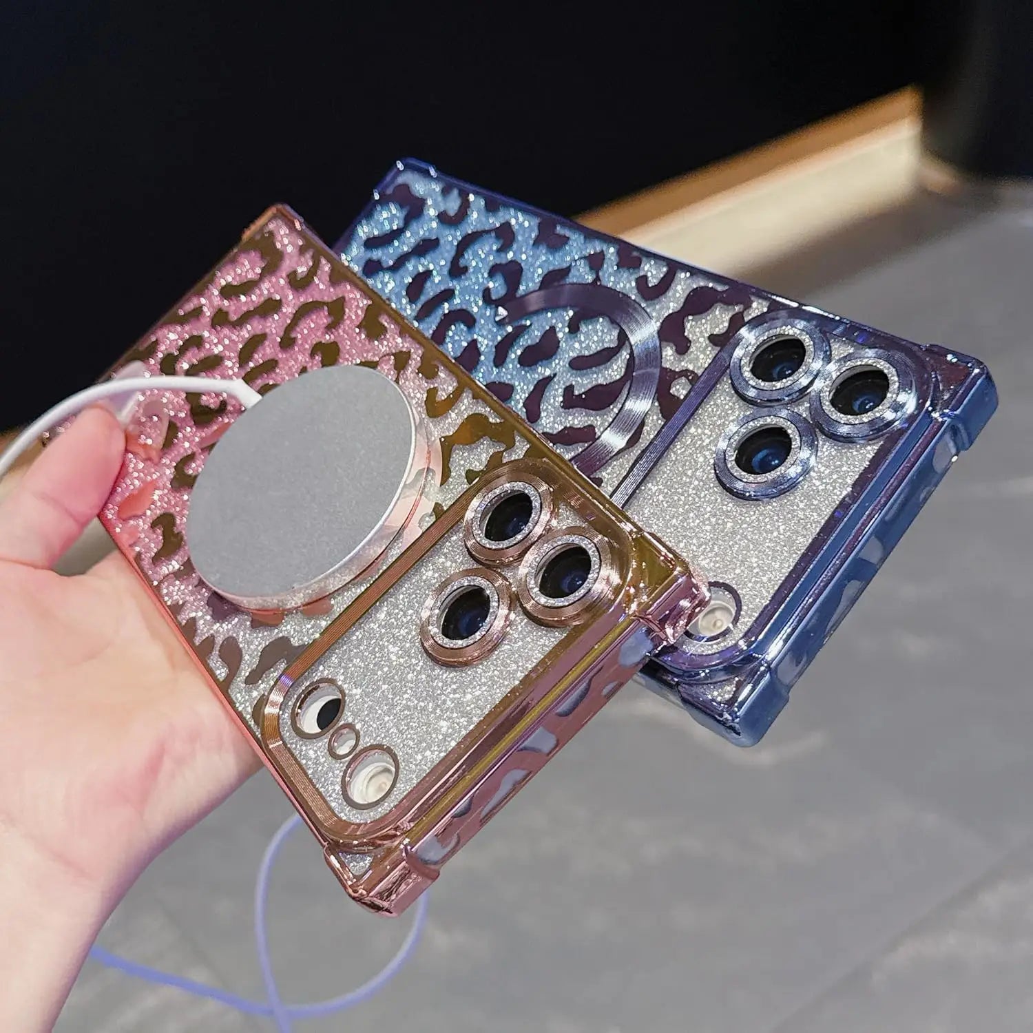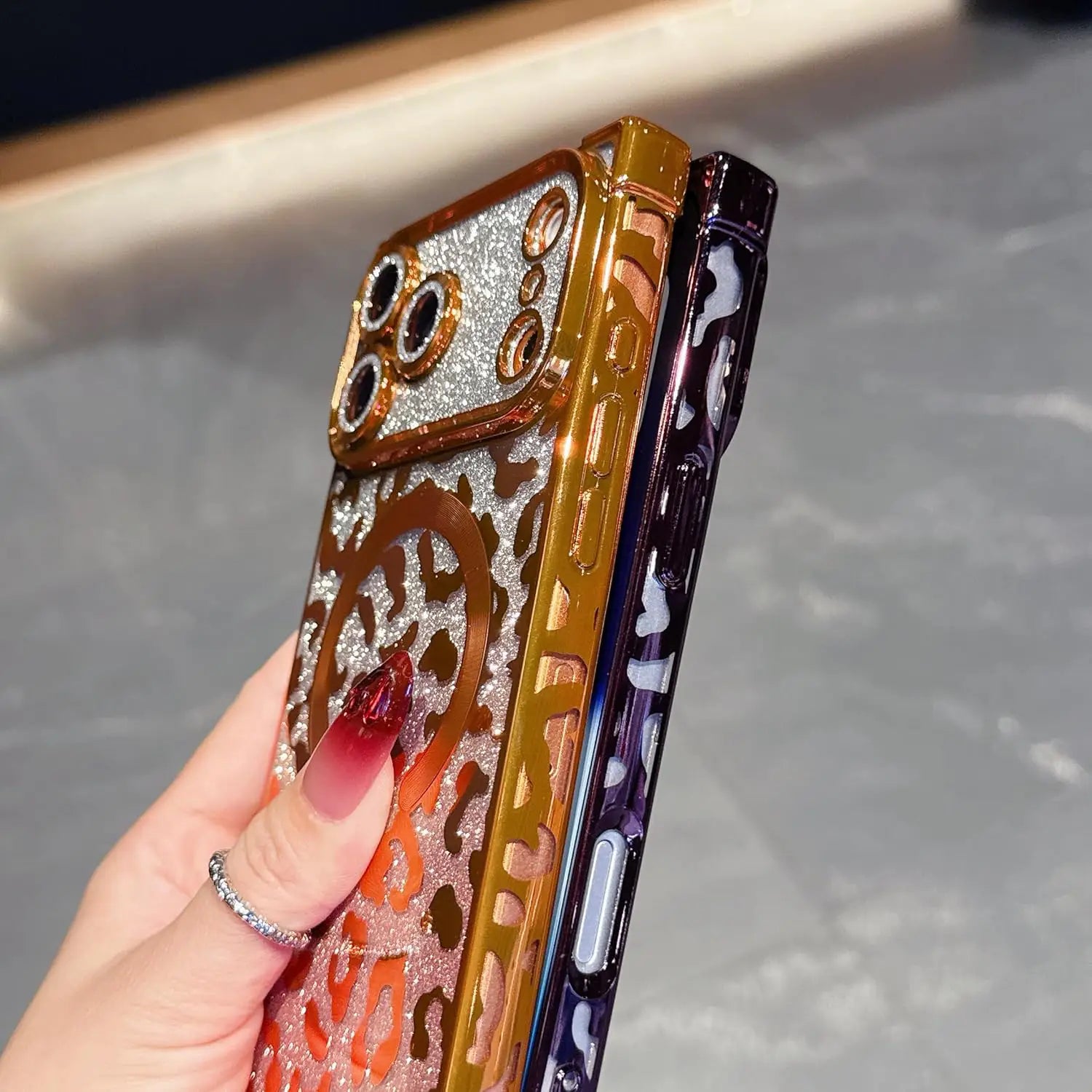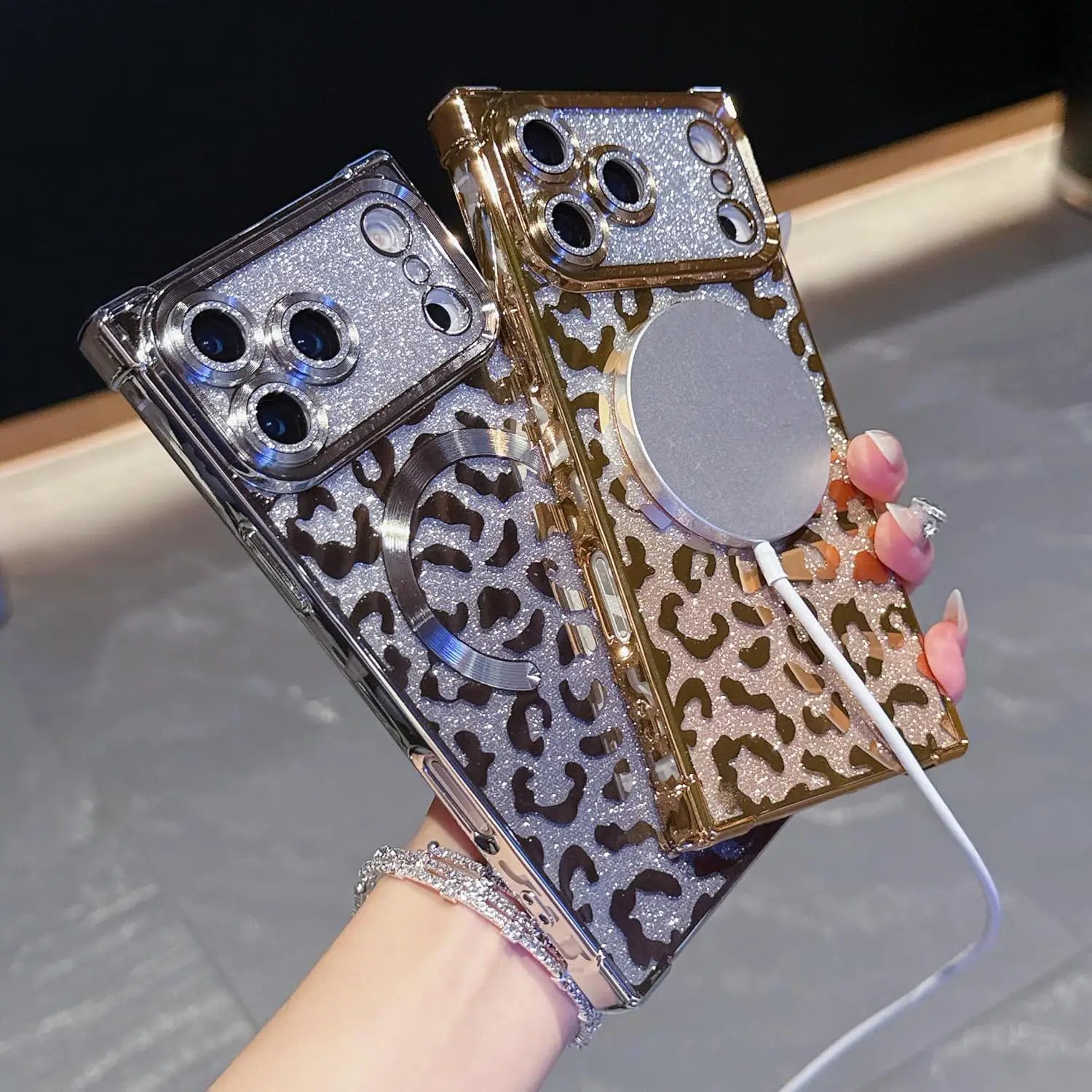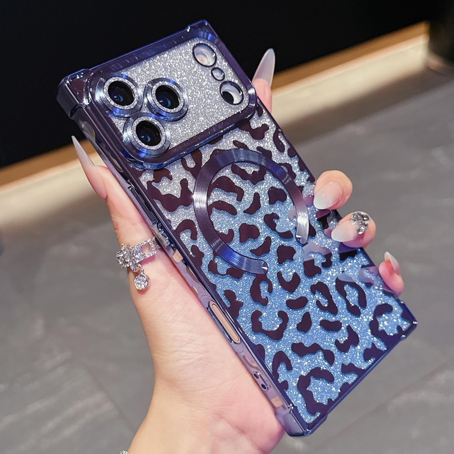 Unleash your bold side with the Wild Luxe Glitter Armor Mag Case, crafted for those who love a perfect mix of glamour and attitude. Featuring a dazzling metallic leopard pattern layered over high-shine glitter, this case turns your phone into a statement accessory.