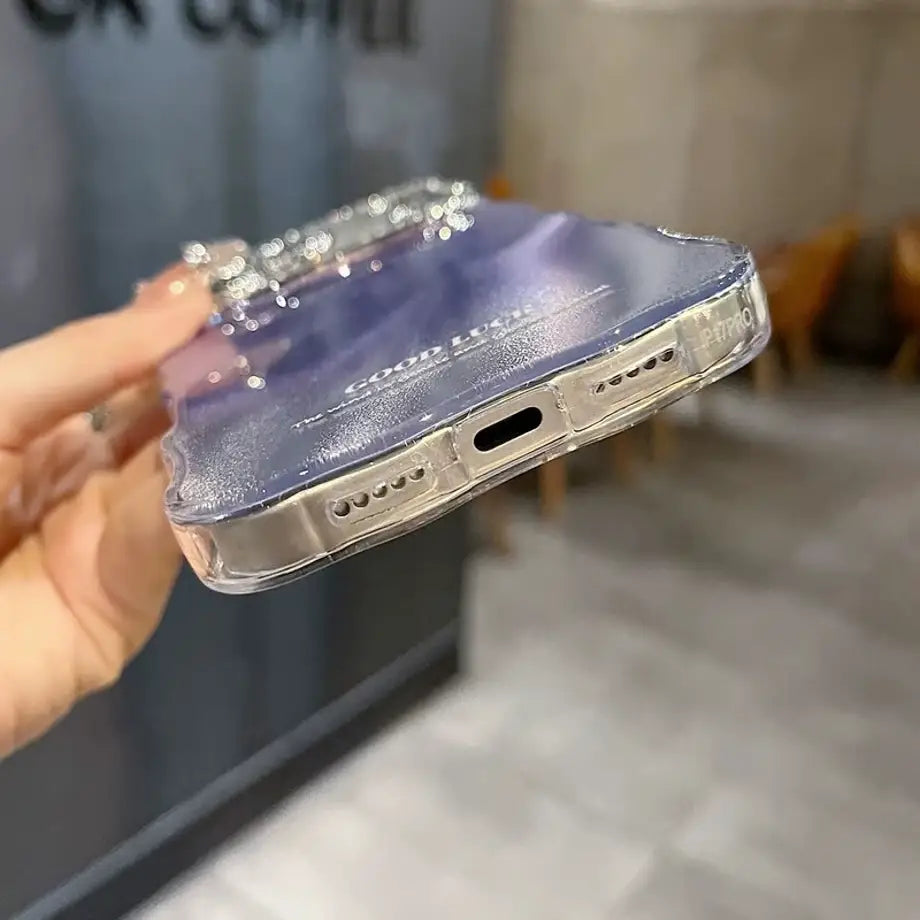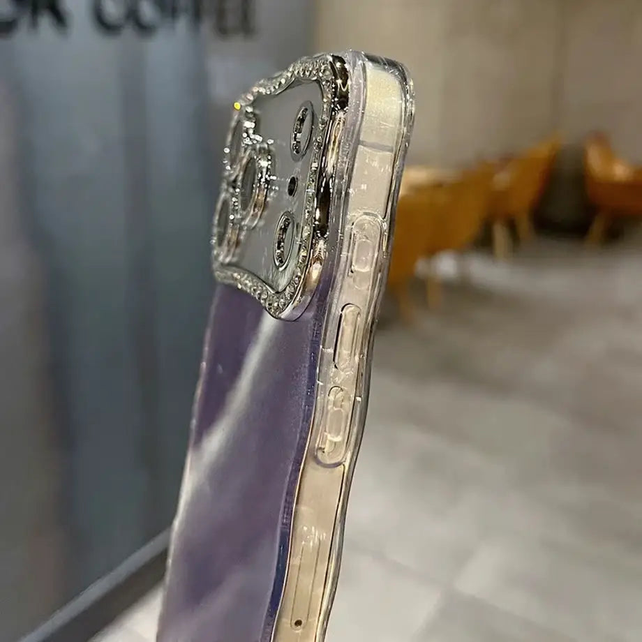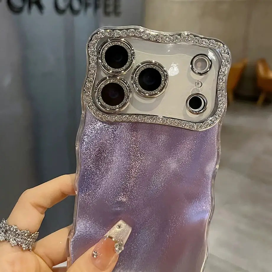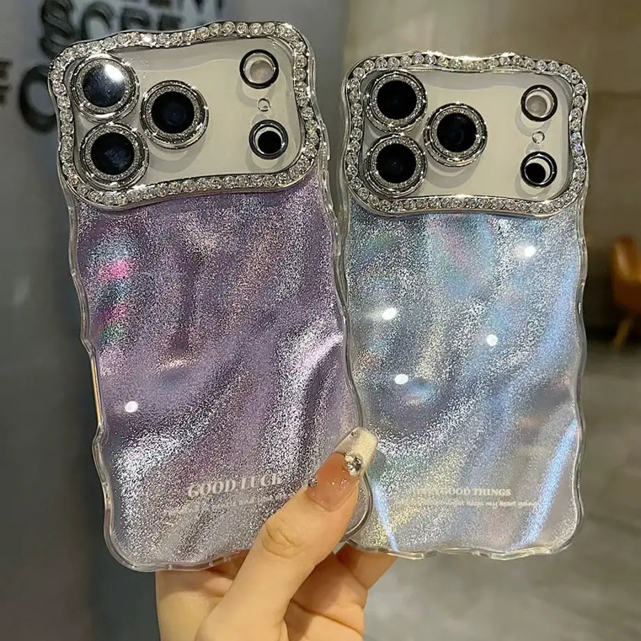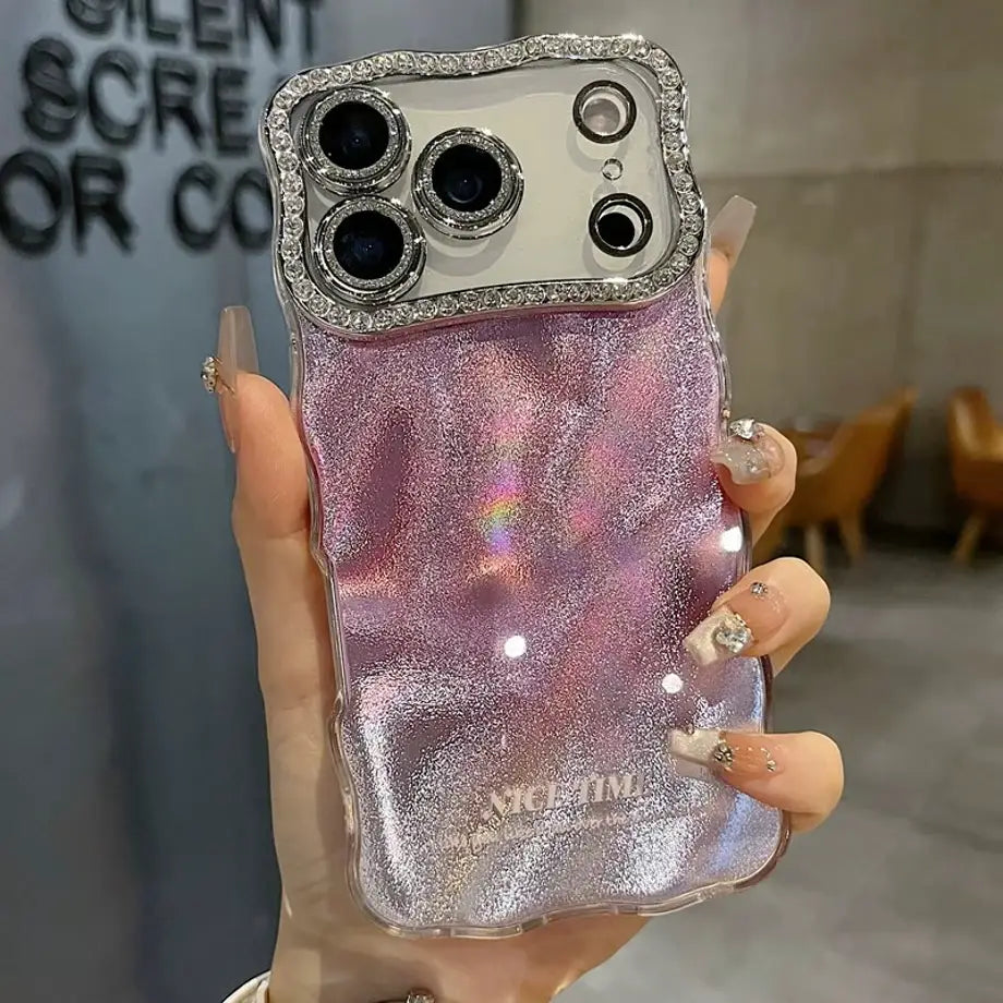 Step into a world of shimmer with the Holographic Ripple Diamond Edge Case — a stunning blend of fluid holographic shine and luxurious crystal detailing. The rippled back design catches the light from every angle, creating a mesmerizing soft-glow effect, while the diamond-lined camera border adds a touch of elegance and high-end sparkle.