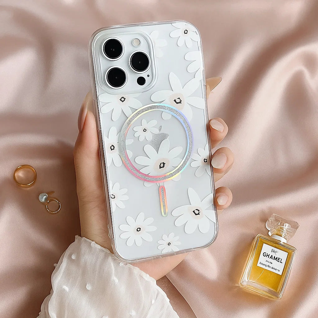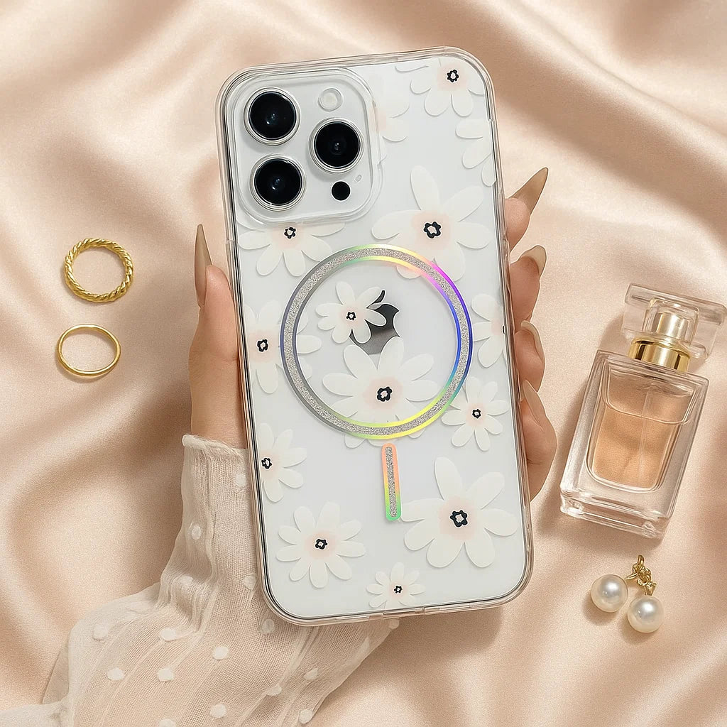 Bring calm elegance and floral charm to your everyday style with the Serene Daisy Edition Case. Inspired by soft spring mornings, this case features delicate white daisy patterns that add a touch of serenity and grace to your phone.