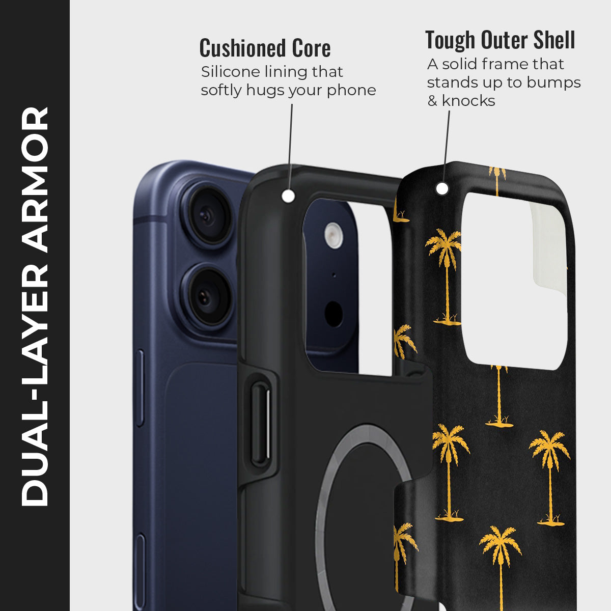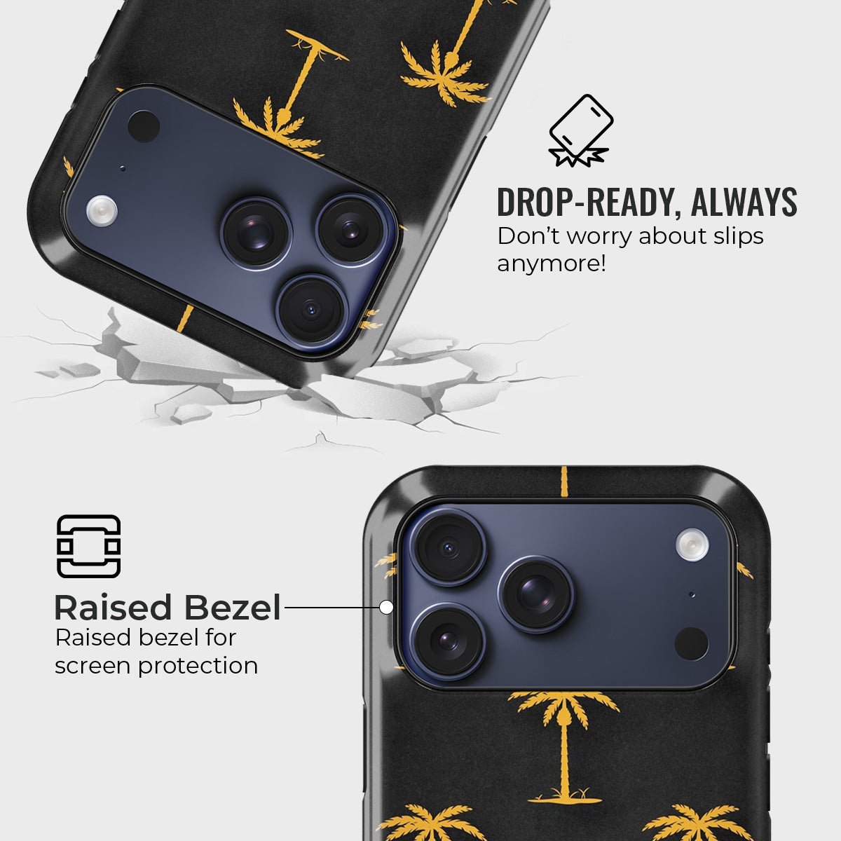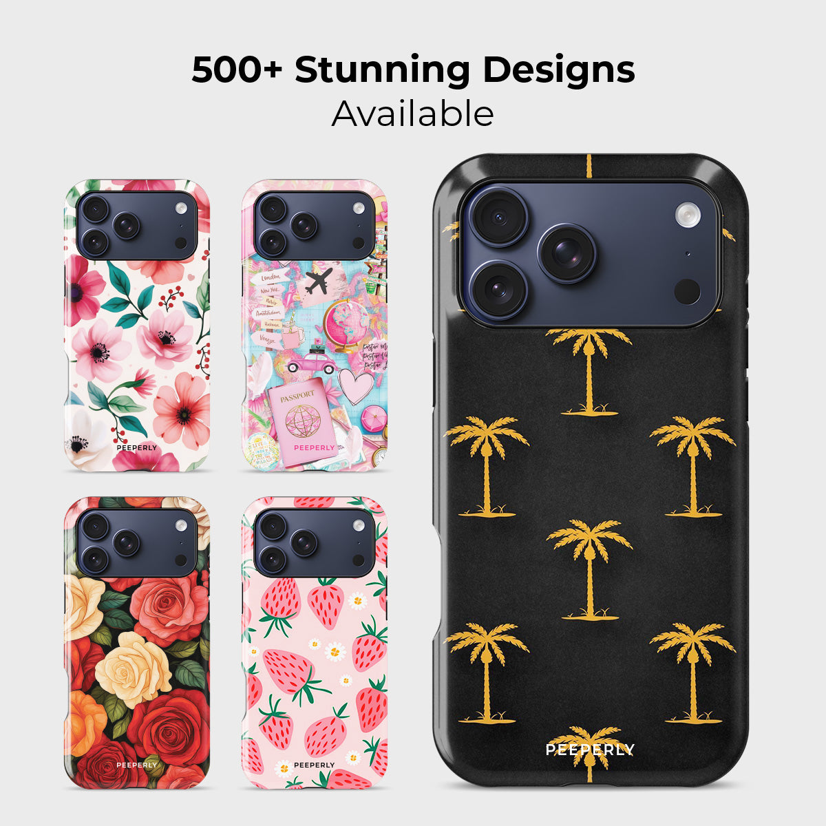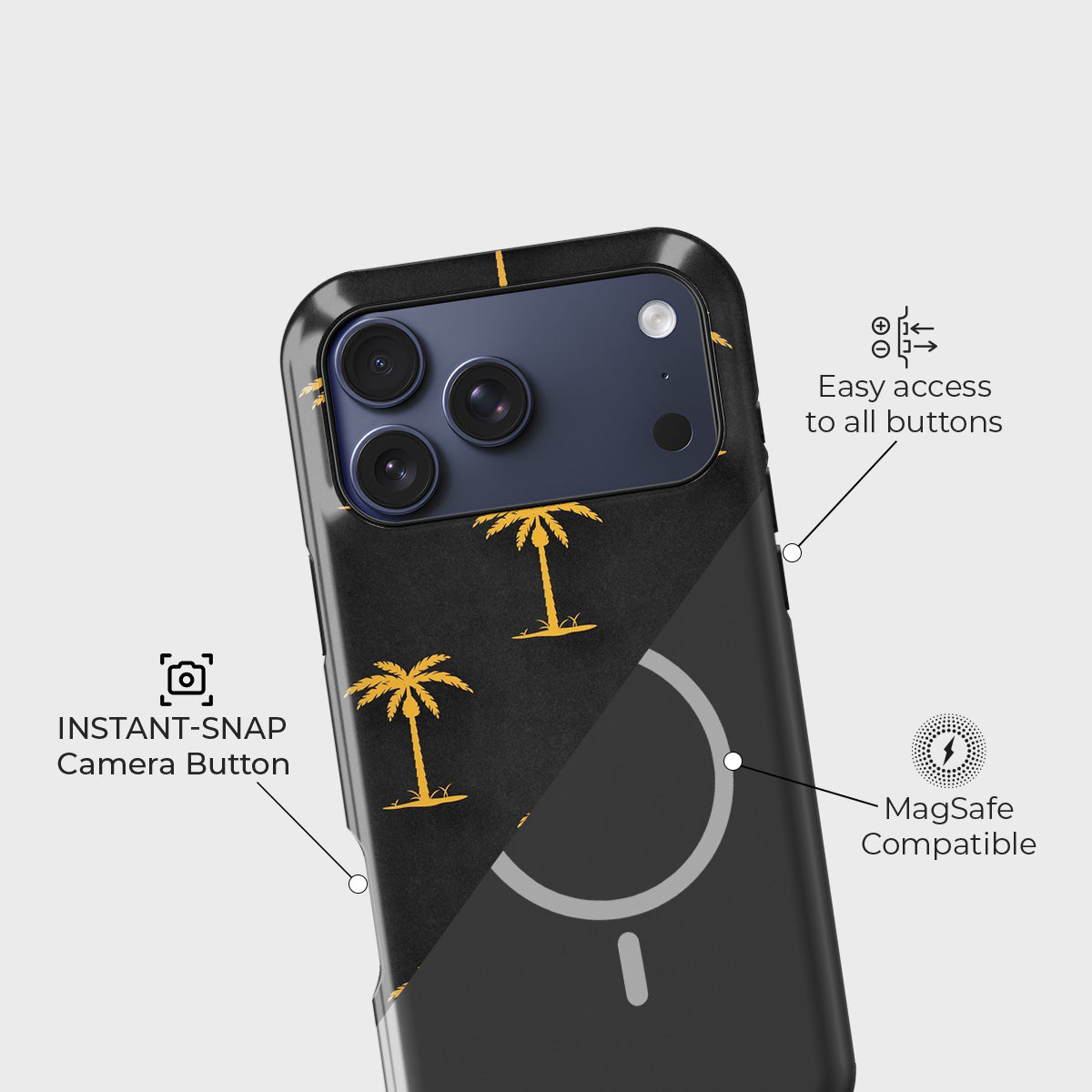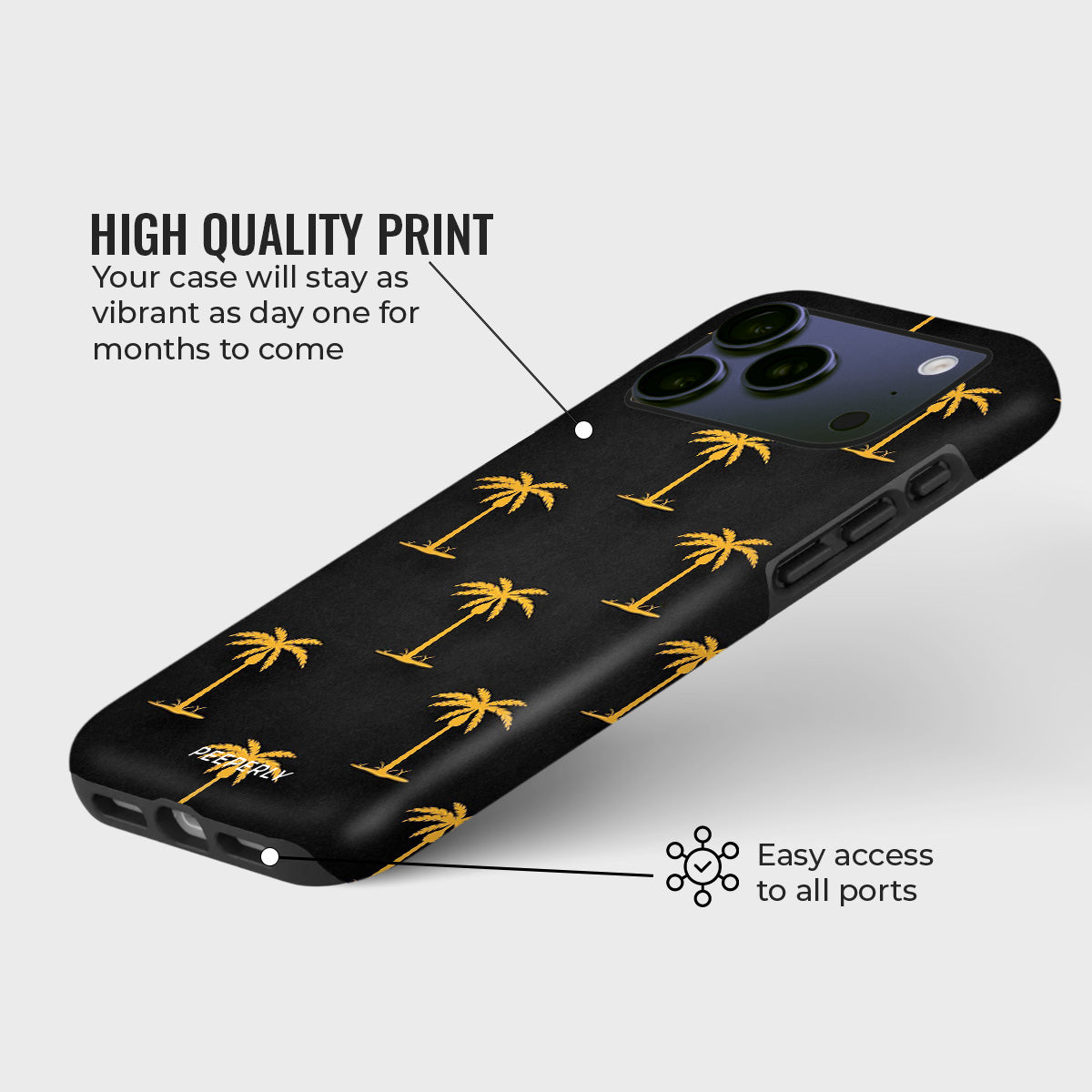 Bring a slice of paradise to your everyday with the Golden Palms case. Featuring golden palm motifs against a deep black backdrop, this case captures the warmth of sunlit beaches and the charm of island getaways. Designed for those who crave a tropical escape while staying stylish, it offers both durability and eye-catching aesthetics.