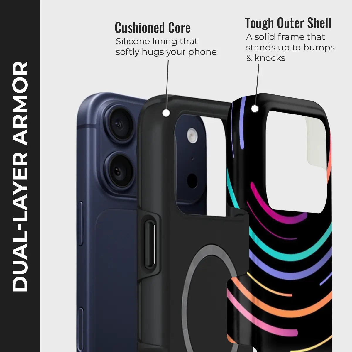 - Double-Layer Protection: Silicon interior cushions impacts + rigid PC exterior shields against drops and scratches.