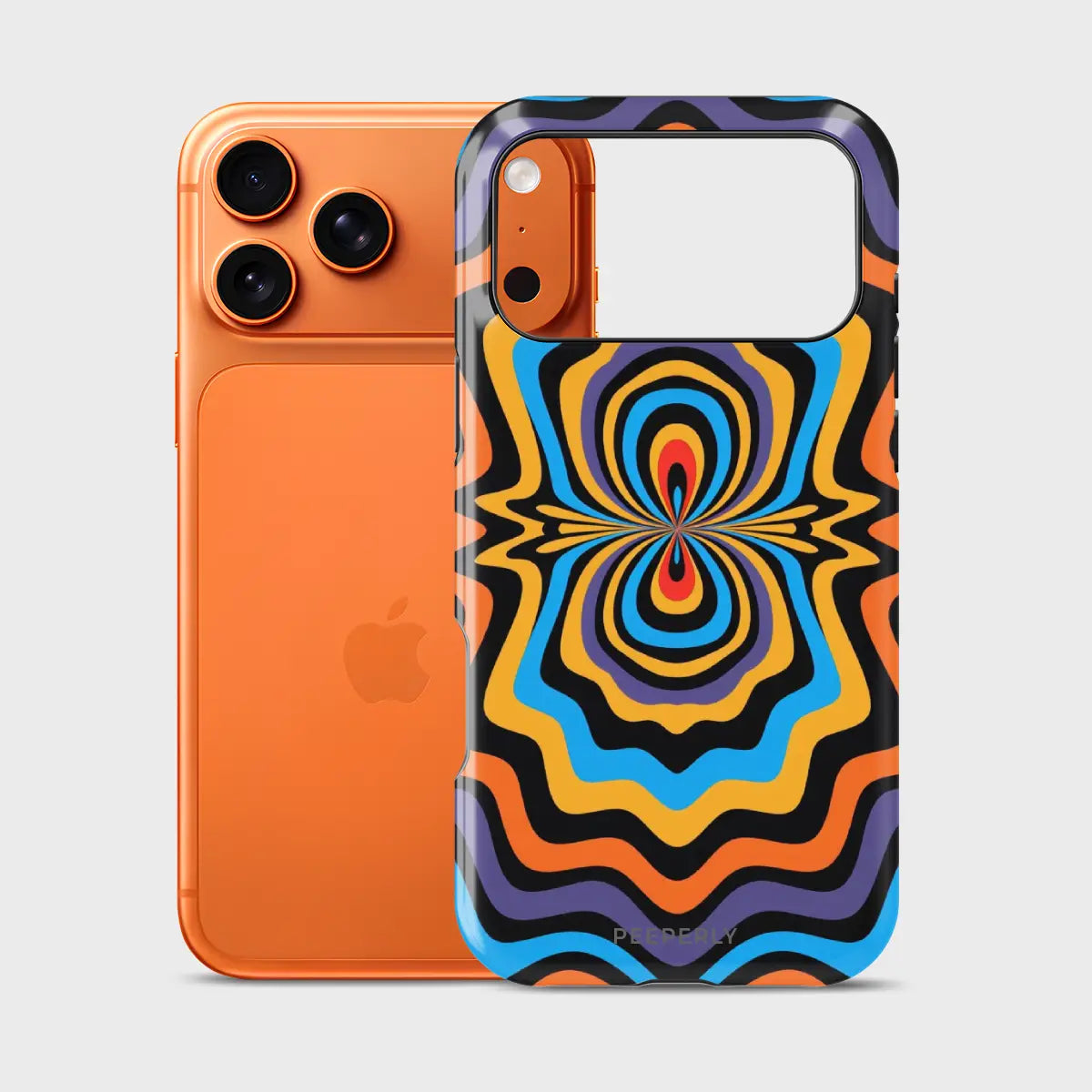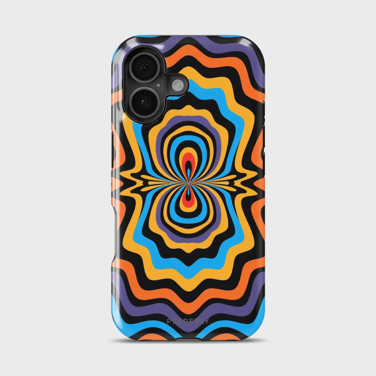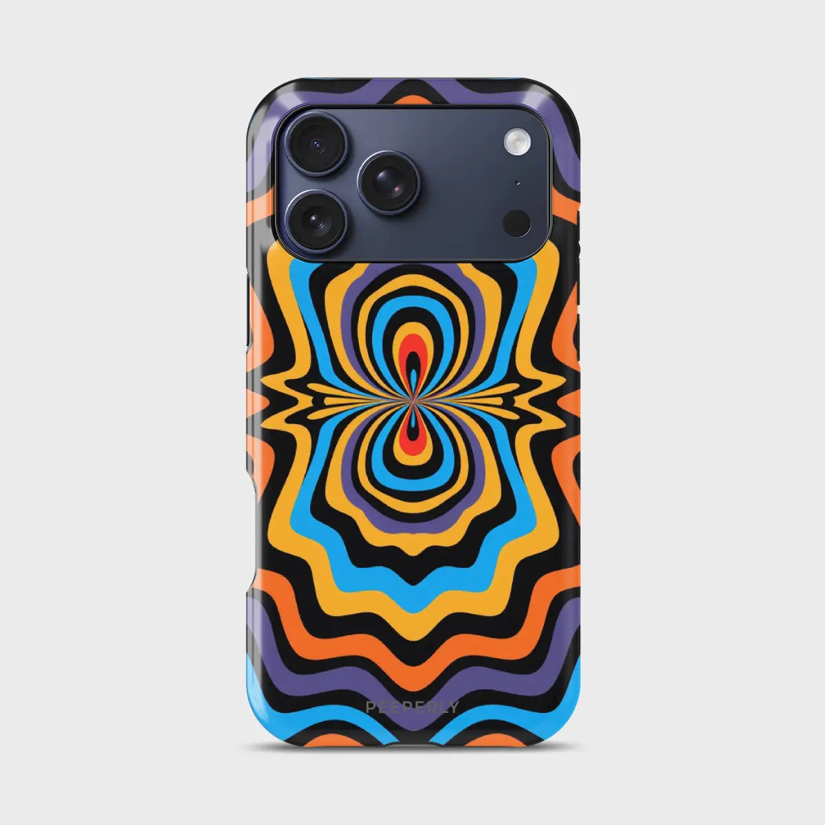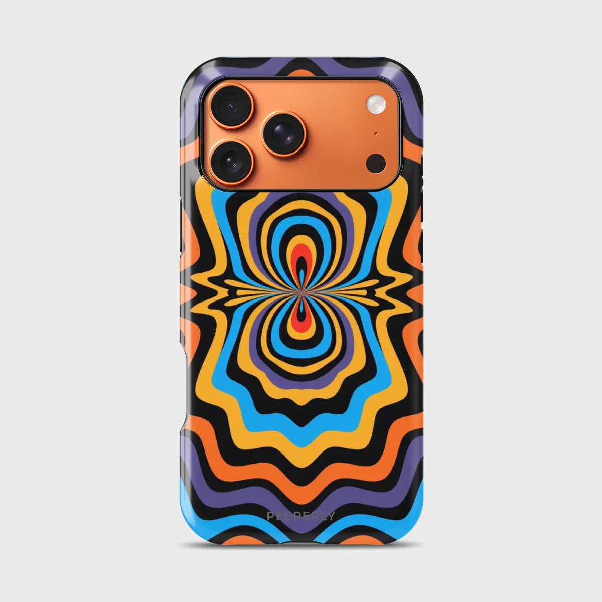 Dare to stand out with OptiCore, a phone case that bends perception and electrifies your style. Featuring a mesmerizing optical illusion pattern in vibrant shades of orange, blue, purple, and yellow, this design radiates energy from the core outward — like a pulse of pure visual power.