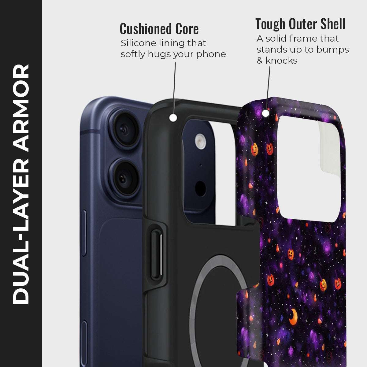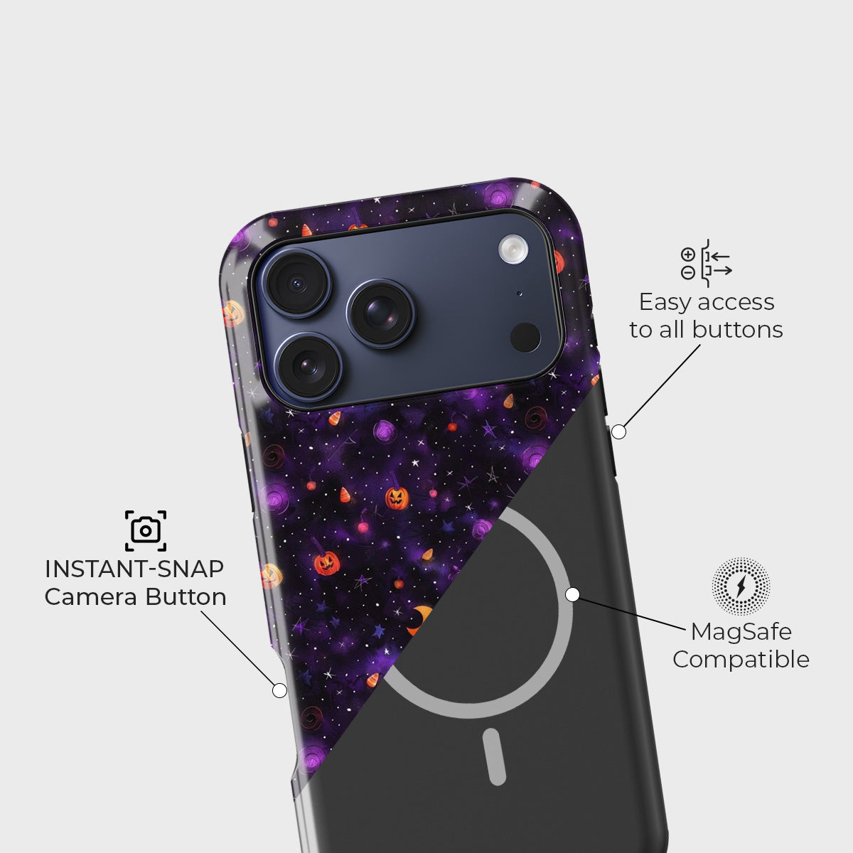 Step into a galaxy where Halloween magic meets cosmic wonder. The Pumpkin Nebula Case blends deep purples, starlit skies, and glowing pumpkin faces to create a festive yet otherworldly design. Perfect for spooky season lovers, this case adds a playful charm while keeping your phone safe and stylish all year round.