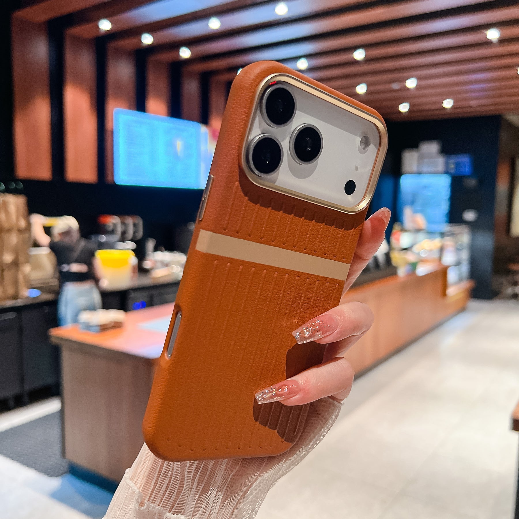 Elevate your everyday carry with the Ridge Band Stripe Hybrid Case. Inspired by travel gear, its ribbed vegan-leather back and clean metallic stripe deliver a refined, suitcase-style look with serious grip. A slim hybrid shell cushions drops, while raised edges and a reinforced camera frame keep your screen and lenses safe—style without the bulk.