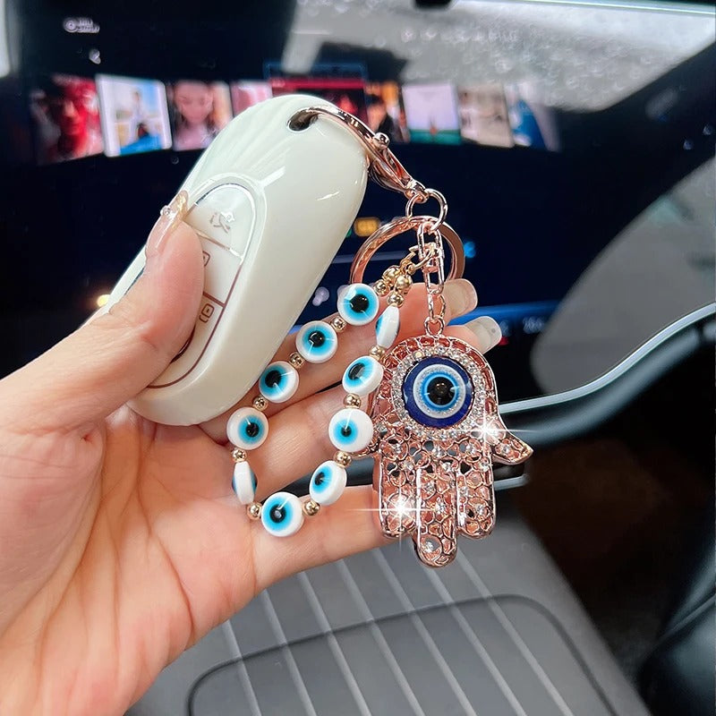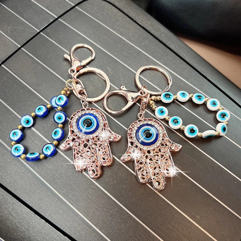 The Divine Evil Eye Keychain is a striking blend of spirituality and elegance, designed to offer protection while elevating your everyday style. Featuring a sparkling evil eye hand charm paired with classic blue eye beads, this keychain symbolizes warding off negativity and inviting positive energy.