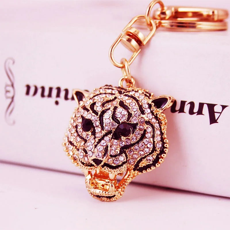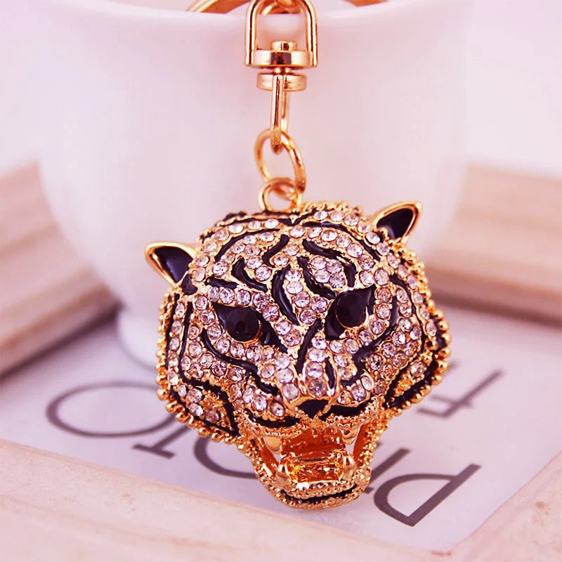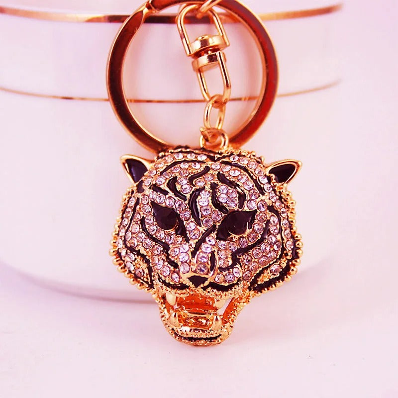The Power Glint Tiger Keychain is a bold symbol of strength, confidence, and luxury. Featuring a finely detailed tiger head encrusted with shimmering crystals, this statement keychain blends fierce character with premium elegance. The gold-tone finish and sparkling accents make it an eye-catching accessory for car keys, handbags, or backpacks—perfect for those who love powerful design with a glamorous edge.