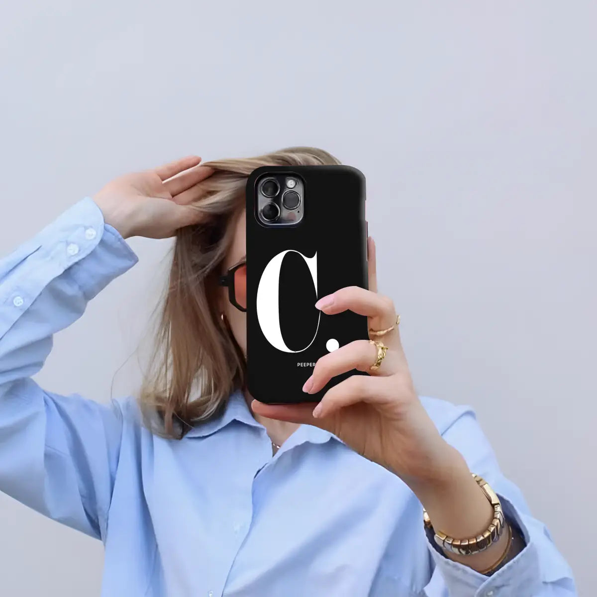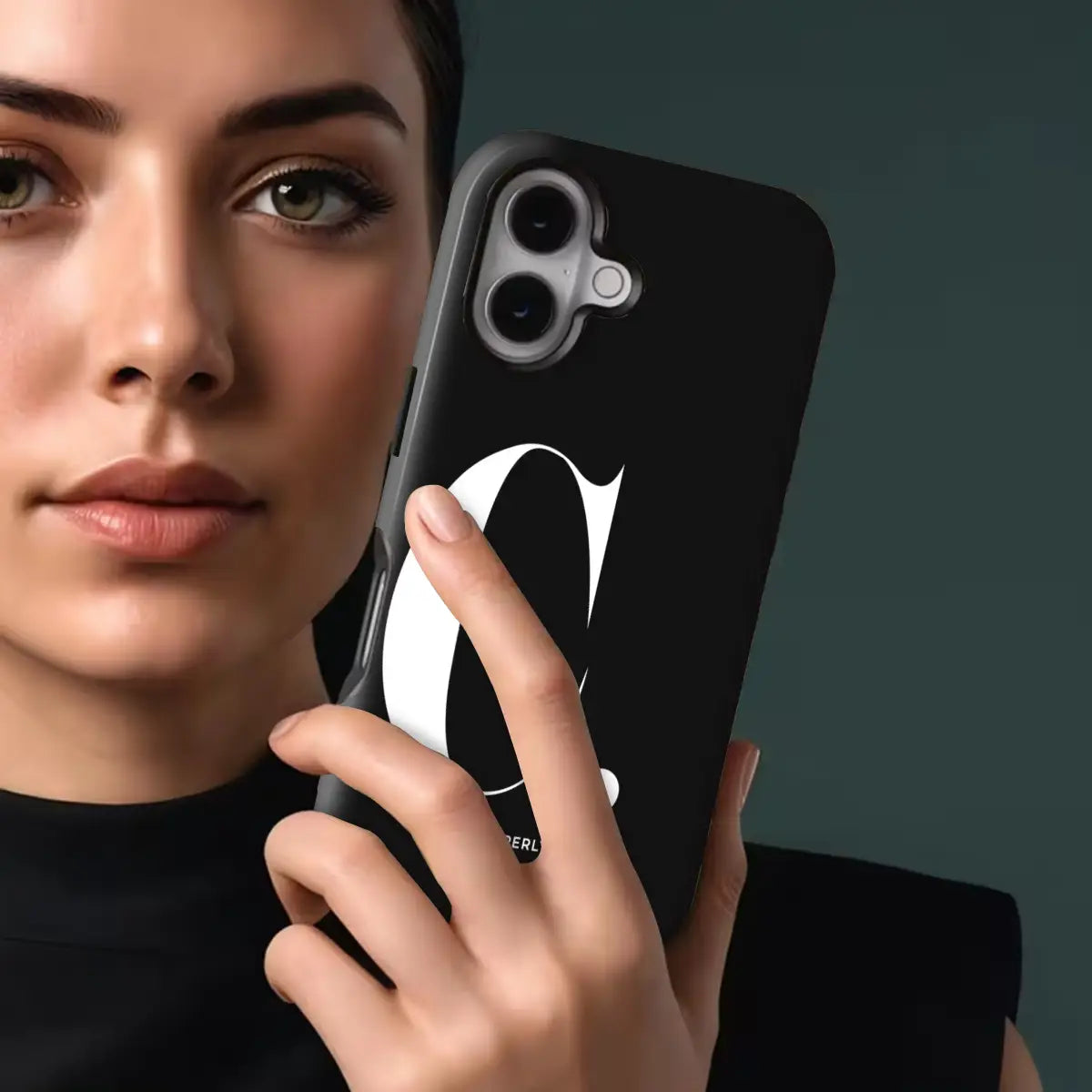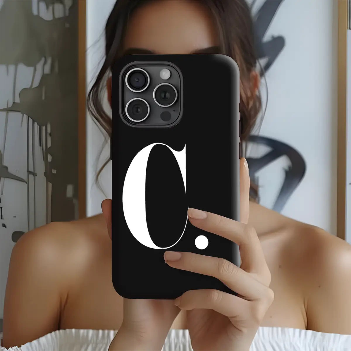 Confident, timeless, and effortlessly modern, the Chloe phone case is designed for those who appreciate bold simplicity and refined style. Set against a deep matte black finish, the striking white “C” initial creates a powerful contrast that feels both minimalist and iconic.