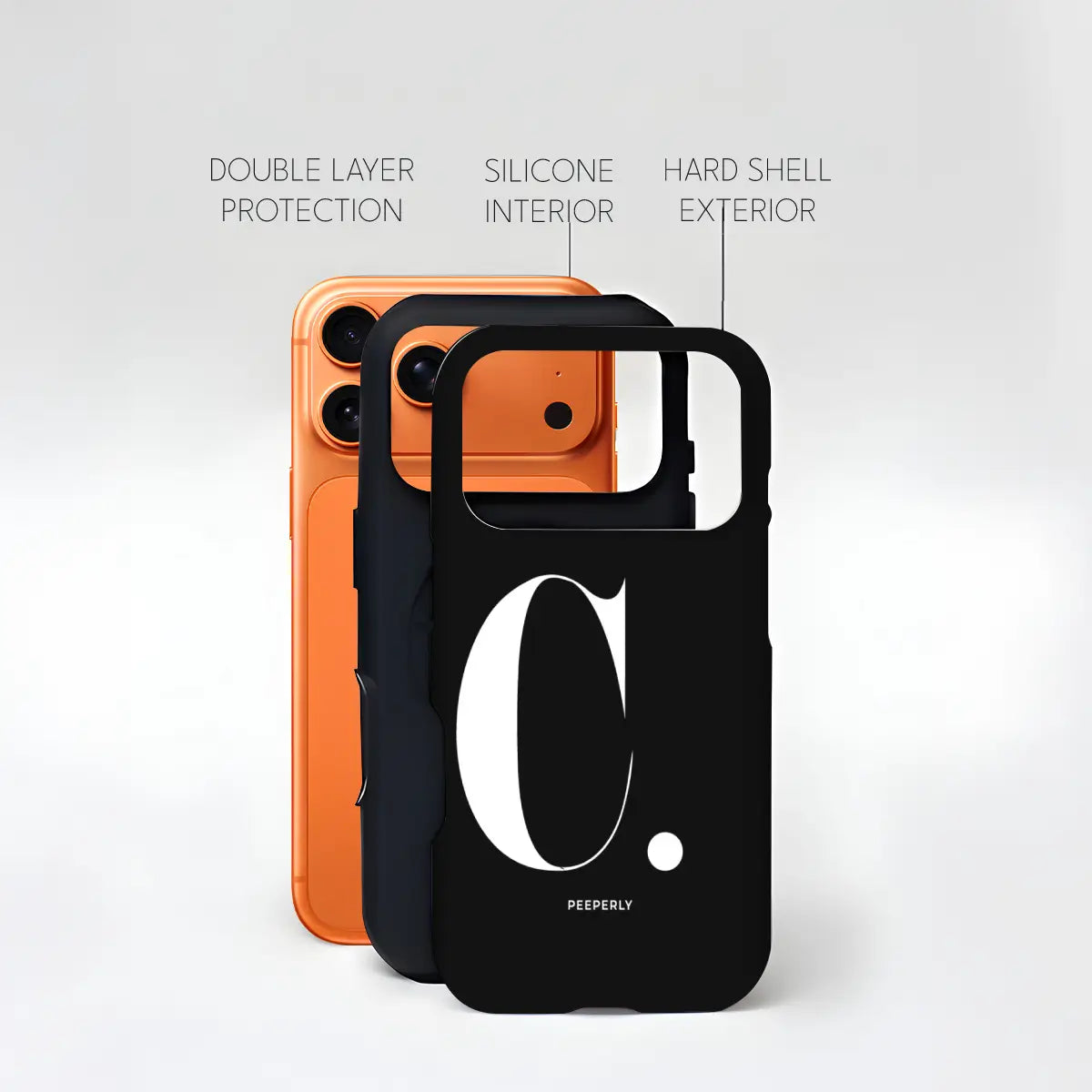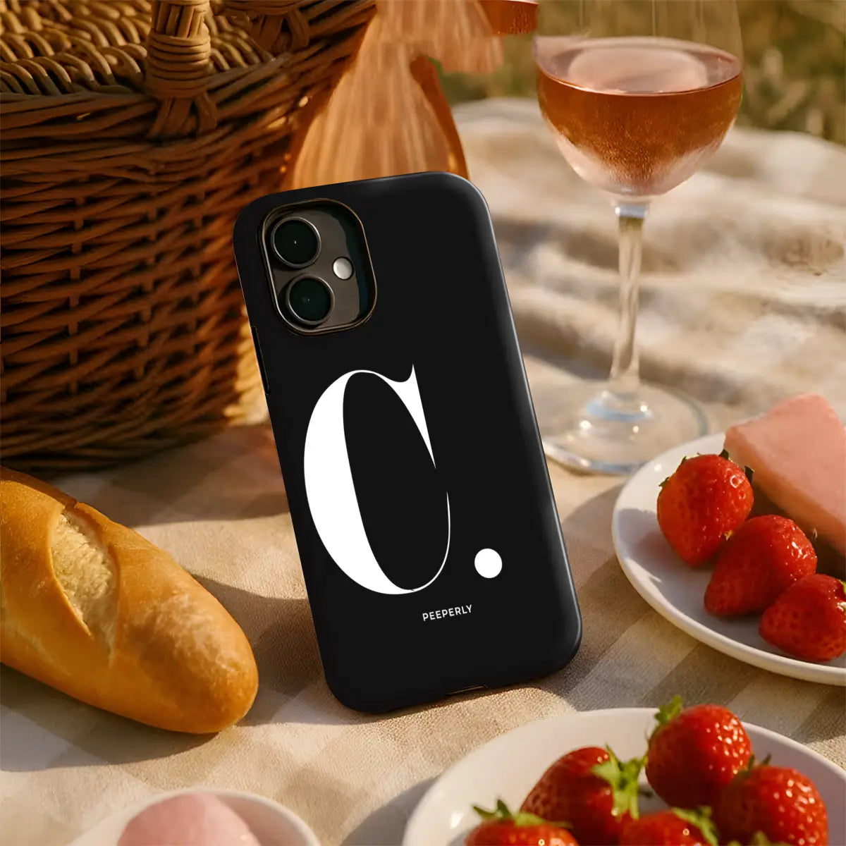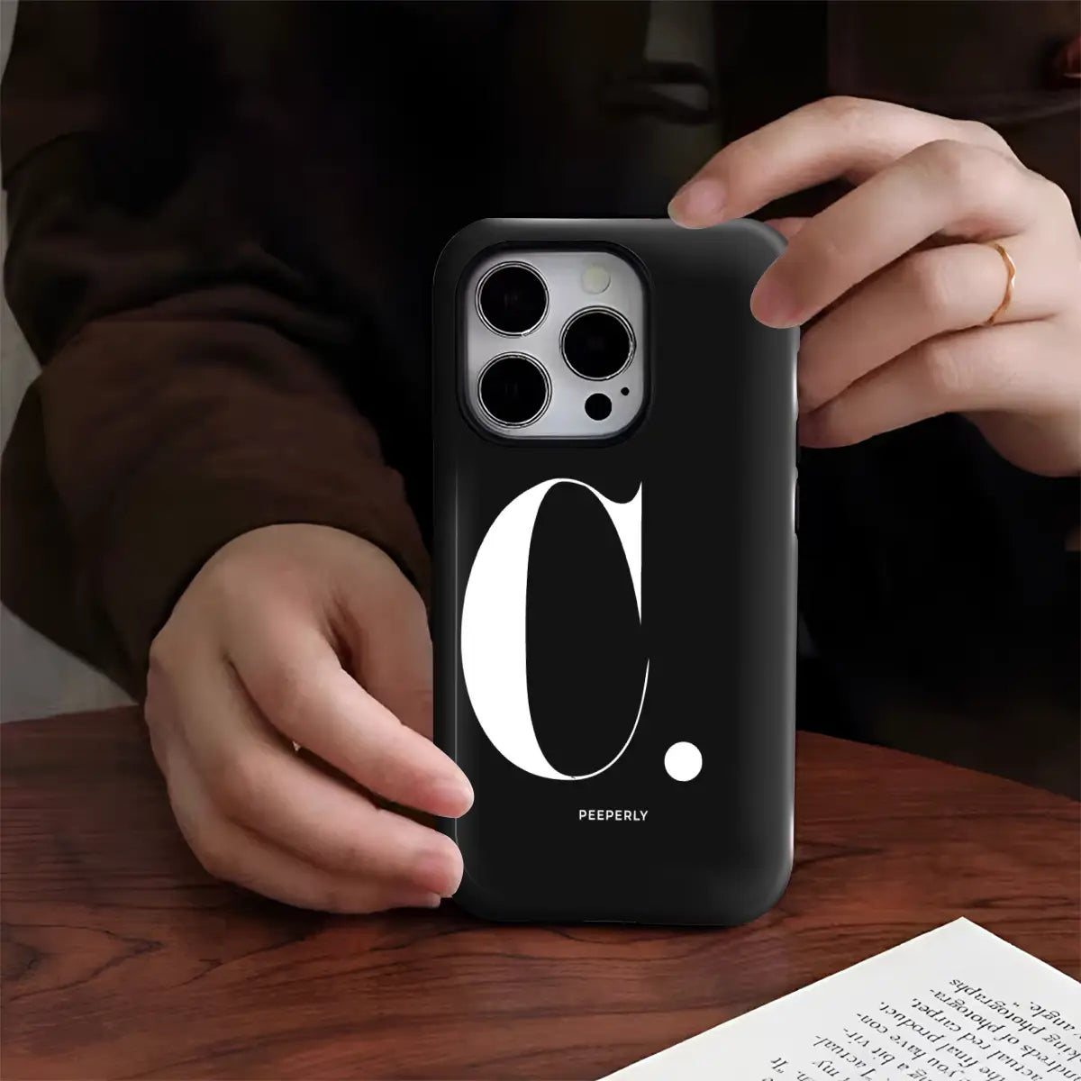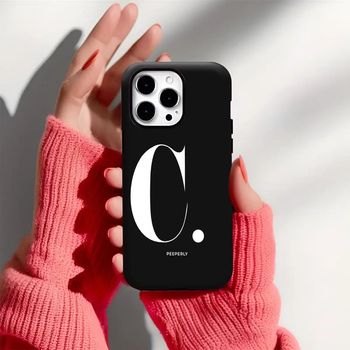 Confident, timeless, and effortlessly modern, the Chloe phone case is designed for those who appreciate bold simplicity and refined style. Set against a deep matte black finish, the striking white “C” initial creates a powerful contrast that feels both minimalist and iconic.