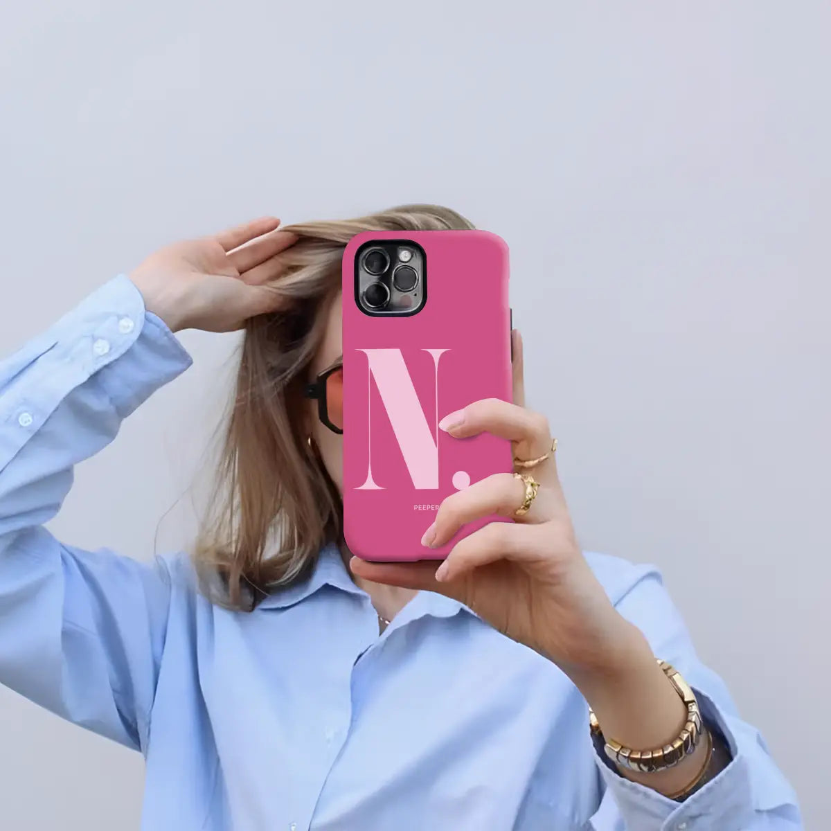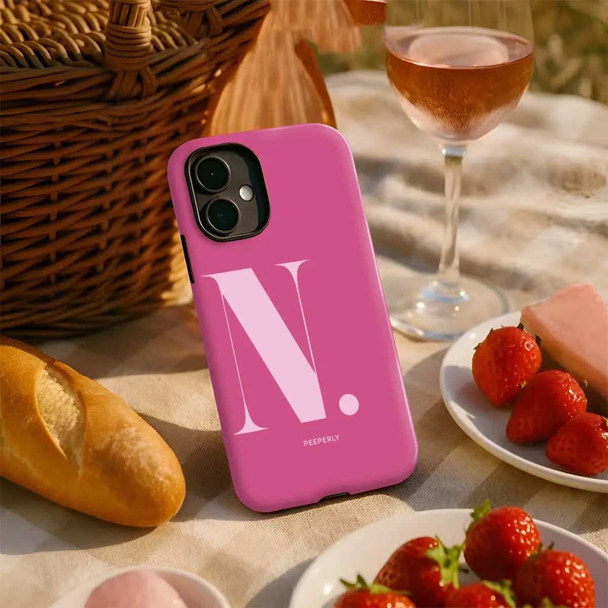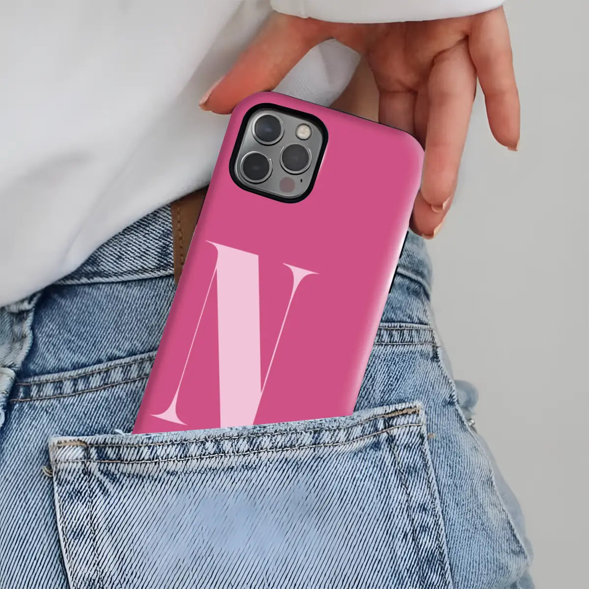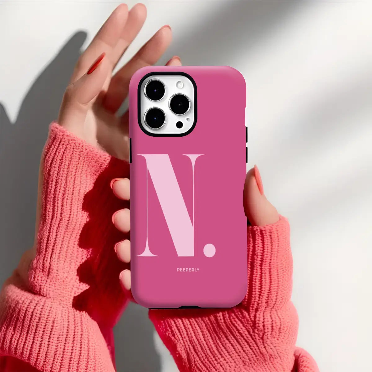 Bold, confident, and effortlessly polished, the Nicole phone case turns a classic initial into a statement of modern elegance. Featuring a rich crimson-red base paired with a soft blush “N,” this design captures attention while maintaining a refined, feminine balance.