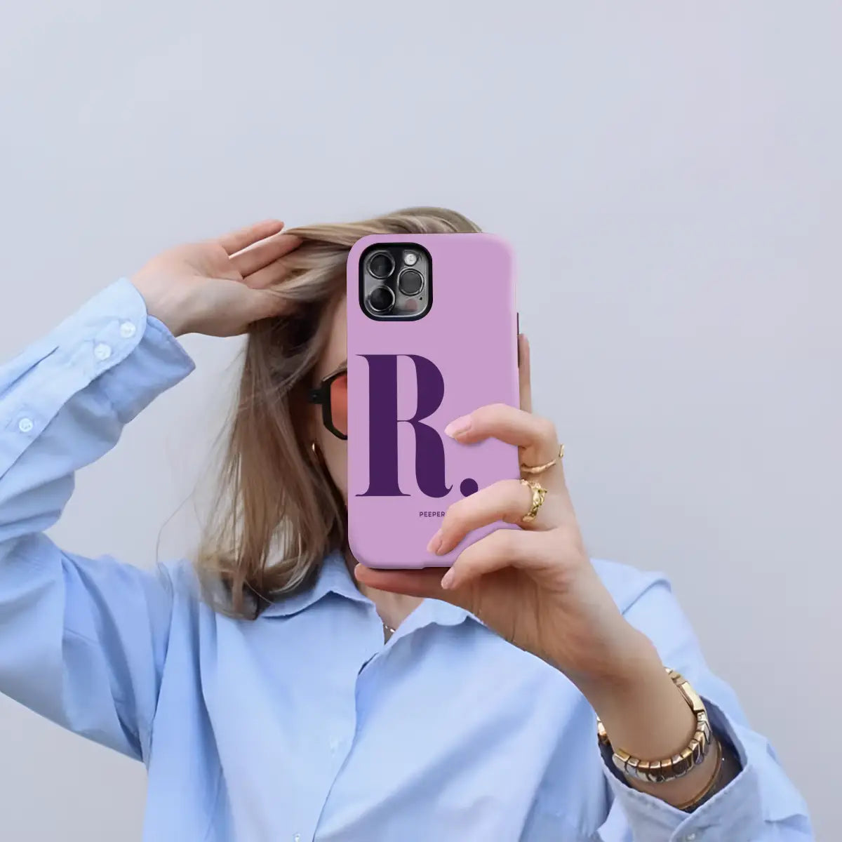 Playful yet poised, the Rylee phone case captures modern confidence in a soft, feminine palette. Featuring a warm blush-pink base paired with a bold red “R” initial, this design blends sweetness with strength in a beautifully balanced statement.