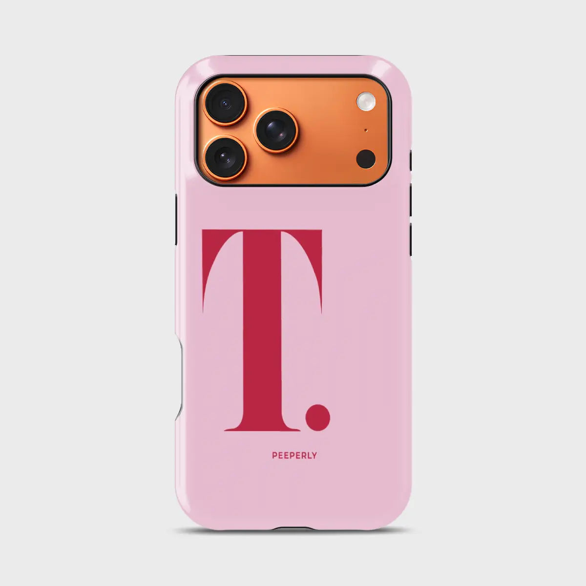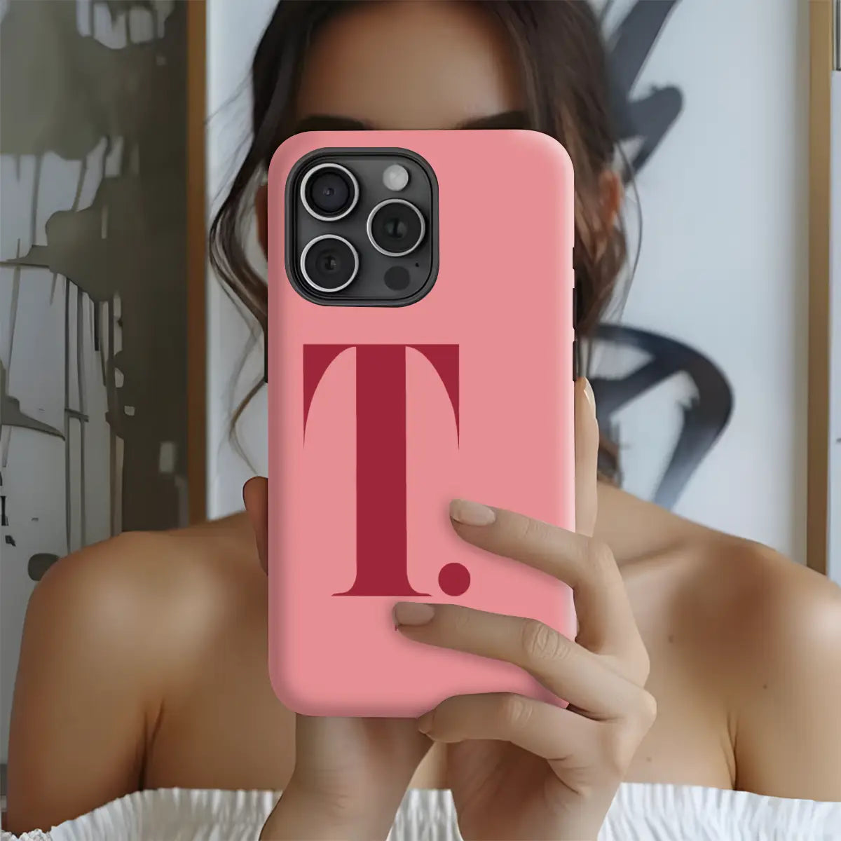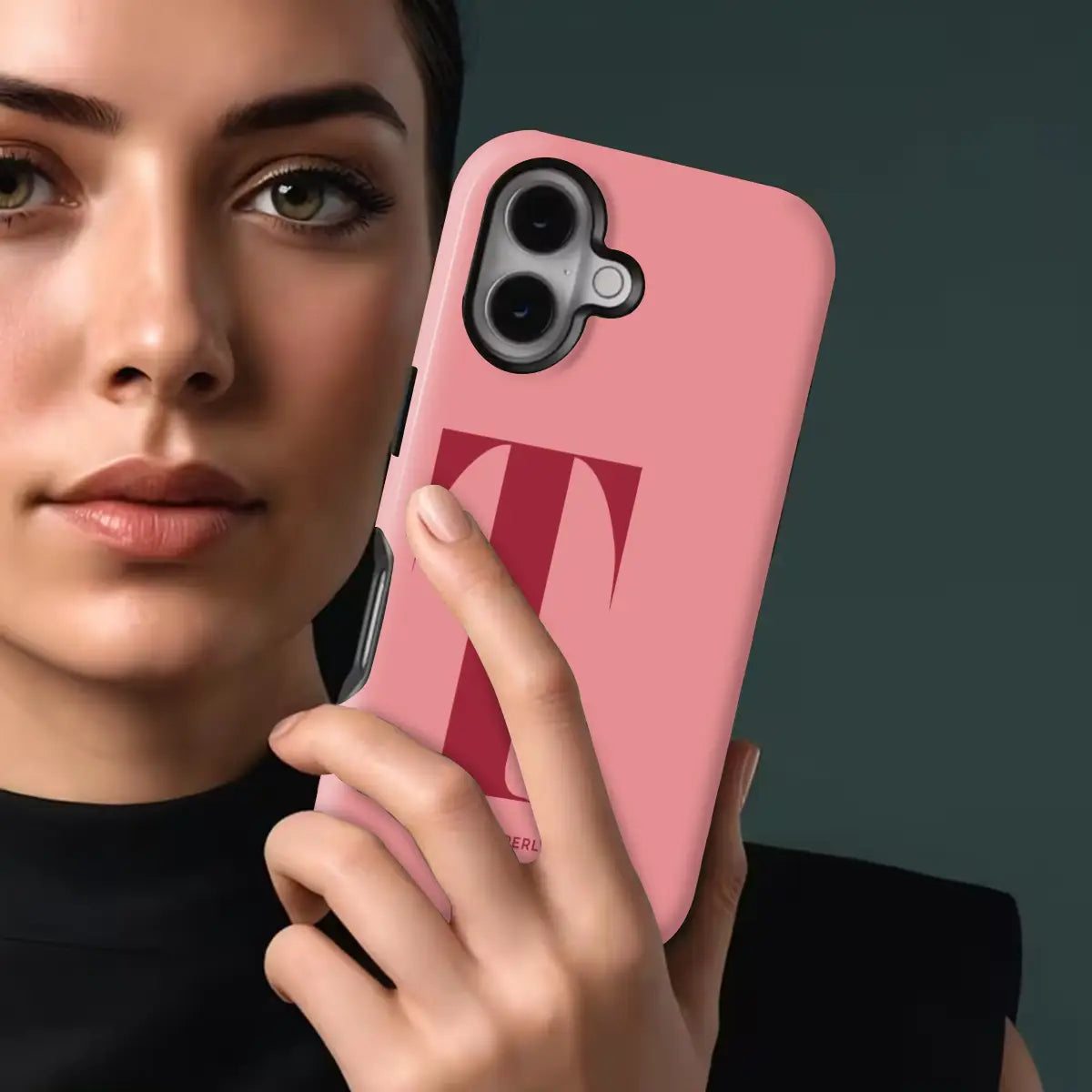 Chic, confident, and effortlessly feminine, the Tessa phone case brings modern elegance to everyday essentials. Featuring a soft blush-pink base paired with a bold red “T” initial, this design strikes the perfect balance between delicate charm and strong personality.