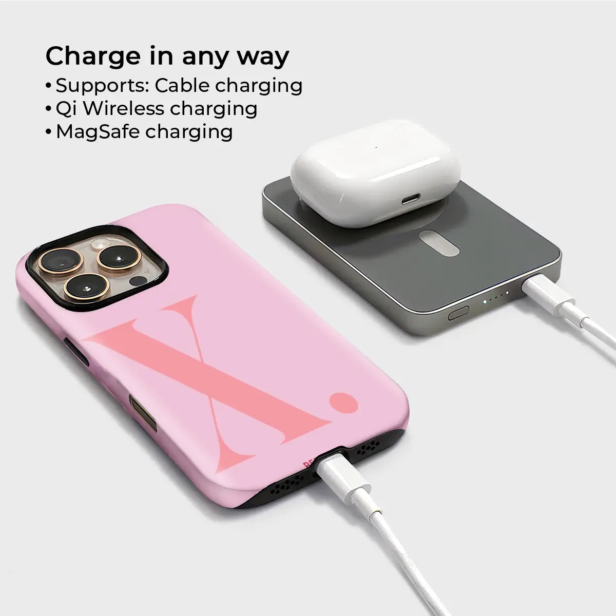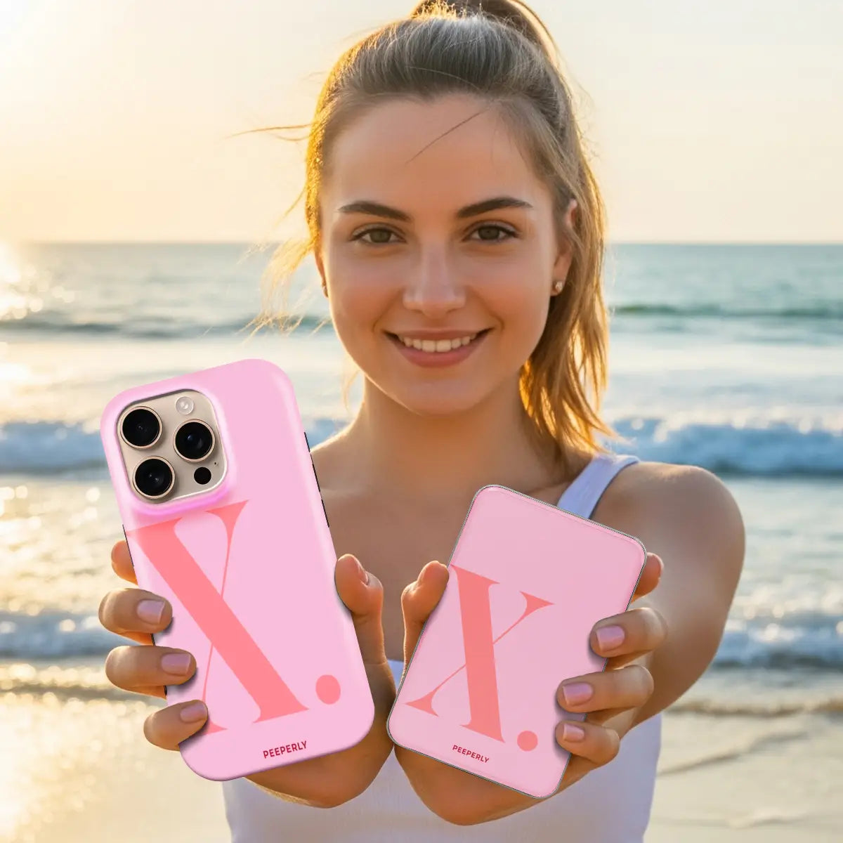 Sweet, modern, and effortlessly eye-catching, the Xoey phone case brings playful elegance to your everyday essentials. Featuring a soft blush-pink base paired with a warm coral “X” initial, this design feels fresh, feminine, and full of personality.