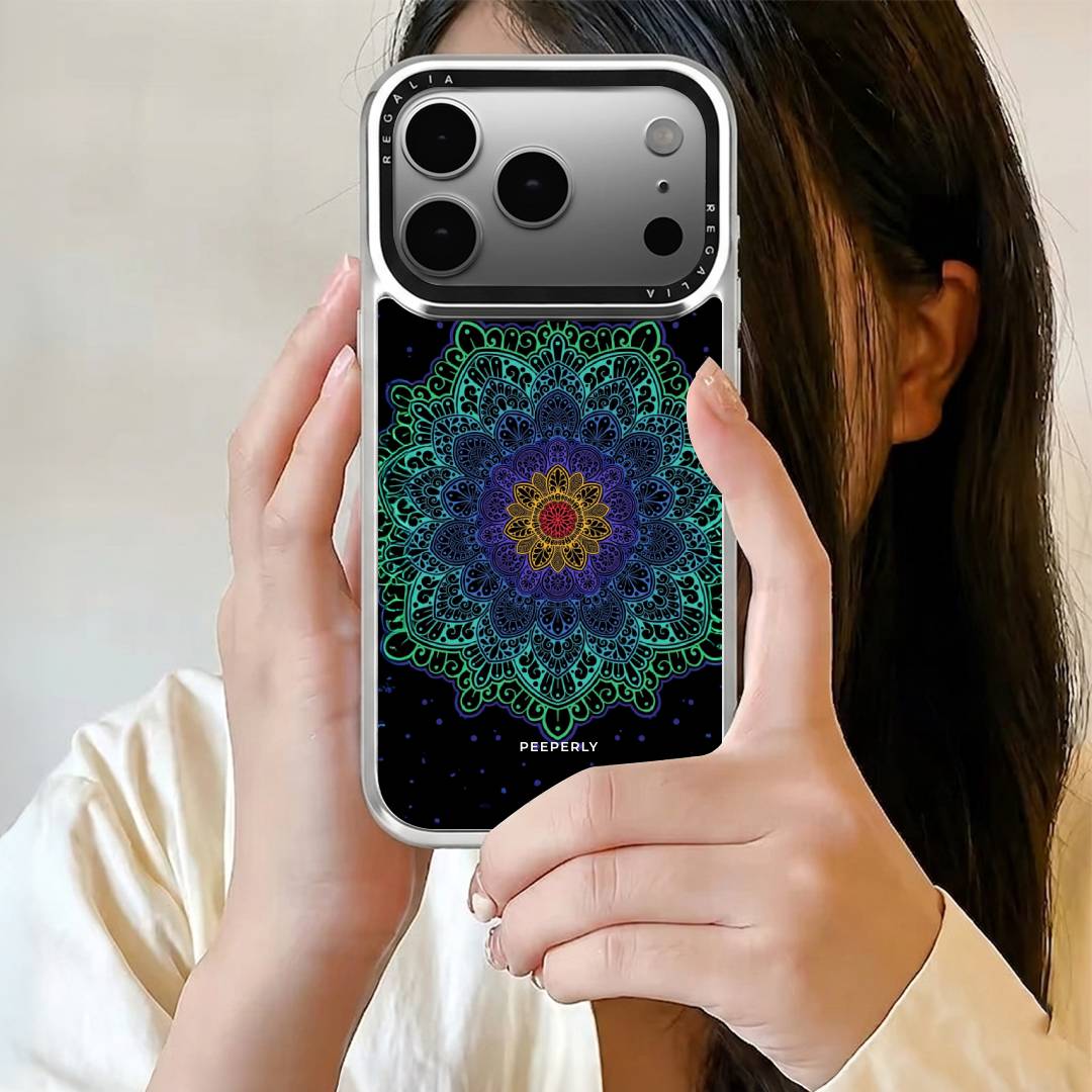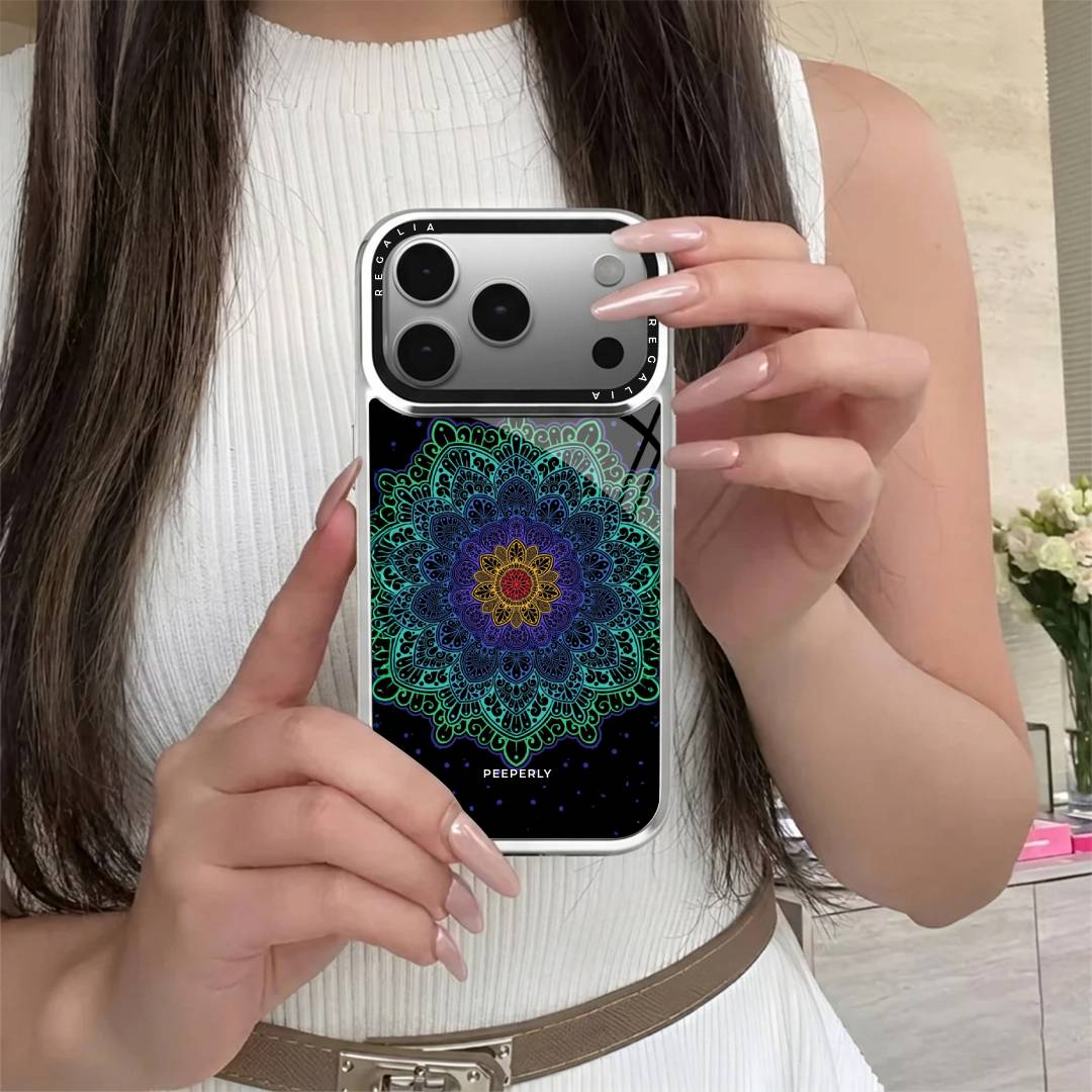 A striking fusion of energy and symmetry, Midnight Bloom Mandala radiates vibrant life against a deep, dark backdrop. Its glowing patterns pulse with color, symbolizing balance, creativity, and inner energy.