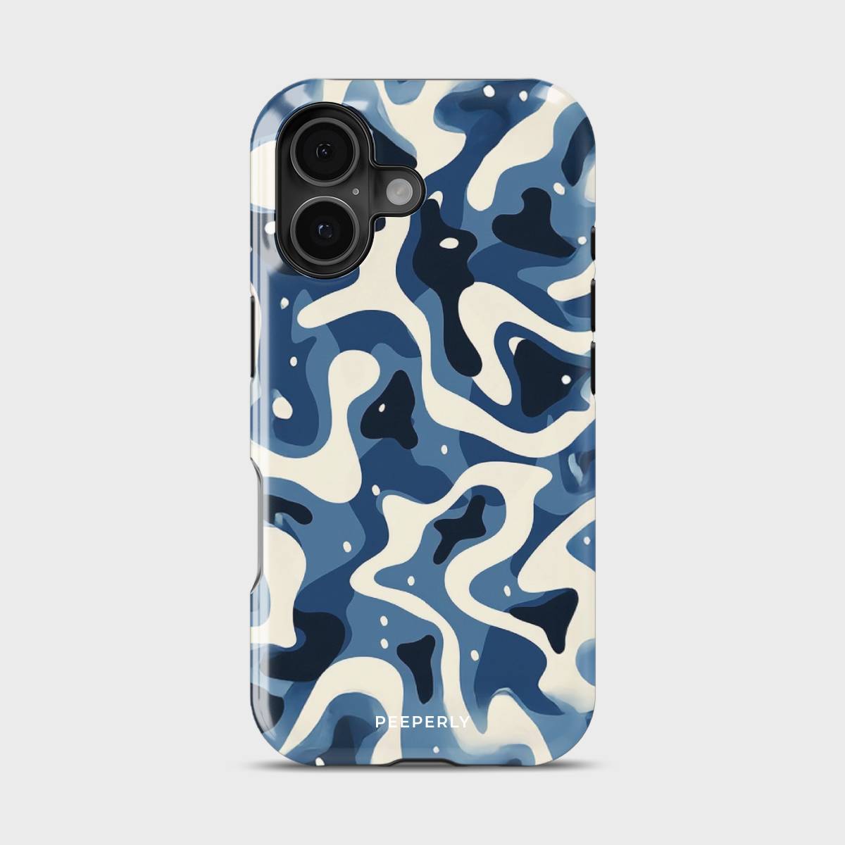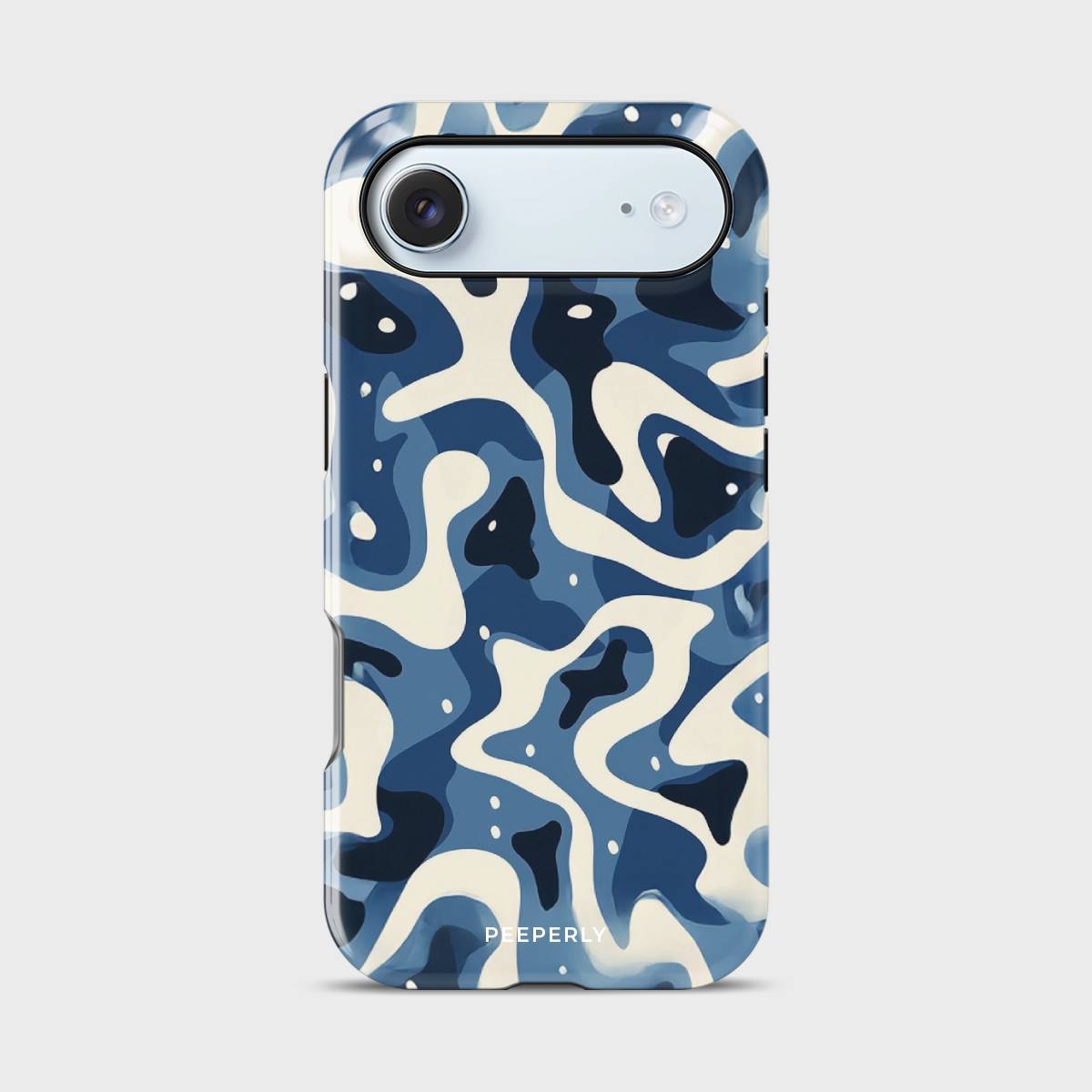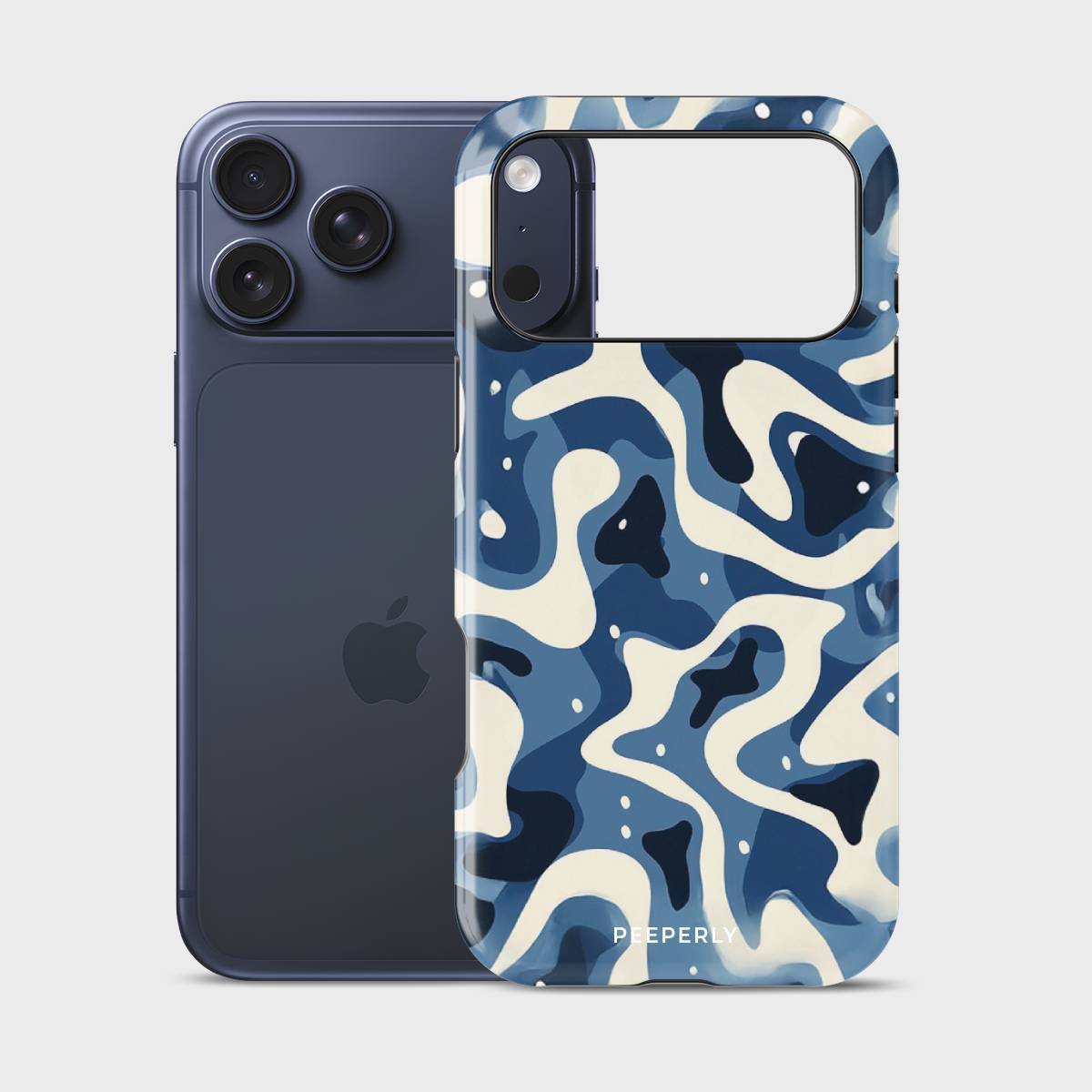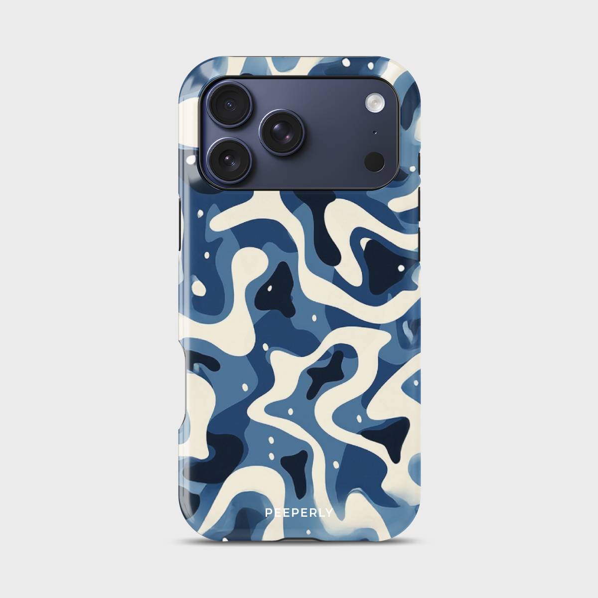 Dive into the deep with Tidal Drift, a bold and fluid design inspired by the restless rhythm of ocean currents. Featuring a mesmerizing blend of navy, cream, and blue abstract waves, this case captures the movement of water in a modern, camo-like pattern that feels both fierce and effortlessly cool.