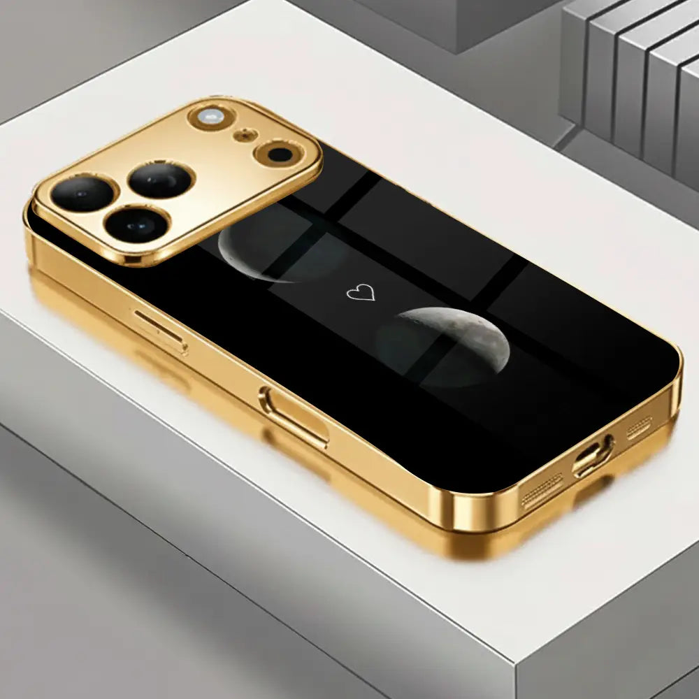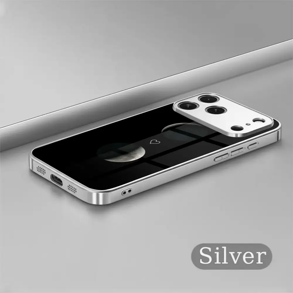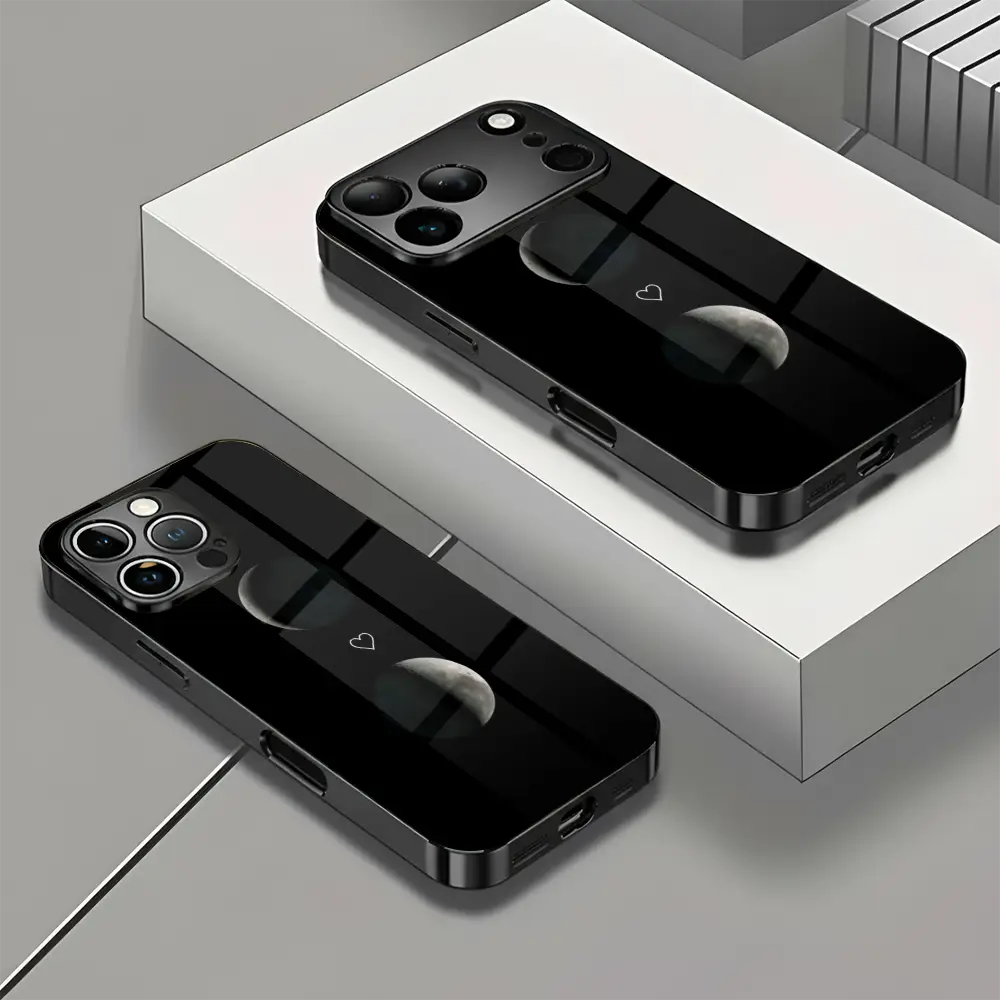 Embrace the quiet allure of the cosmos with Moonlit Echo, a design that captures the poetic beauty of moonlight reflected on midnight glass. Its sleek black surface shimmers subtly, adorned with twin lunar crescents and a delicate heart — a whisper of elegance that speaks to dreamers and night-souls alike.