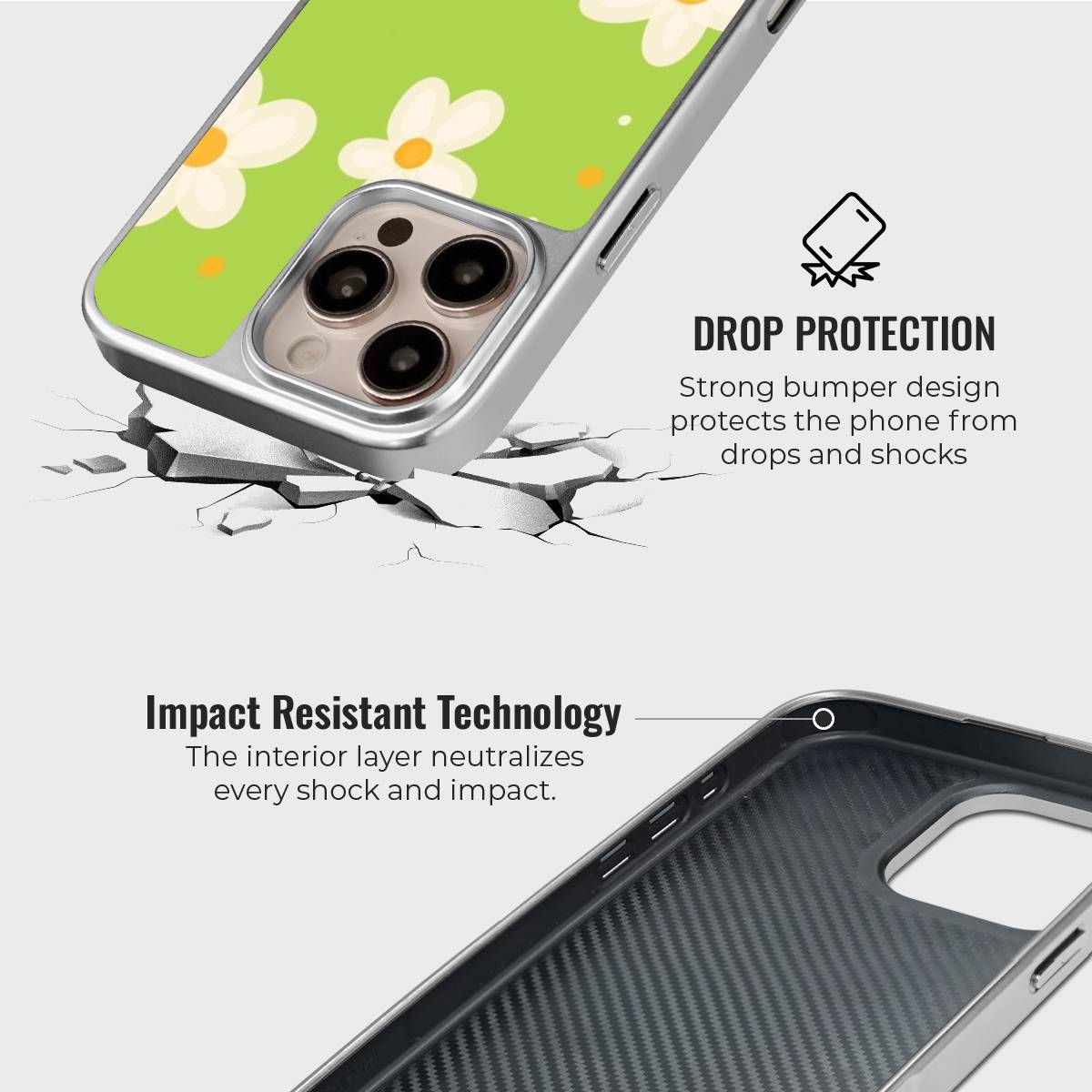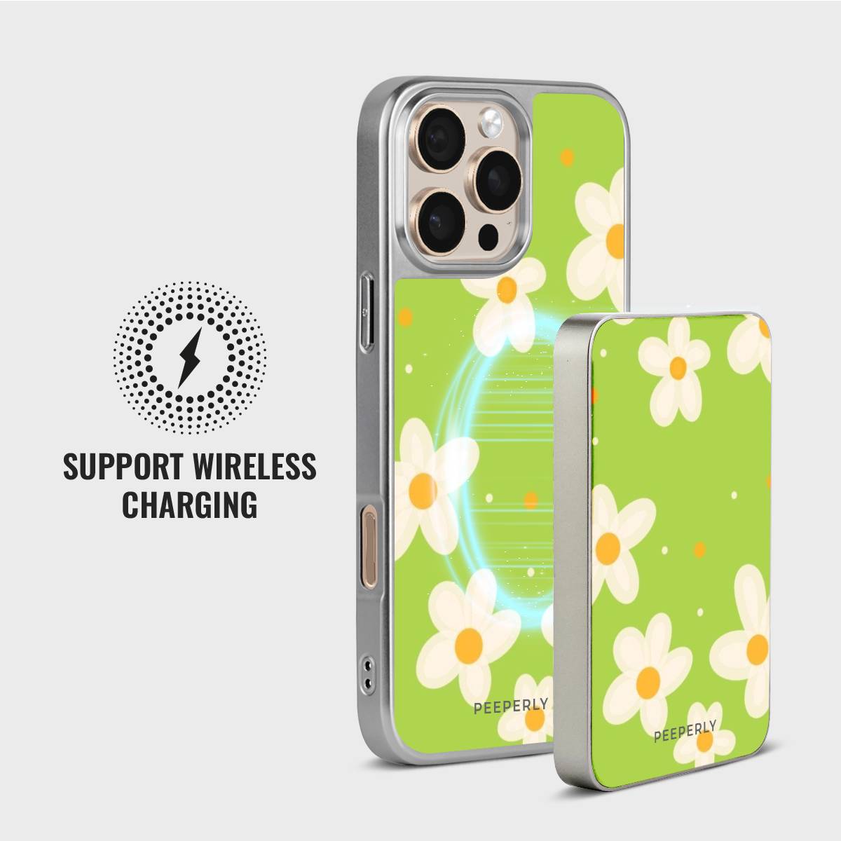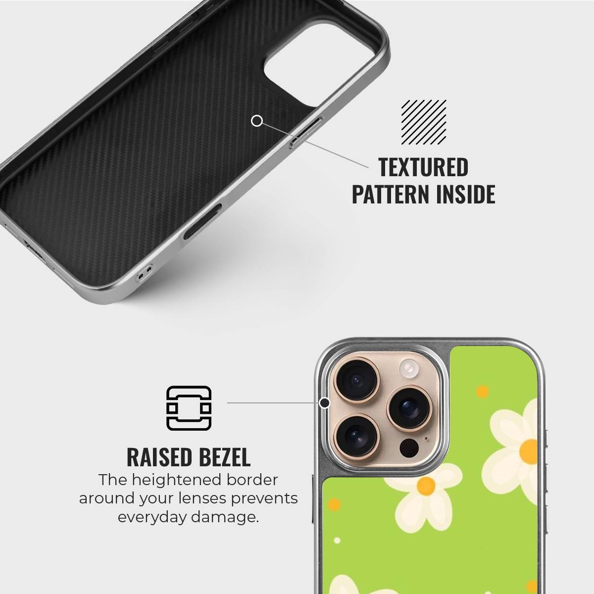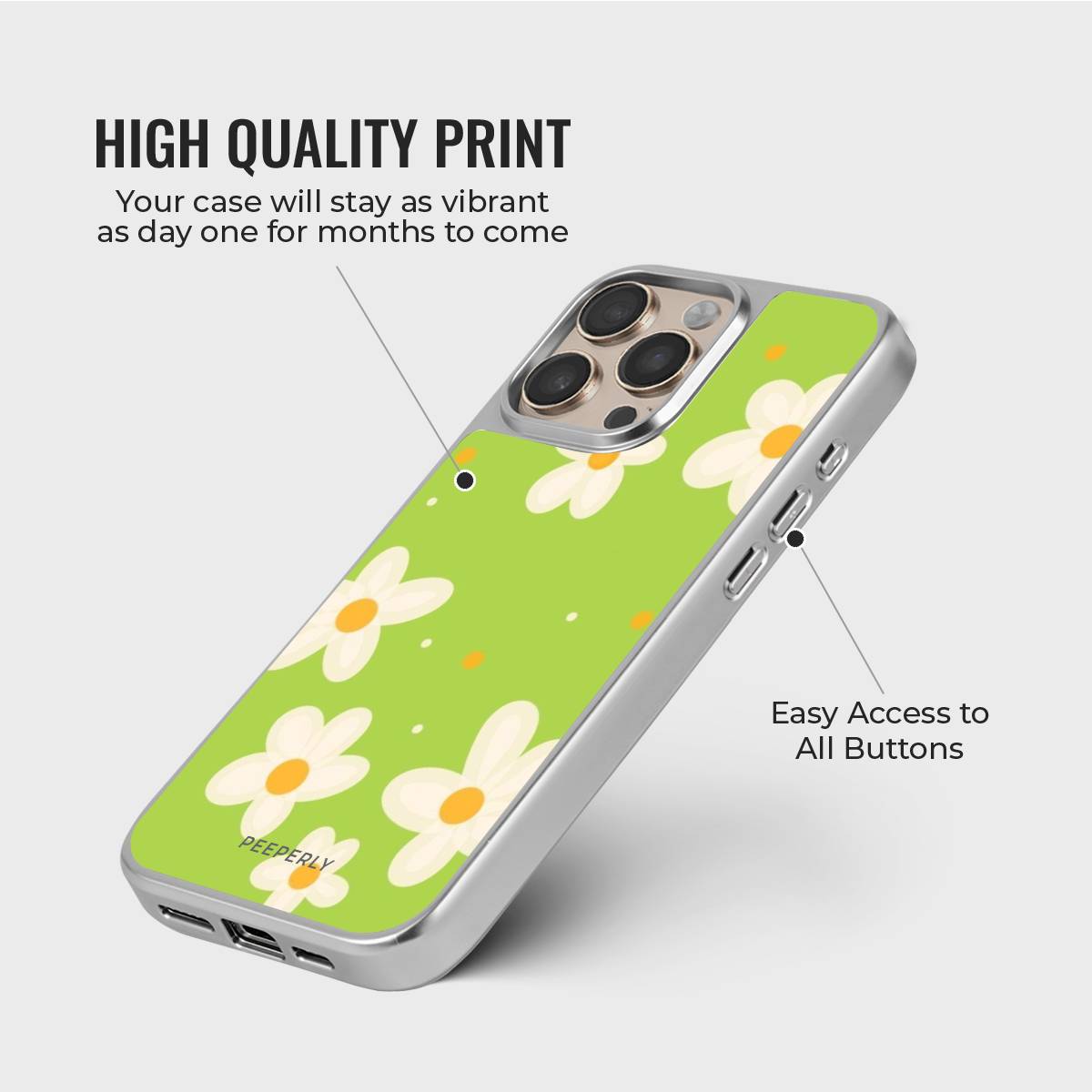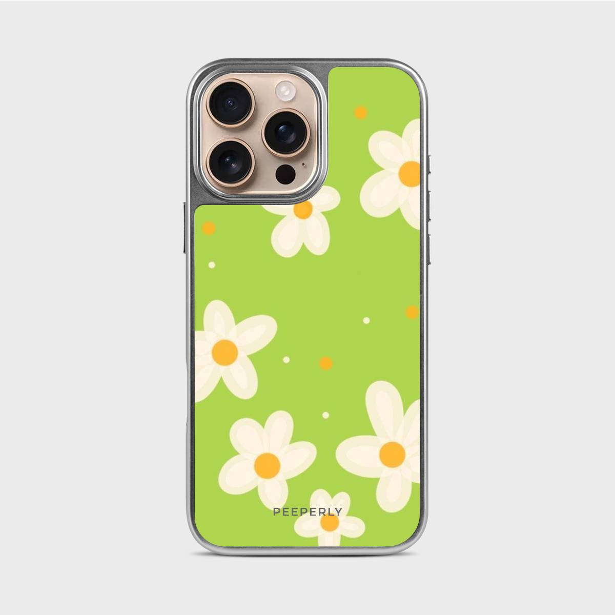 Daisy Spritz is a fresh-squeezed burst of happy for your phone. Creamy daisies with tangerine centers dance across a zesty lime backdrop, sprinkled with bubbly dots for extra cheer. A glossy finish and crisp details give it a bright, irresistible pop.