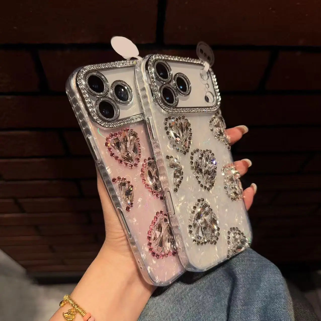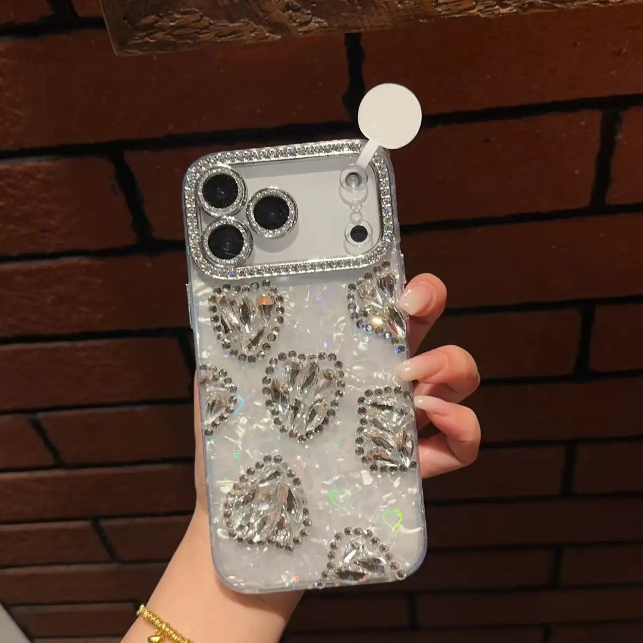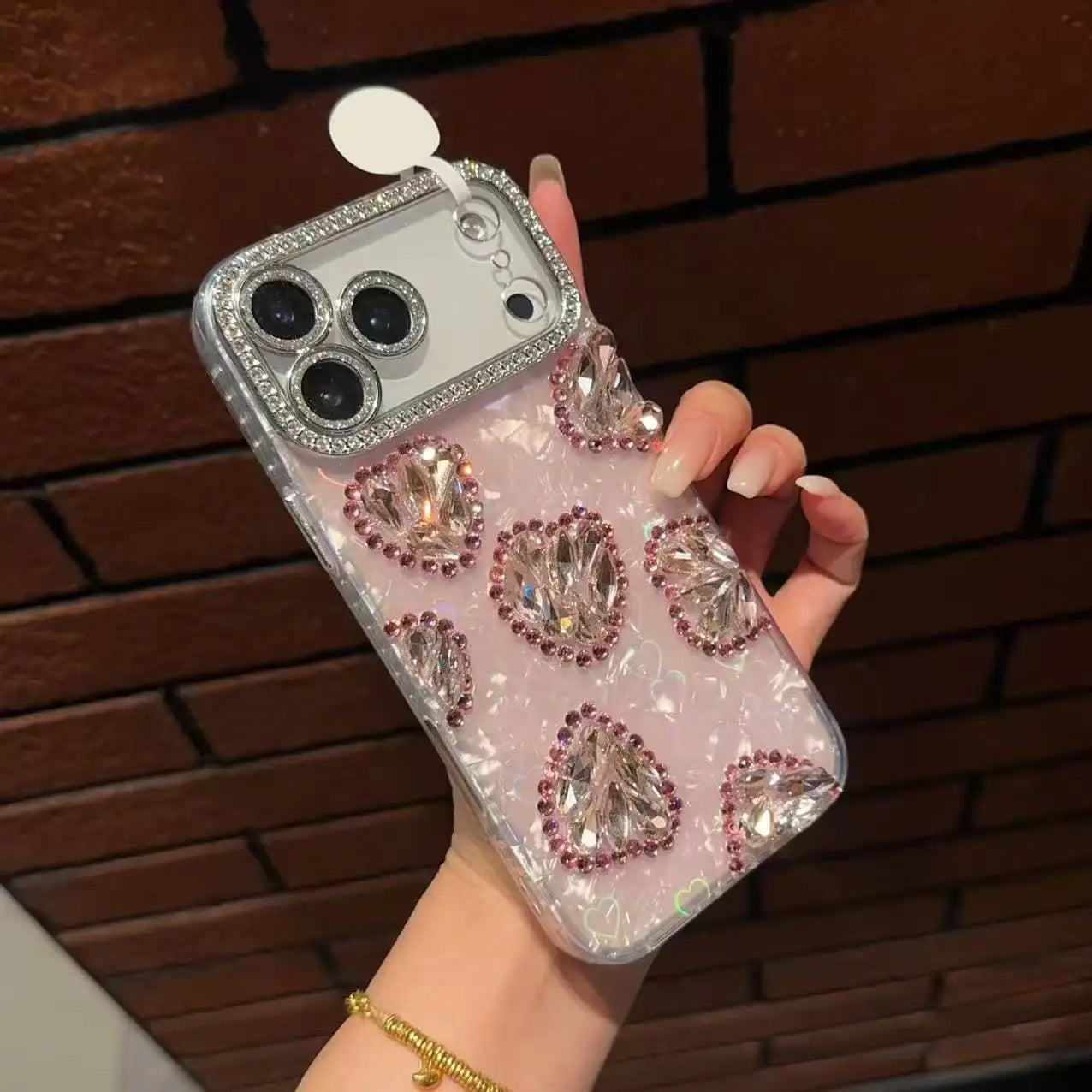 Make a bold yet romantic statement with the Diamond Heart Love Statement Case. Adorned with shimmering crystal heart motifs and a luminous pearlescent base, this case is designed to catch the light—and every eye.